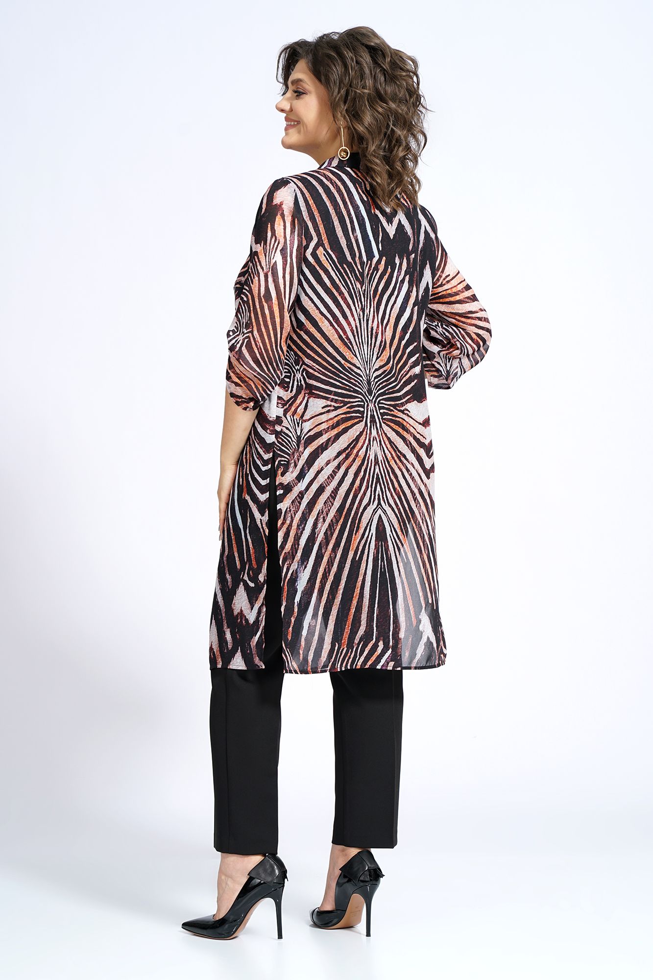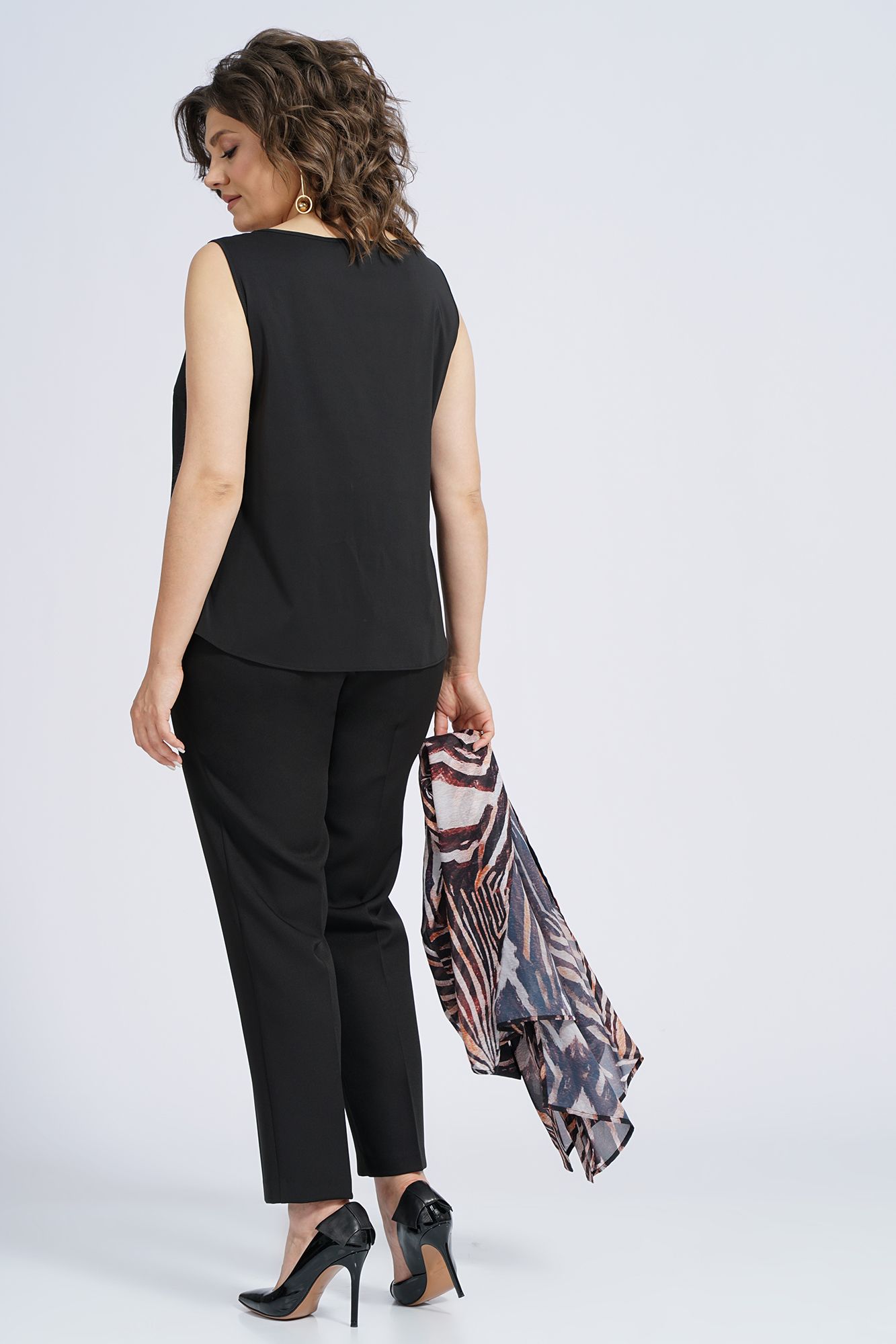 Туника - 100% П/Э (шифон). Брюки - 95% П/Э, 5% эластан. Блуза - 100% П/Э (шифон-стрейч)