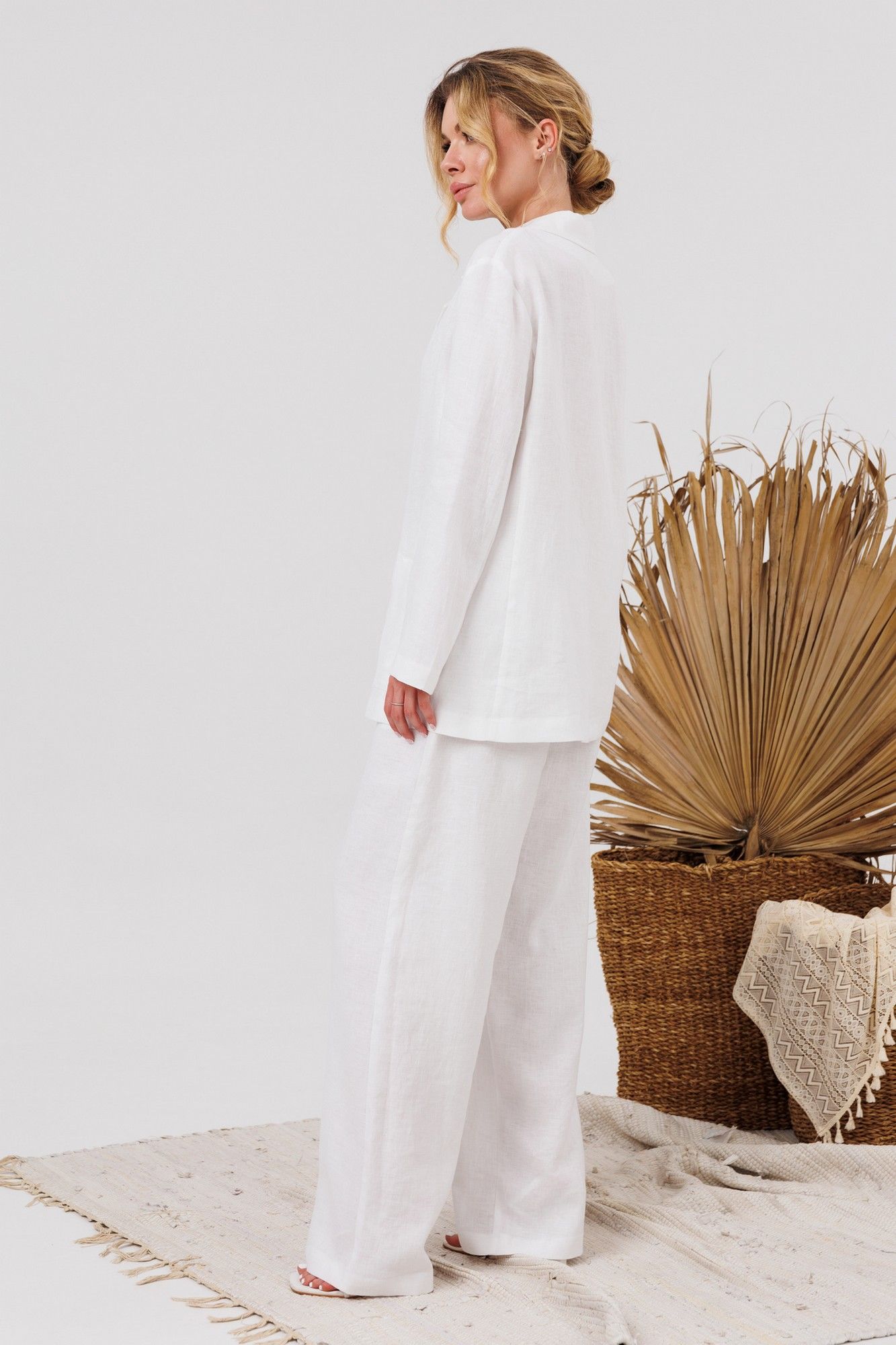 Классический прямой жакет из натурального льна. Воротник пиджачный отлажной, карманы накладные внизу. Отличное решение на каждый день и на выход! ДИ 69, ДР 58 - рост 164; ДИ 73, ДР 62 - рост 170.