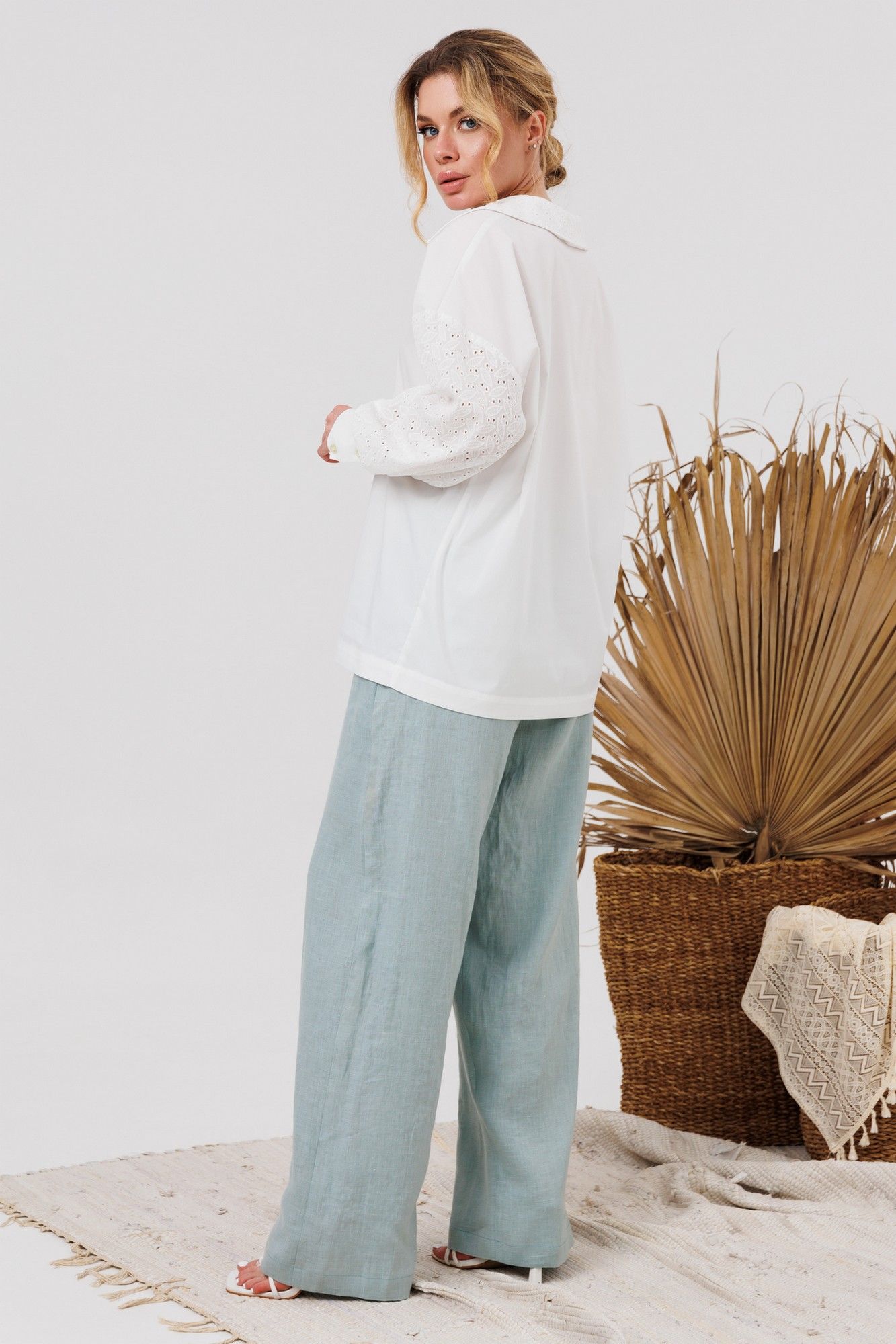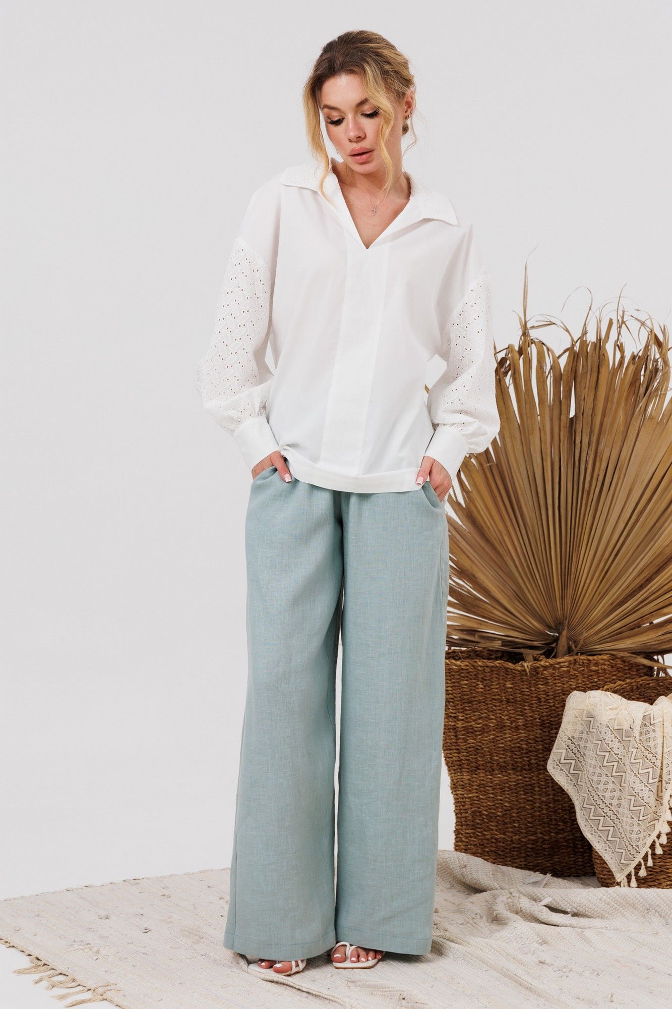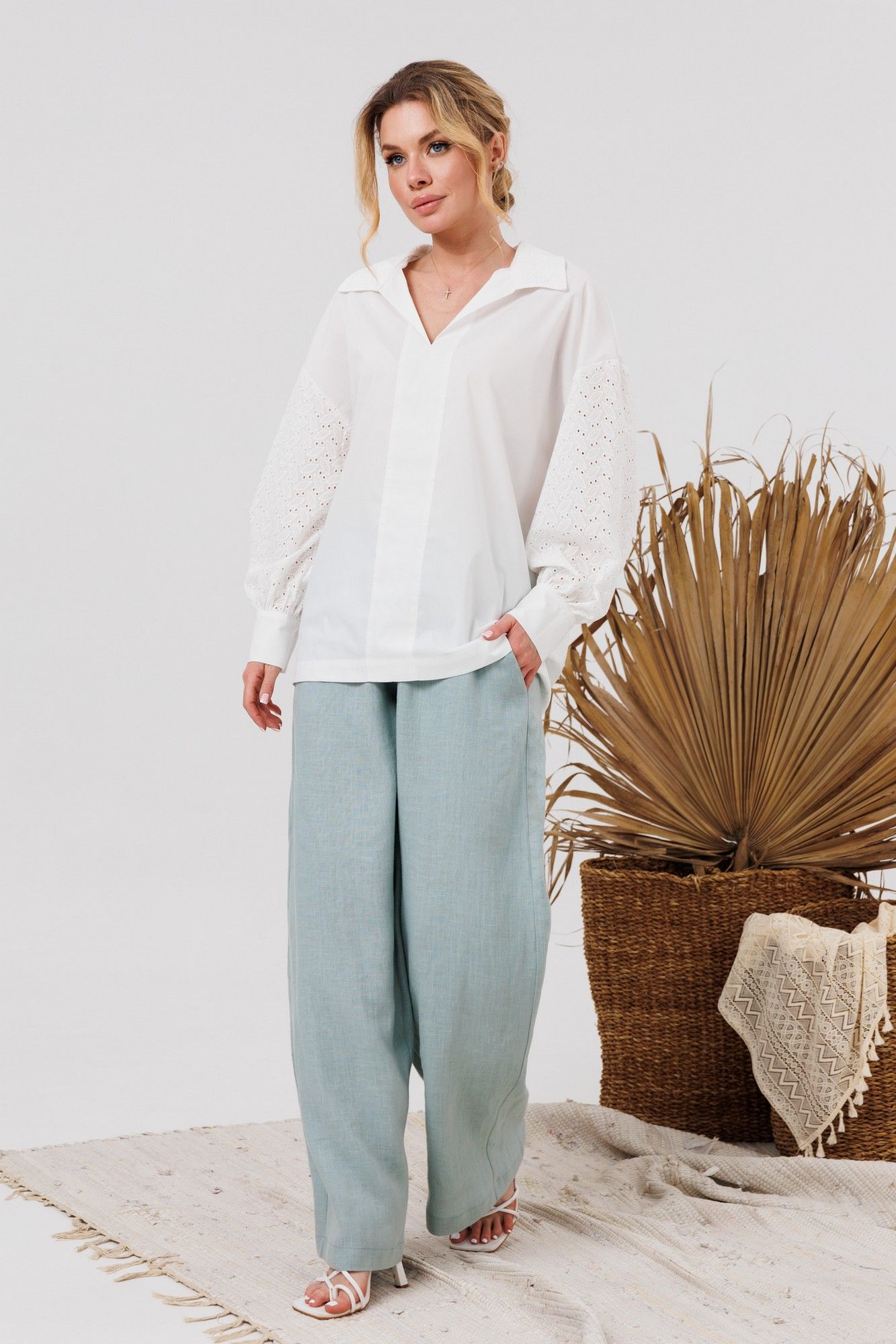 Шикарная блузка из натурального хлопка и ришелье. Очень красивые рукава и большой модный воротник, и горловина уголком переходящая в имитацию планки. ДИ 65 см, ДР от горловины 73 см рост 164; ДИ 70см, ДР от горловины 73 см рост 170.