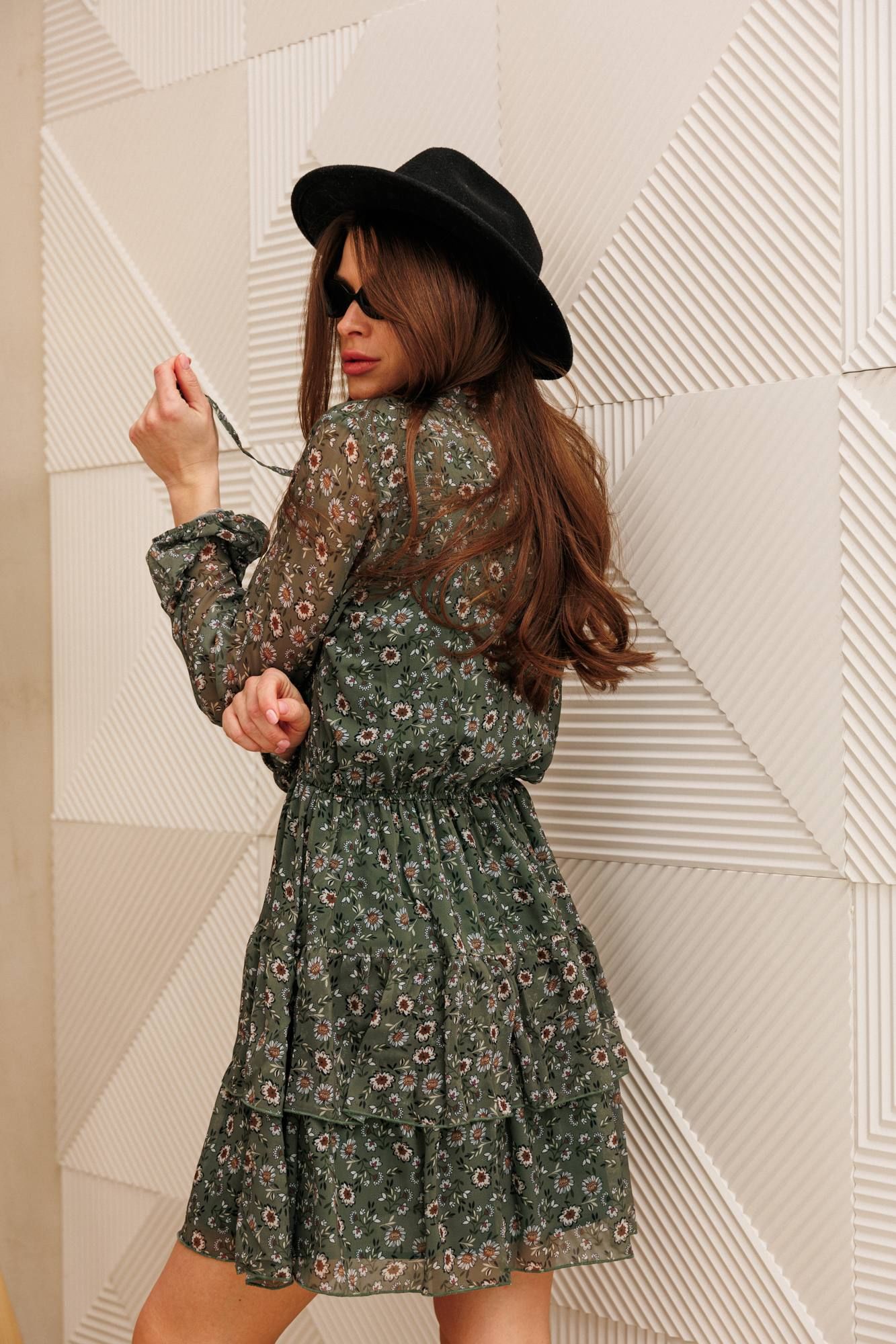 Создайте свой неповторимый образ с этим женским платьем от Anastasia! Платье женское из шифоновой ткани на подкладке, отрезное по линии талии, на резинке. Подойдет как для ежедневной носки, так и для праздничного выхода. Достаточно обыграть его подходящими аксессуарами и обувью. Из бокового шва идут грудовые выточки,спинка со средним швом. Воротник-стойка, с завязкой. Юбка с двумя воланами, рукав вточной, низ на резинке. Длина спинки: (44-54)-90 см. Длина рукава: (44-54)-59см.