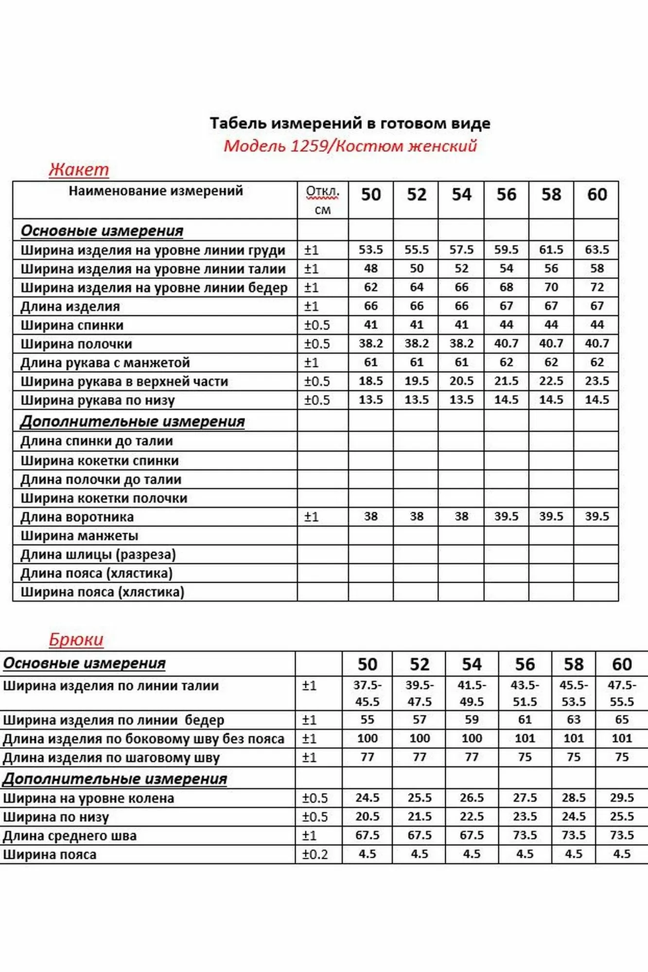 Костюм состоит из жакета и брюк, выполнен из гладкоокрашенной ткани. Жакет полуприлегающего силуэта, на подкладке. Полочка жакета с вертикальными рельефами, с застежкой на две петли и пуговицы. Воротник стояче-отложной пиджачного типа, лацканы отложные. В области талии по центру полочки обработан декоративный элемент в виде цельного пояса, завязывающегося спереди. На концах пояса втачана декоративная тесьма в виде бахромы с бусинами. Спинка со средним швом и вертикальными рельефами. Брюки со стрелками, в верхней части прилегающие к бедрам, в колене и по низу свободные. Брюки на притачном поясе с эластичной тесьмой и застежкой на петлю и пуговицу