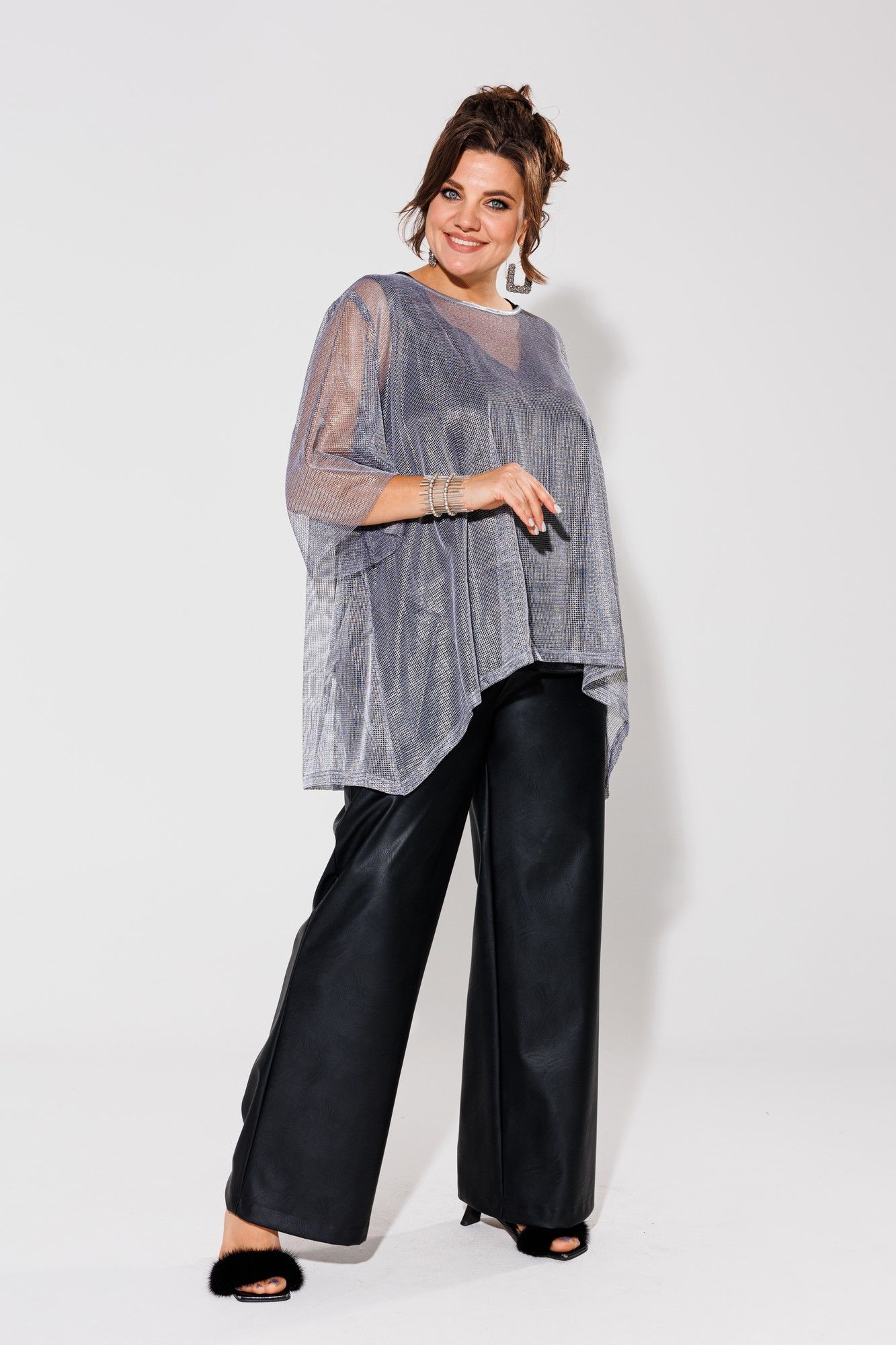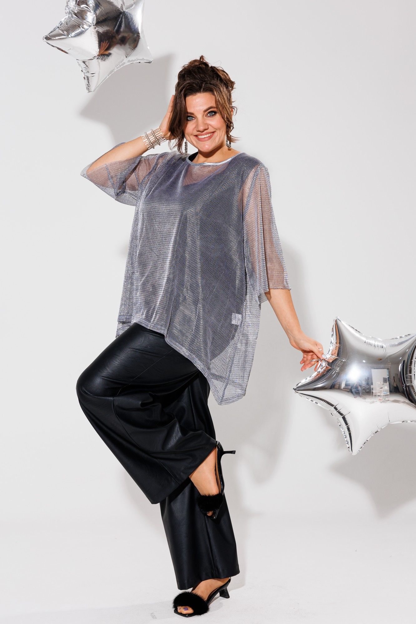 Встречайте нашу блузу из сетки — истинное воплощение игривости и стиля. Фигурный низ этой блузы придаст вашему облику легкость и динамичность, станет визитной карточкой вашего уникального стиля. Эта блуза - выражение вашей индивидуальности. Уверенно шагайте в мир утонченности с этой сеткой, создавая неповторимый образ на каждом шагу. Замеры: Размер 52: ОГ-130; ОБ-160; ДИ-71; ДР-45; ОП-50; Размер 54: ОГ-134; ОБ-164; ДИ-72; ДР-46; ОП-52; Размер 56: ОГ-138; ОБ-168; ДИ-72; ДР-45; ОП-52; Размер 58: ОГ-142; ОБ-172; ДИ-72; ДР-45; ОП-54; Размер 60: ОГ-146; ОБ-176; ДИ-72; ДР-45; ОП-56; Размер 62: ОГ-150; ОБ-180; ДИ-72; ДР-46; ОП-56.