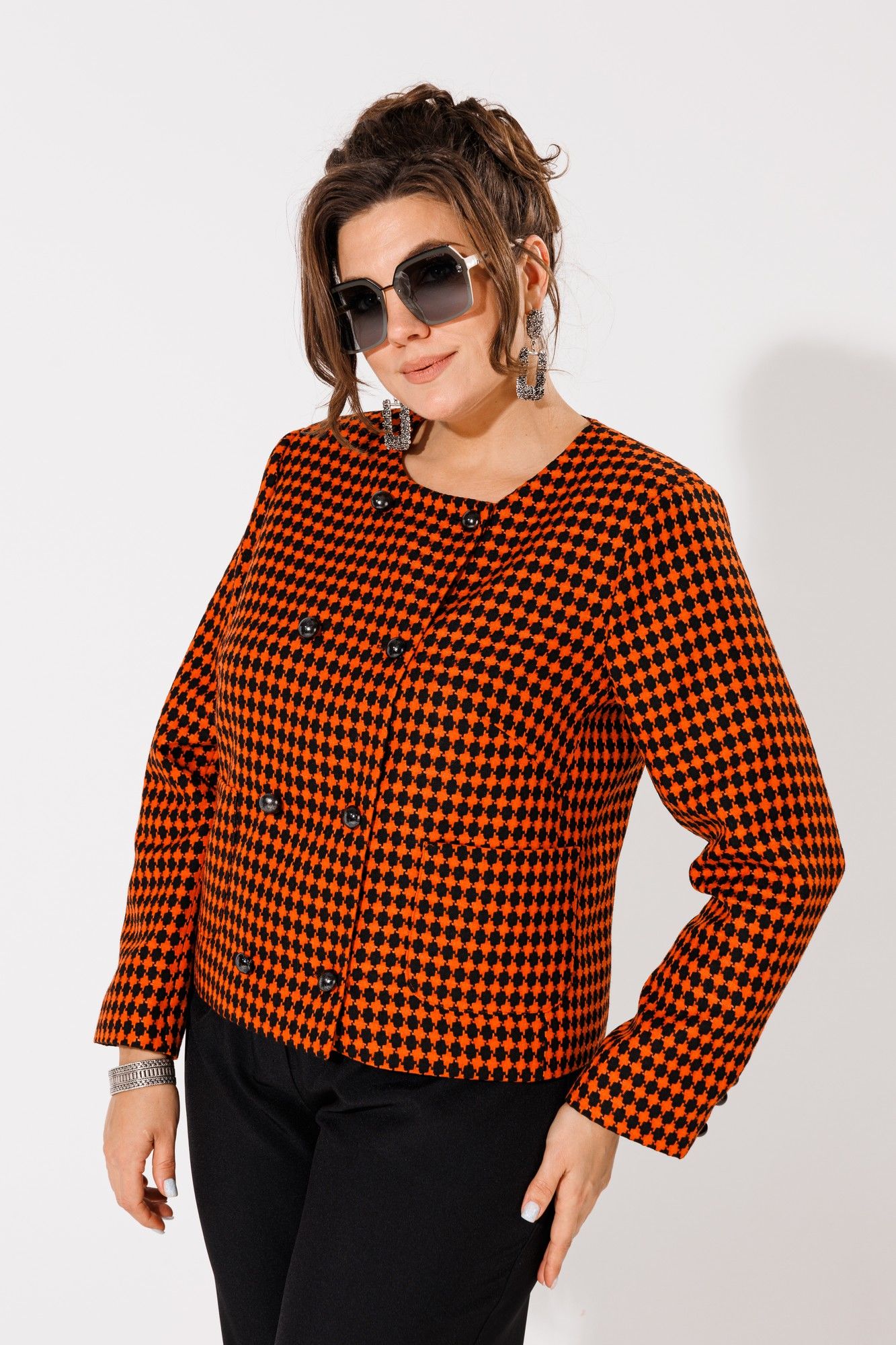 Жакет в стиле Chanel от Анелли – воплощение элегантности и универсальности. Классический принт и изысканный терракотовый цвет создают гармоничное сочетание стиля и утонченности. Этот жакет идеально подходит как для повседневного образа, придавая каждому дню нотку роскоши, так и для особых моментов, внося неповторимый шарм в праздничный стиль. Практичность и элегантность объединены в этом изысканном предмете гардероба, призванном подчеркнуть ваш безупречный вкус в любой обстановке. Замеры: Размер 44: ОГ-94; ОТ-88; ОБ-94; ДИ-51; ДР-60; ОП-36; Размер 46: ОГ-98; ОТ-92; ОБ-98; ДИ-51; ДР-60; ОП-37; Размер 48: ОГ-102; ОТ-96; ОБ-102; ДИ-52; ДР-60; ОП-39; Размер 50: ОГ-106; ОТ-102; ОБ-108; ДИ-52; ДР-61; ОП-40; Размер 52: ОГ-112; ОТ-108; ОБ-114; ДИ-54; ДР-61; ОП-41; Размер 54: ОГ-116; ОТ-112; ОБ-120; ДИ-56; ДР-60; ОП-43