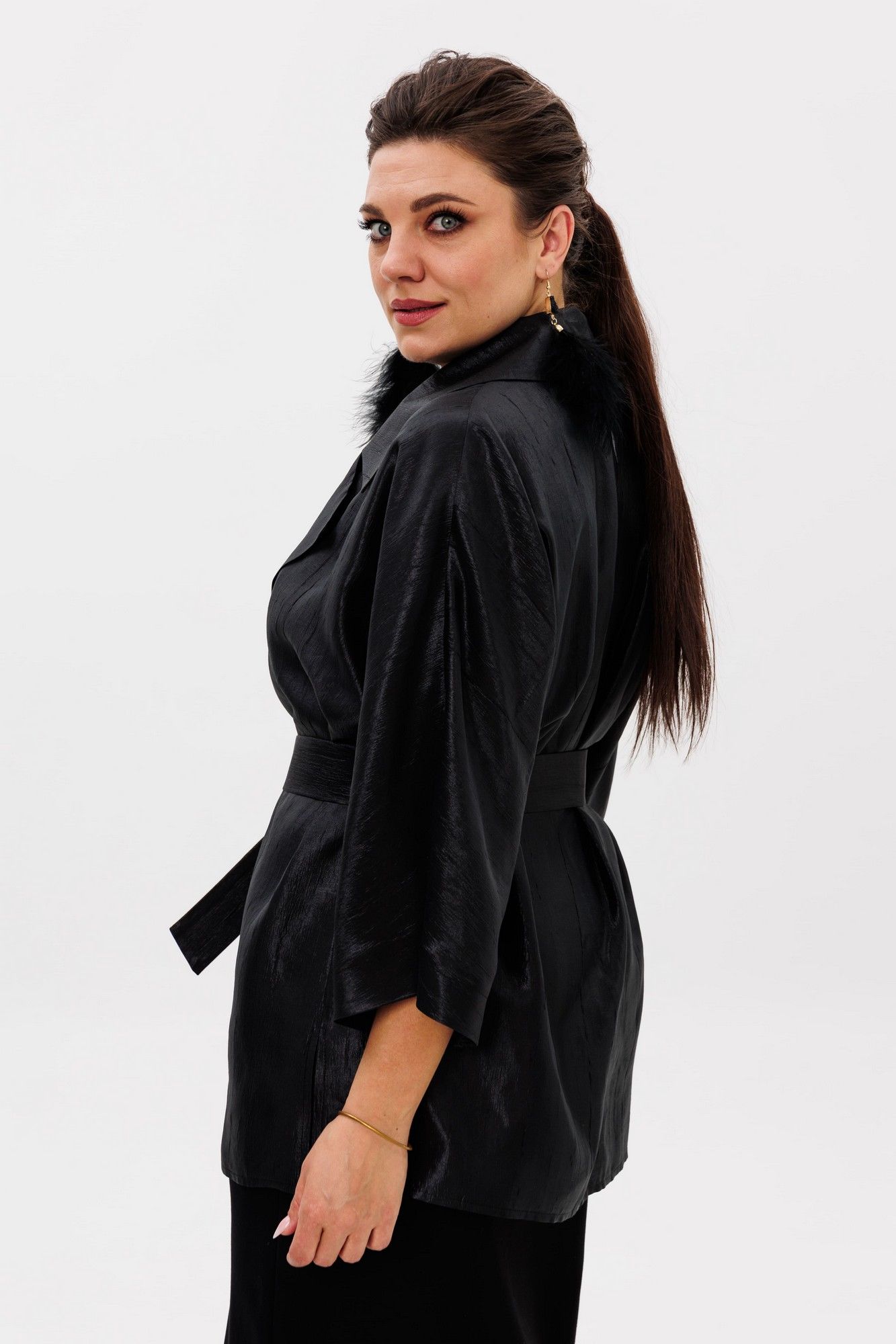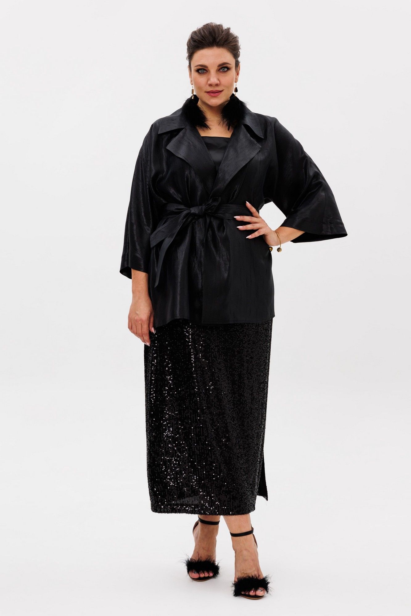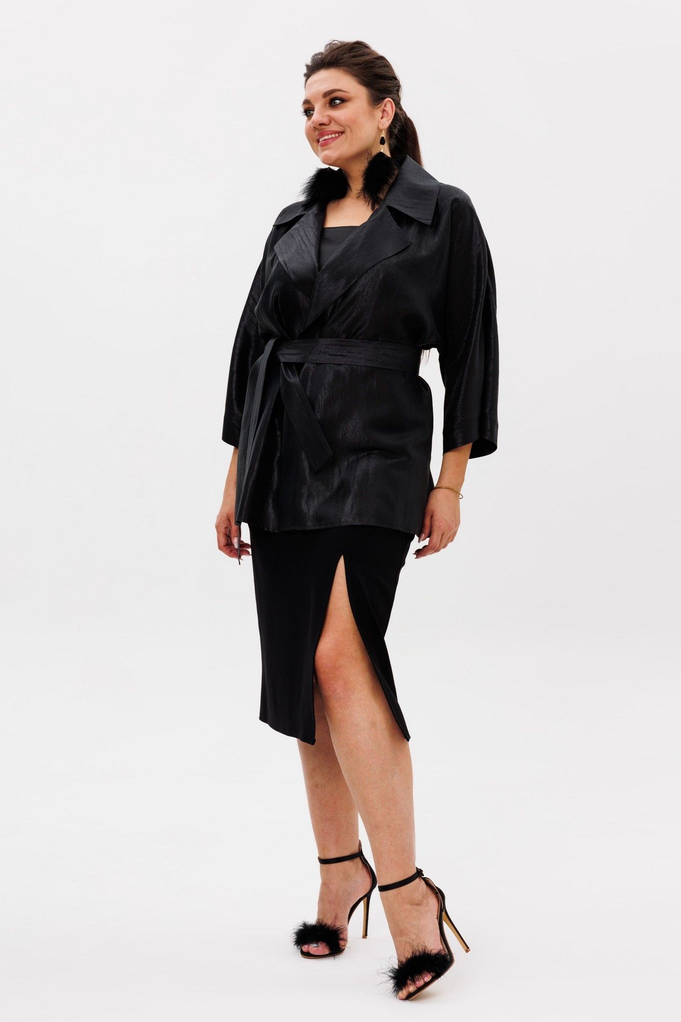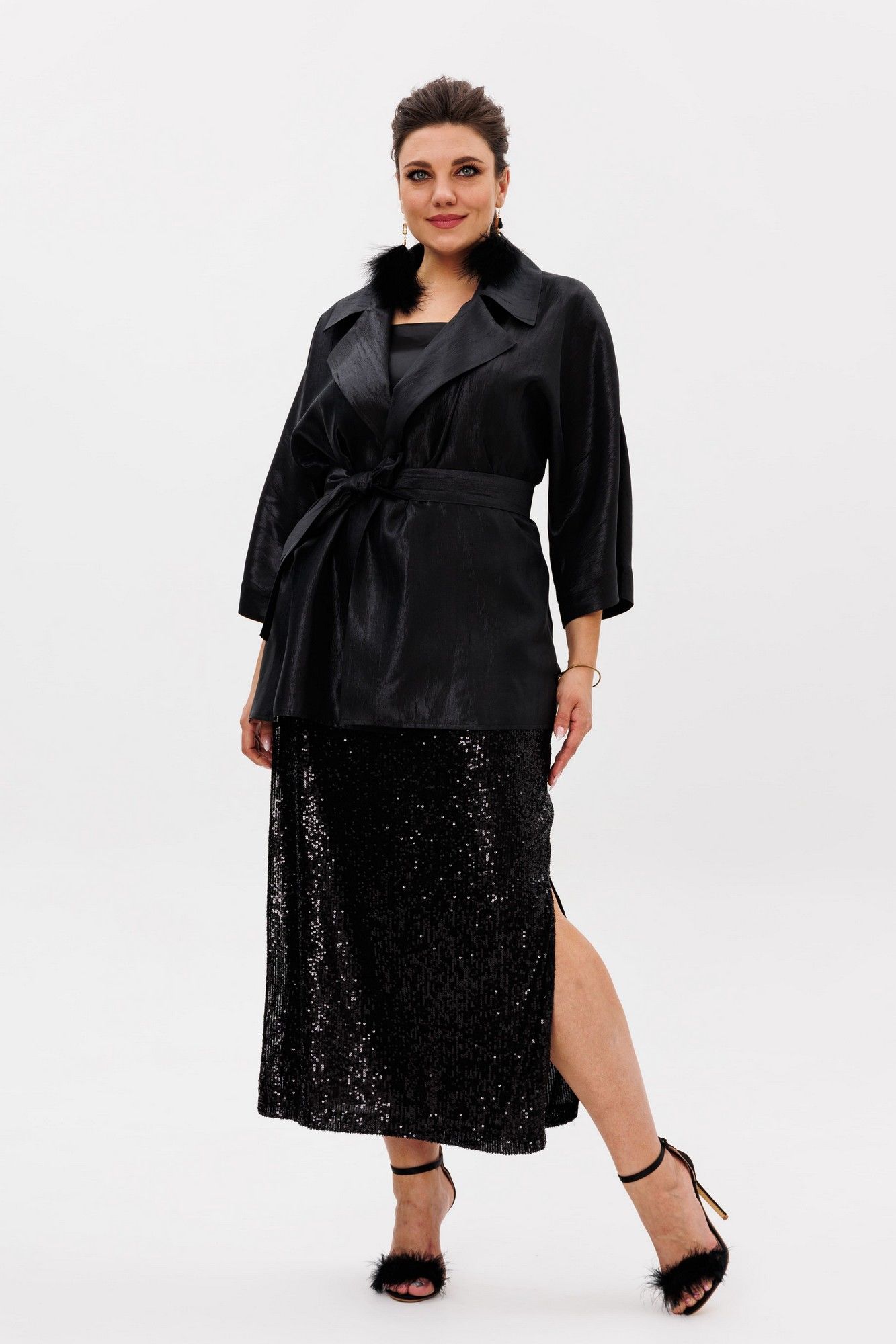 Великолепный жакет-рубашка от Анелли — идеальное сочетание стиля и комфорта, которое станет незаменимым элементом вашего гардероба. Его цельнокроеные рукава в стиле кимоно дарят свободу движений и подчеркивают элегантность силуэта, создавая гармоничный образ. Воротник рубашечного типа добавляет изысканности и классического шарма, а пояс, который можно завязать на талии, акцентирует внимание на вашей фигуре, придавая образу женственность и стиль. Этот жакет-рубашка легко комбинируется с вашими любимыми юбками, платьями и брюками, открывая перед вами миллион вариантов стилизации. Хотите создать романтичный образ для прогулки по городу? Сочетайте его с легким платьем и сандалиями. Или же вы предпочитаете более строгий стиль для офиса? Носите его с классическими брюками и лодочками — вы будете выглядеть безупречно! Не упустите возможность добавить этот универсальный айтем в свою коллекцию. Он станет вашим верным спутником в любых обстоятельствах, позволяя вам оставаться на высоте в любой ситуации. Позвольте себе быть стильной и уверенной, выбирая вещи, которые подчеркивают вашу индивидуальность. На модели юбка из пайеток 1499, трикотажная юбка 1420.1, леопардовая юбка 1510, атласный топ 1429 и платье из пайеток 1507. Замеры: Размер 50: ОГ-116; ОБ-126; ОП-52; ДИ-76; ДР от горла - 57; Размер 52: ОГ-120; ОБ-130; ОП-54; ДИ-77; ДР от горла - 57; Размер 54: ОГ-124; ОБ-134; ОП-56; ДИ-77; ДР от горла - 58; Размер 56: ОГ-128; ОБ-138; ОП-58; ДИ-77; ДР от горла - 57; Размер 58: ОГ-132; ОБ-142; ОП-59; ДИ-78; ДР от горла - 58; Размер 60: ОГ-138; ОБ-148; ОП-60; ДИ-79; ДР от горла - 60.