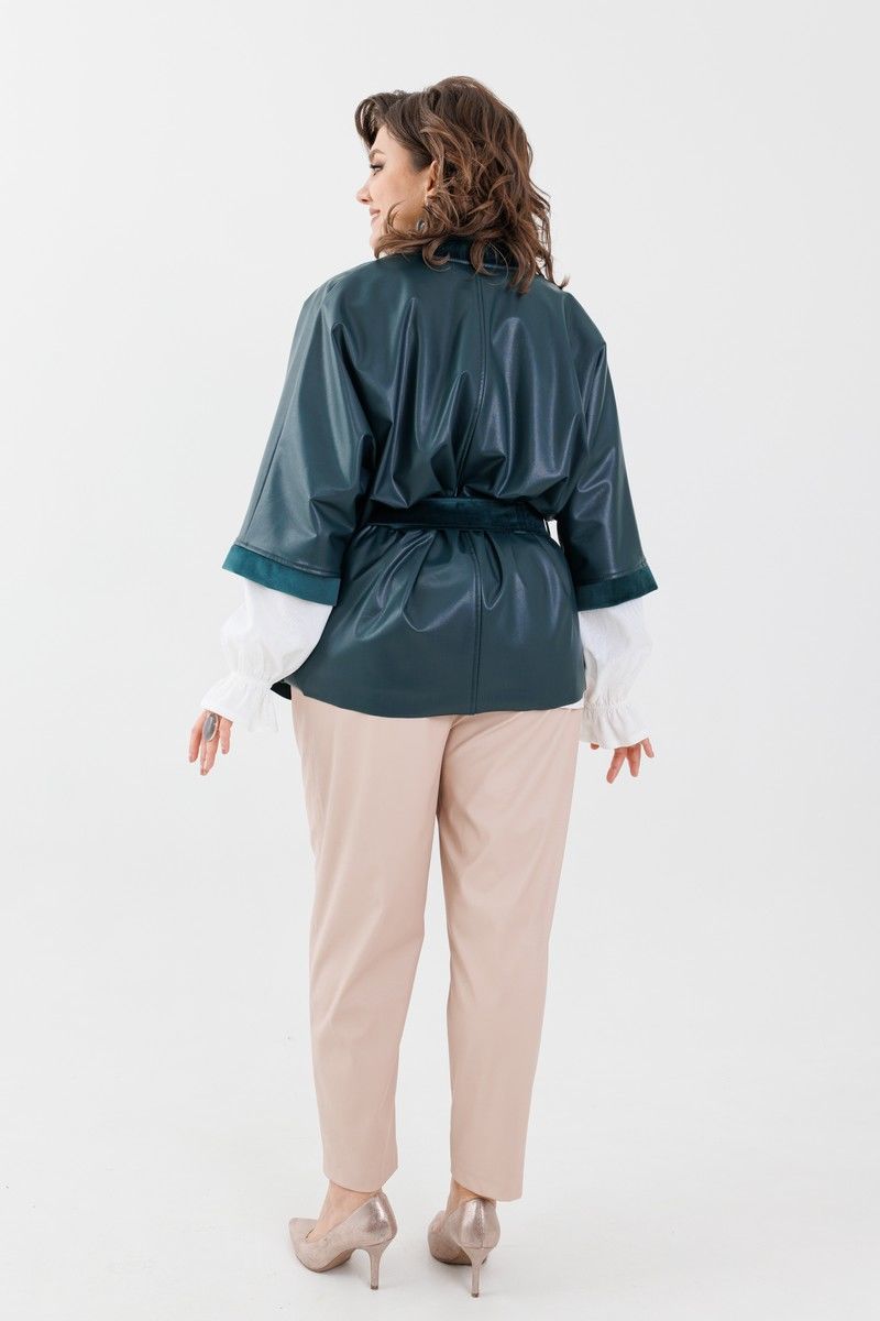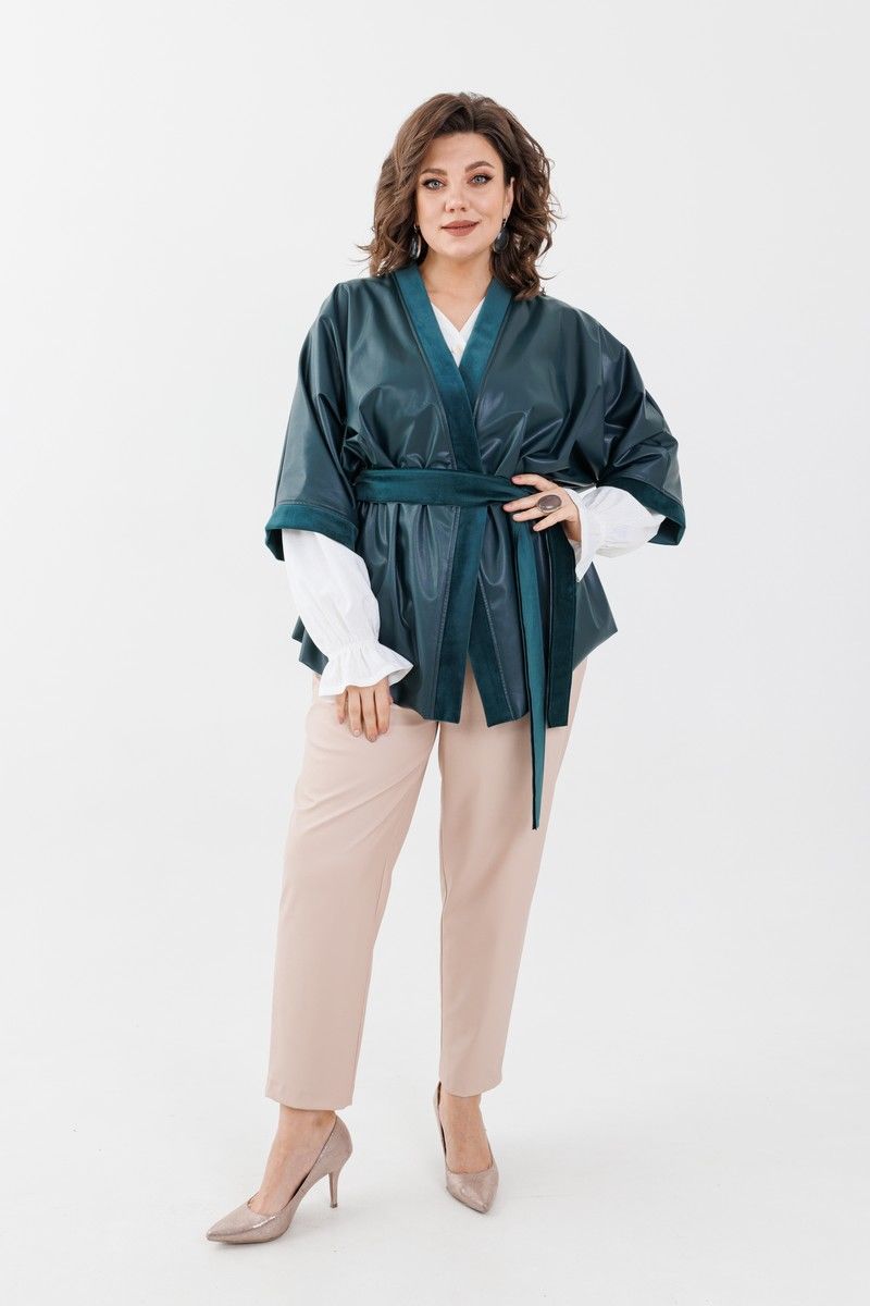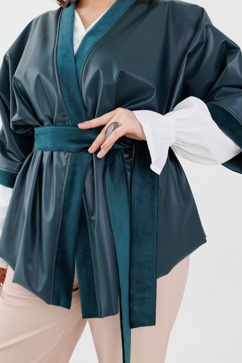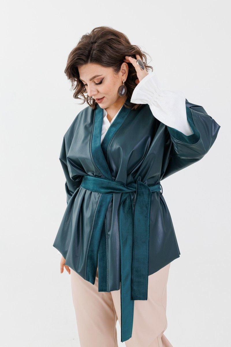 Кимоно из экокожи - это уникальное сочетание стиля, качества и заботы о природе. Рукав длинный, низ на манжете из замши. Край борта и горловина обработаны планкой из замши. Фиксируется кимано на фигуре при помощи съемного пояса. Отличная замена скучным ветровкам, экокожа влагоустойчива, выглядит стильно и при этом очень женственно. При съемке в образе использованы модели бренда Анелли – брюки 1288. Жакет-кимоно выполнен в нескольких палитрах цветов. Кимоно украсит вас и ваш гардероб.
