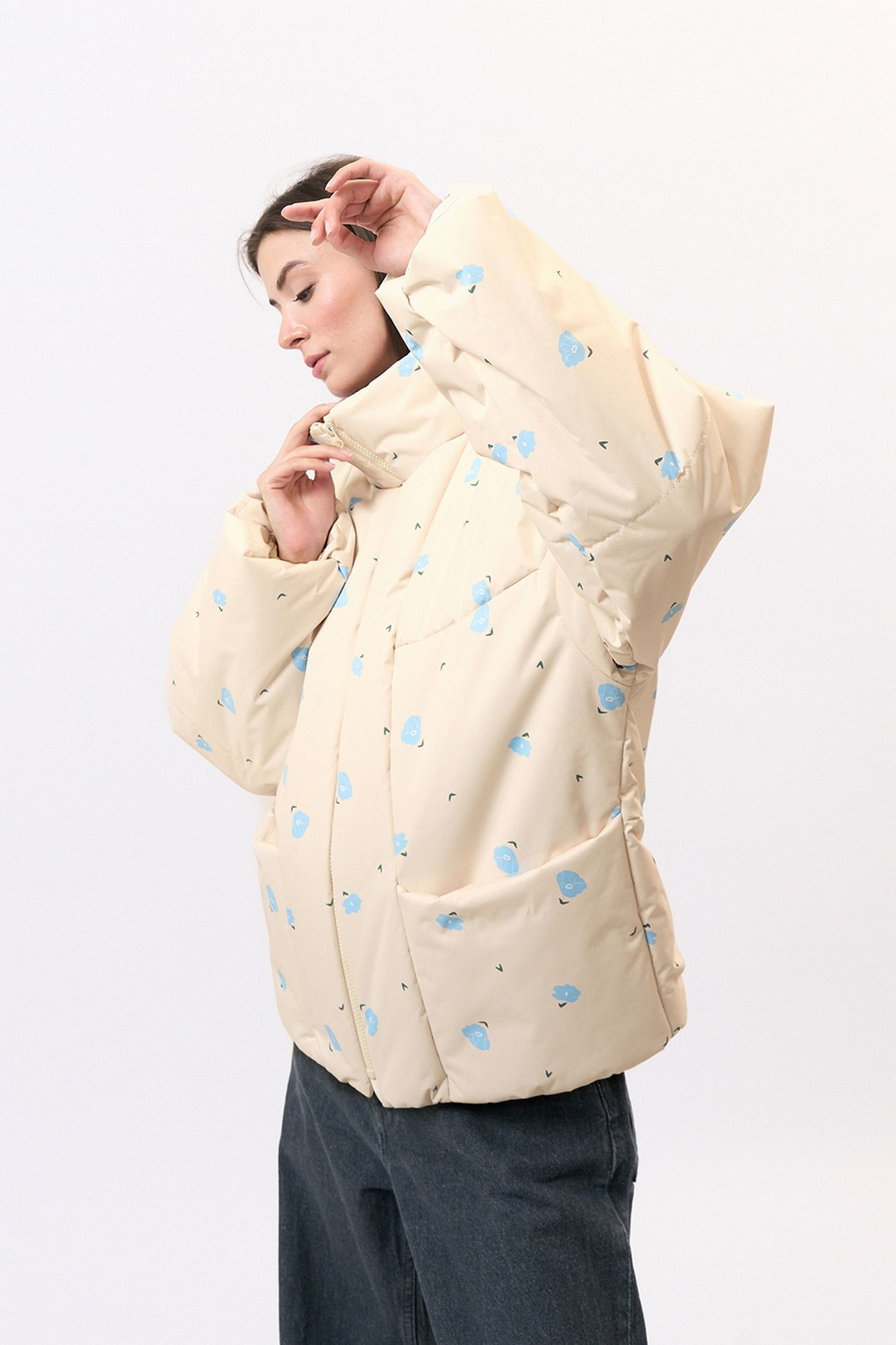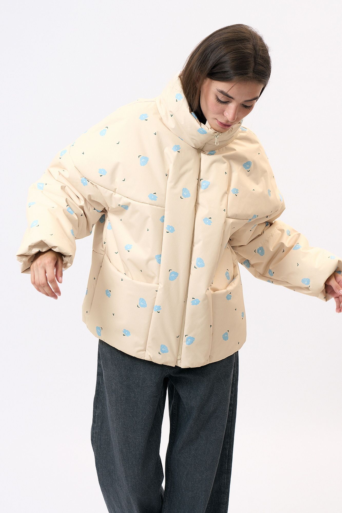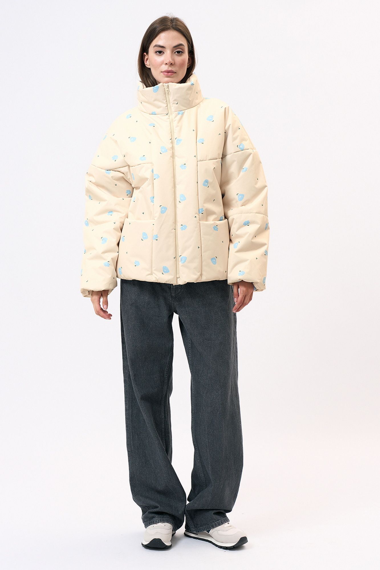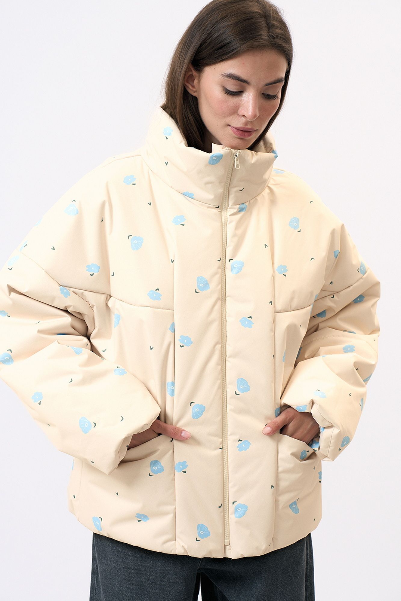Куртка прямого силуэта изготовлена из непродуваемой плащевой ткани, на синтепоне. На переде обработаны накладные карманы. Рукав длинный, втачной. Застежка центральная на молнии. Возможно отличие фотографии по оттенку, связанное с разной цветопередачей.