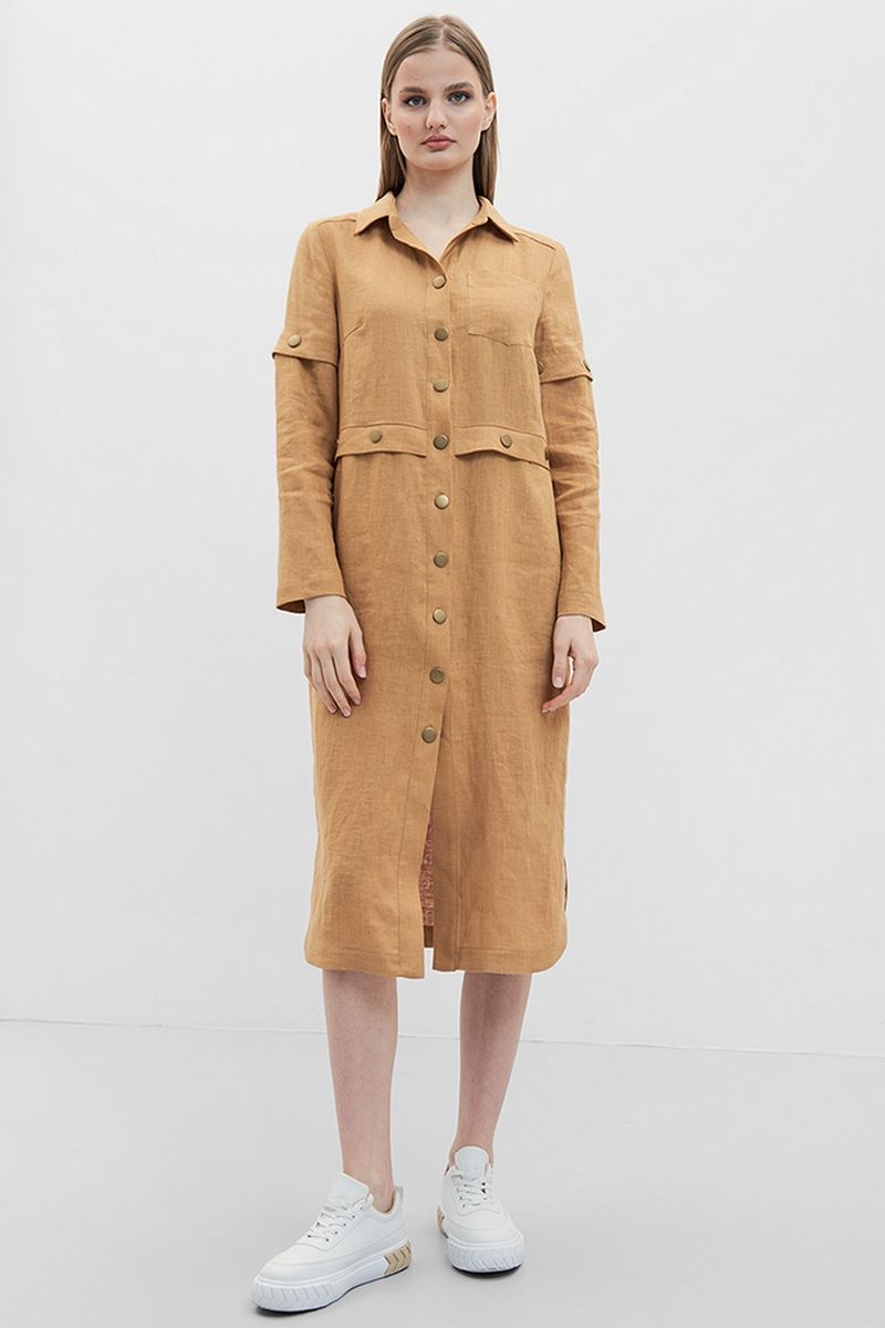 Ценители комфорта и натуральности не оставят без внимания стильное и удобное льняное платье ArtRibbon. Удлиненное платье-трансформер. позволит ощущать себя в эпицентре модных веяний. Невероятно стильное, очень комфортное льняное платье будет уместно в любых повседневных ситуациях. Лен не только красив, но еще очень приятен телу. Платье-рубашка прямого силуэта, с центральной застежкой на кнопки. Воротник рубашечный, рукав втачного покроя. В боковых швах обработаны карманы. Возможно отличие фотографии по оттенку, связанное с разной цветопередачей монитора. Длина по центру спинки : , 115см., 115см., 115см., 115см., 115см., 115см. По груди : , 49см., 51см., 53см., 55см., 57см., 59см. По бедрам : , 52см., 54см., 56см., 58см., 60см., 62см. По талии : , 45см., 47см., 49см., 51см., 53см., 55см. Длина рукава : , 61см., 61см., 61см., 61см., 61см., 61см. Ширина рукава : , 17.6см., 18.3см., 19см., 19.7см., 20.4см., 21.1см. Размер горловины : , 43см., 43.5см., 44см., 44.5см., 45см., 45.5см. Размер воротника : , 22см., 22.5см., 23см., 23.5см., 24см., 24.5см. Ширина плеча : , 12.3см., 12.5см., 12.7см., 12.9см., 13.1см., 13.3см. Ширина спинки : , 37см., 38см., 39см., 40см., 41см., 42см.