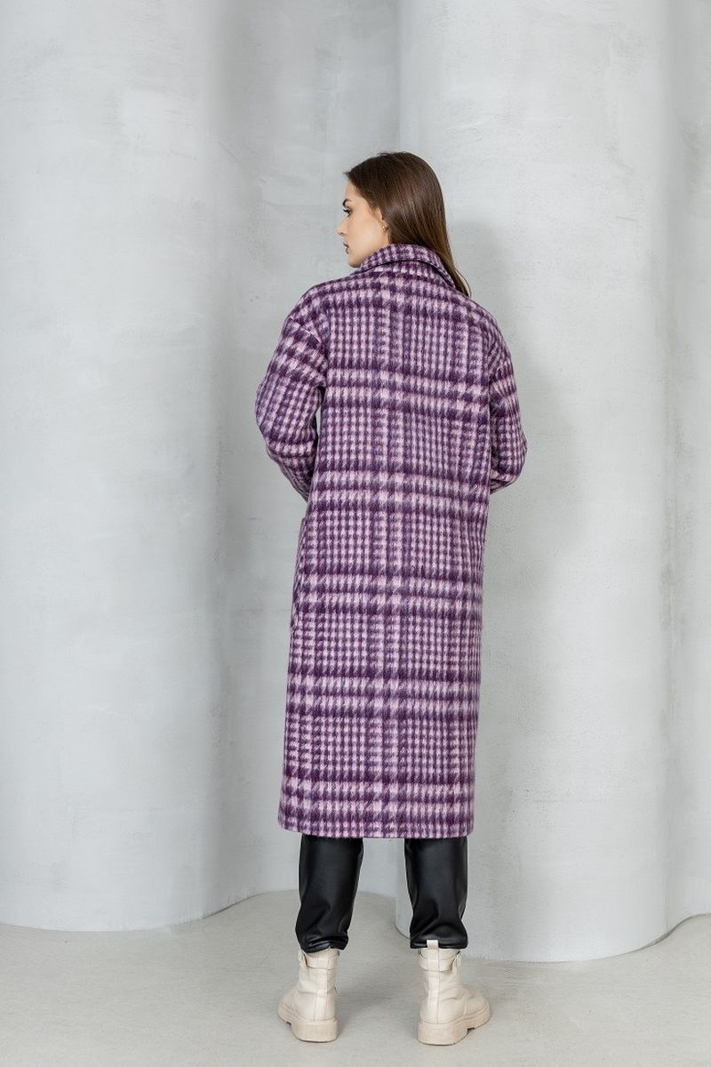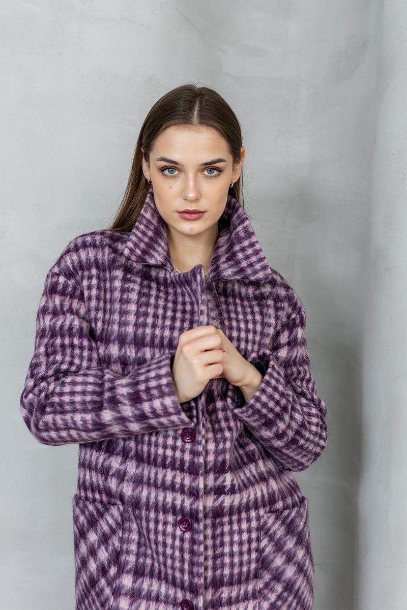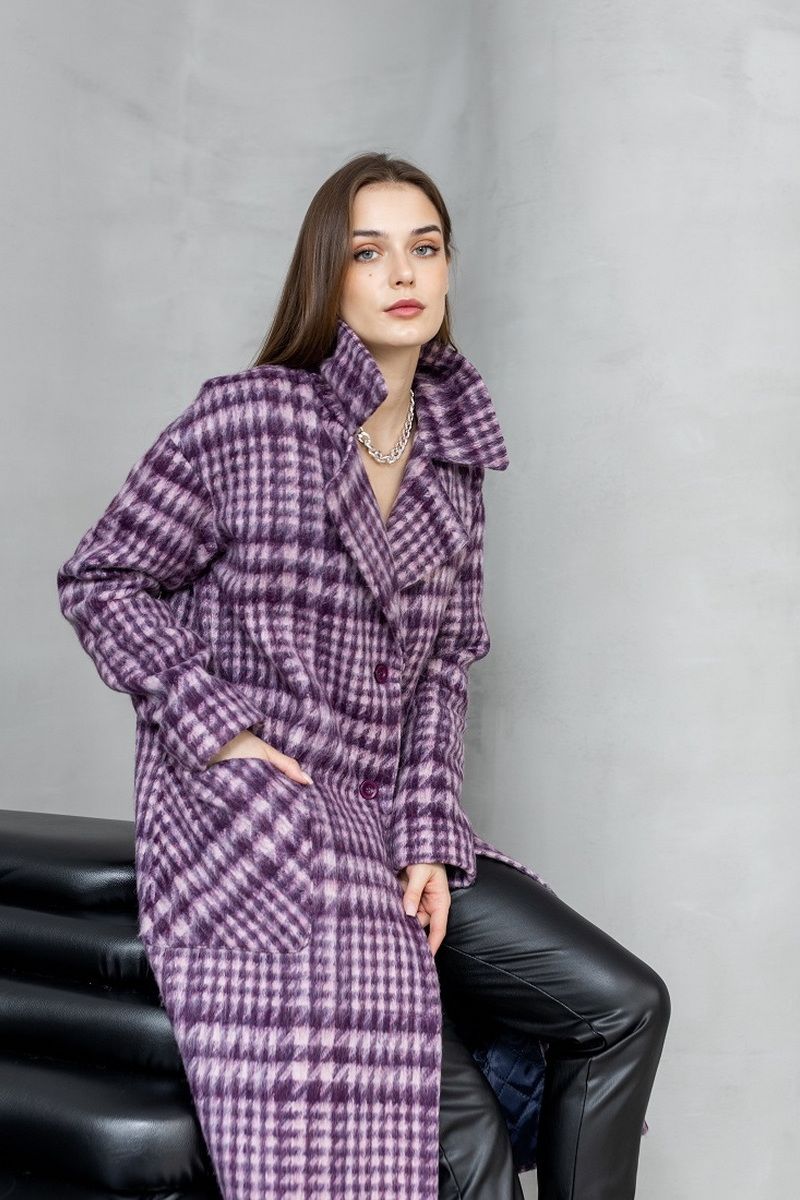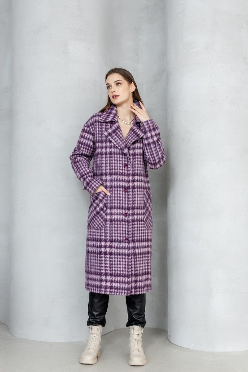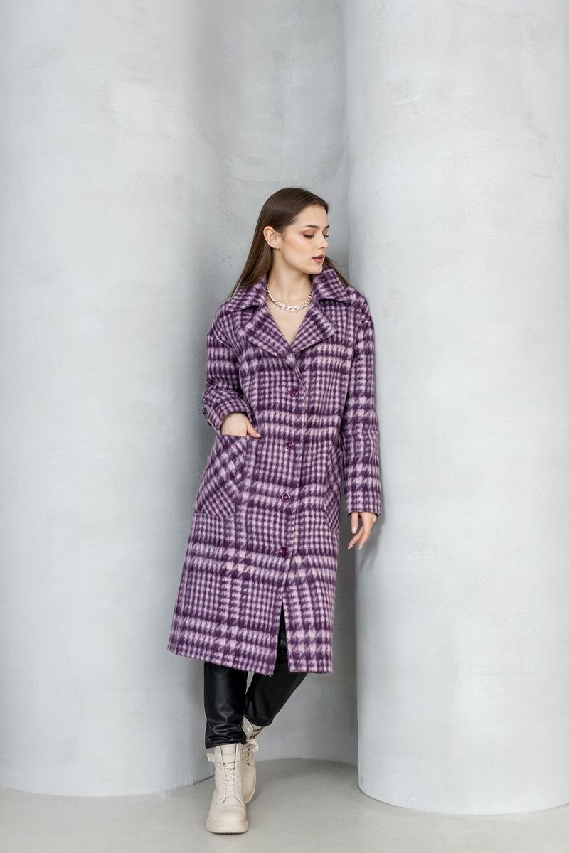 Пальто демисезонное на подкладке, изготовлено из мягкой шерстяной ткани. Прямого силуэта, с большим воротником, с удобной спущенной линией плеча. По переду настрочены большие накладные карманы. Застежка на петли и пуговицы.