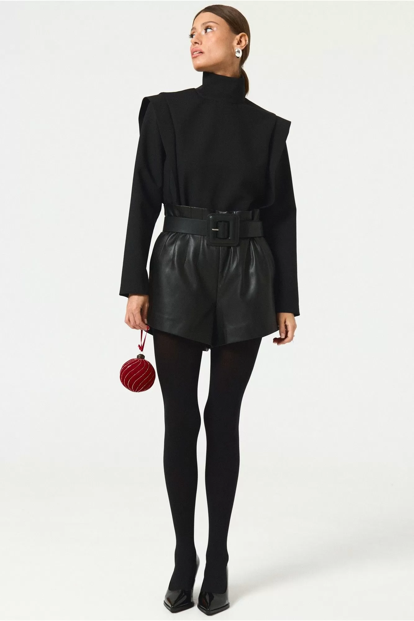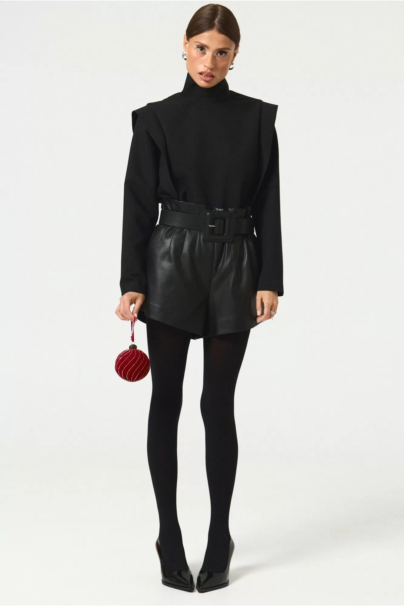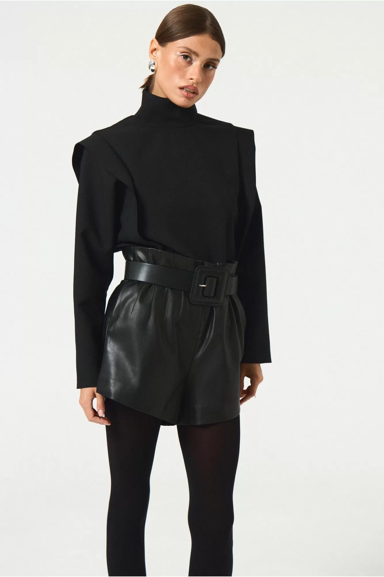 Джемпер среднего объема, длиной до линии талии с напуском, по низу изделия цельнокроеная кулиска с эластичной тесьмой. Перед и спинка с вертикальными рельефами от плеча до низа, с втачными декоративными планками в рельефах. Джемпер с квадратной проймой. Рукава длинные, втачные, одношовные. Воротник - стойка. В среднем шве спинки застежка на потайную тесьму «молния»