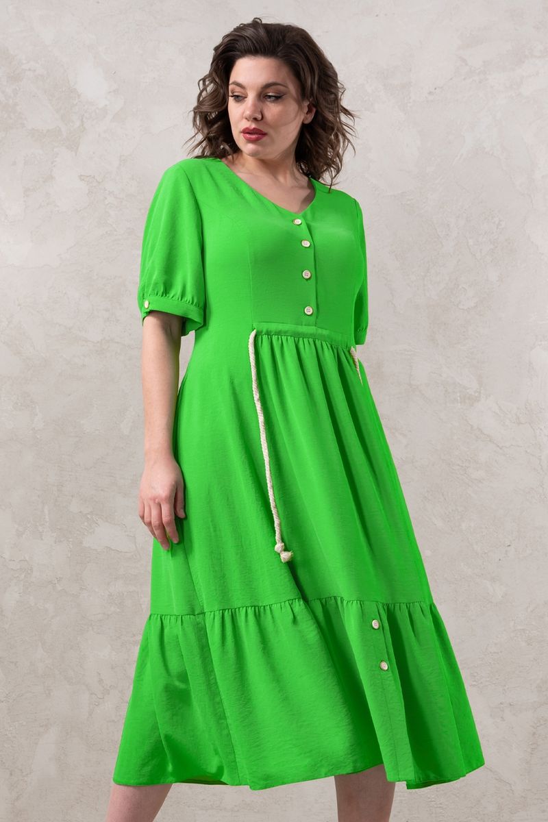 Легкое платье с воланами. Ткань костюмно-плательная средней плотности. На переде застежка. Длина 116 см, рукава 28 см