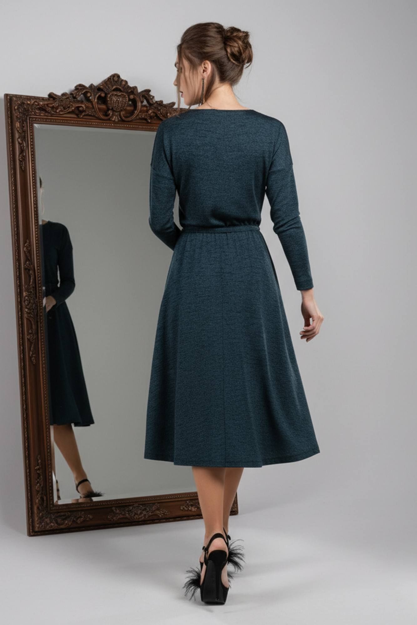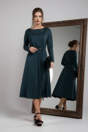 Вечернее платье полуприлегающего силуэта из костюмно-плательной ткани средней плотности, немного тянется. В боковых швах удобные карманы.