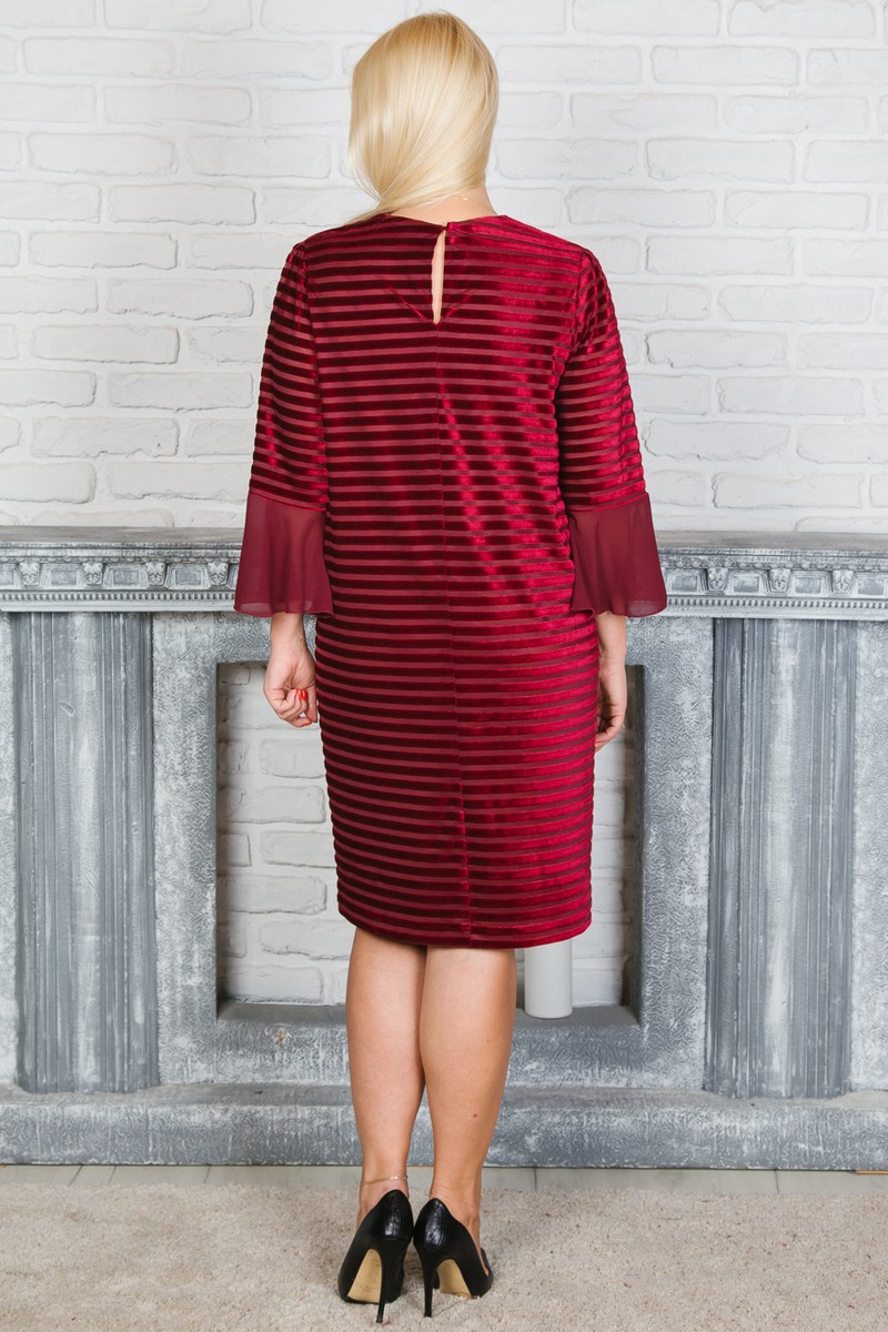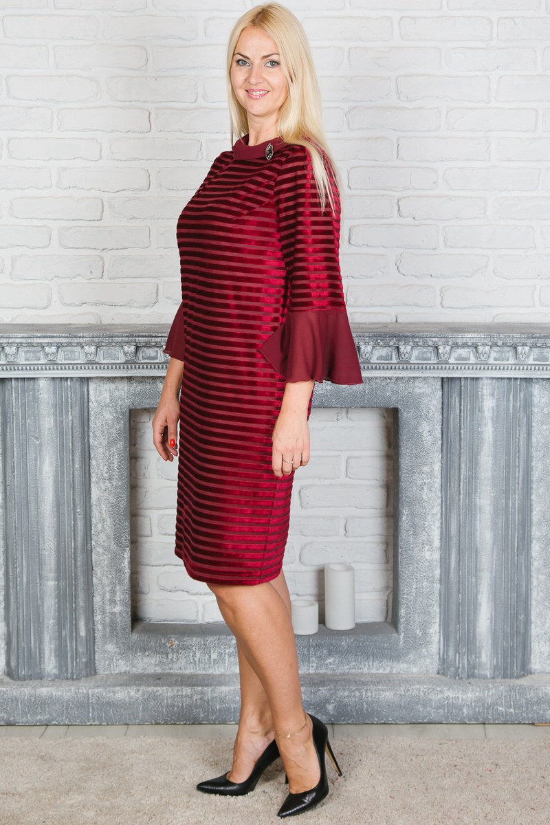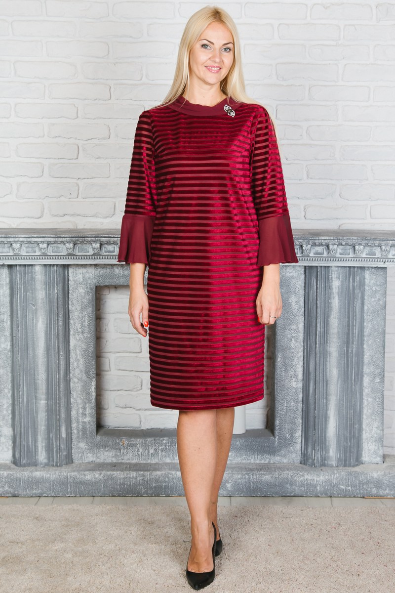 Платье прямого силуэта с изящным дизайном ткани. Длина платья до колена, рукав 3/4. В качестве декора на платье приколта брошь.