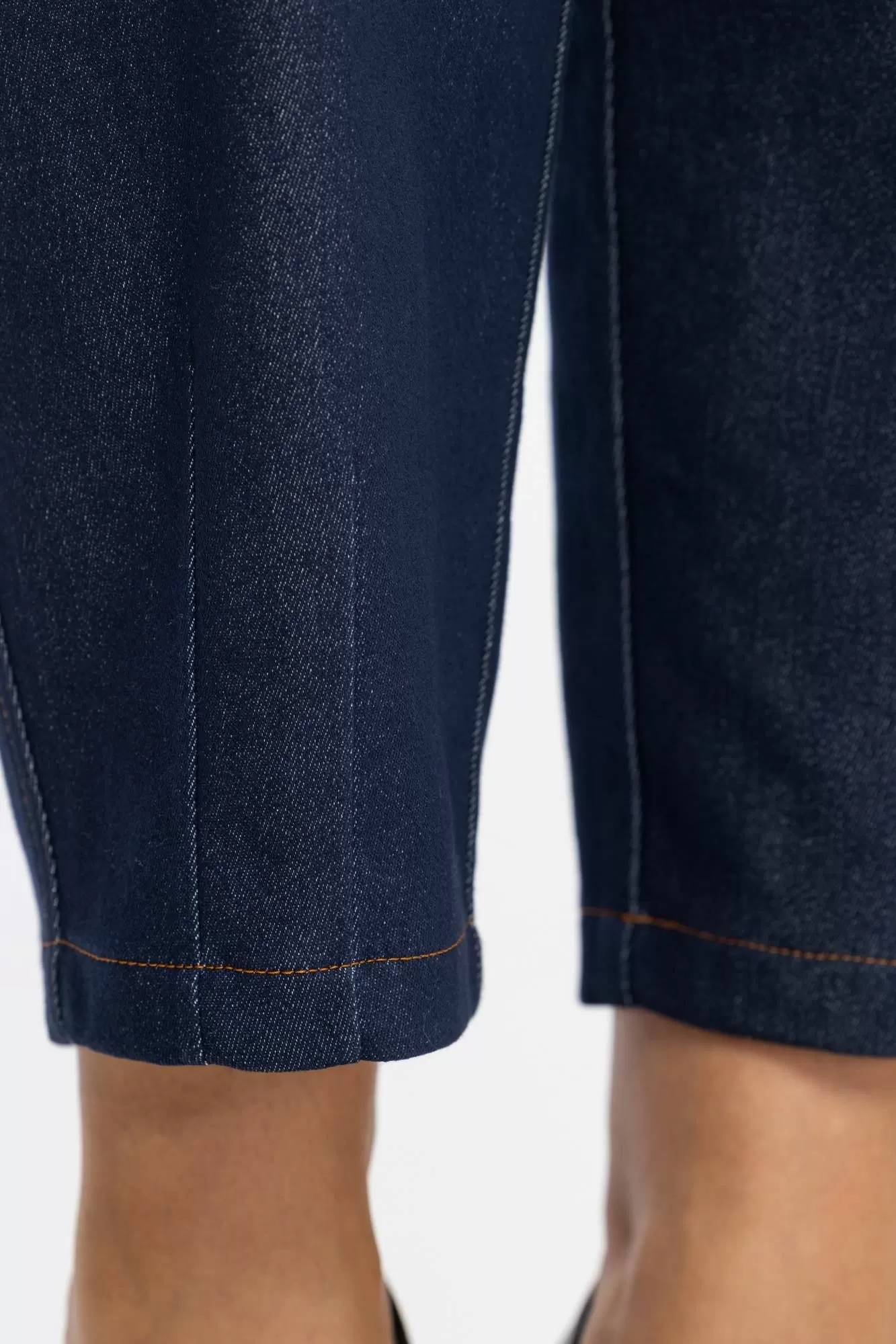 Стильные брюки из джинсовой ткани, свободного кроя, зауженные к низу. Высокая посадка, с элементом резинки по талии