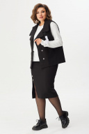 Элегантный женский комплект, полуприлегающего силуэта, состоящий из жилета и юбки. Без подкладки. Выполнен из плотного трикотажа, который растяжим и хорошо держит форму, что помогает скрыть недостатки фигуры. Комплект имеет отличную посадку, за счёт хорошо проработанных лекал. Жилет без застёжки, декорирован серебристыми пуговицами. Широкий, двубортный, отложной воротник придаёт комплекту особый шарм и визуально удлиняет линию шеи. Углубленные проймы, позволяют носить жилет как второй слой и сочетать с различными блузами и лонгсливами. Низ жилета обработан широкой настрочной обтачкой. Юбка с фигурным разрезом, придающим игривый образ. Для гармоничности комплекта, в качестве декора, используются серебристые пуговицы как в жилете. Верх юбки обработан притачным поясом на эластичной резинке, без использования застёжки-молнии. Что позволяет создать особый комфорт при носке изделия. Низ юбки выполнен классическим способом вподгибку на плоскошовной машине. Такая модель идеально впишется в любой гардероб, за счёт своей универсальности и возможности выглядеть шикарно на любом мероприятии, встрече или прогулке. Отлично сочетается с любой обувью. Жилет и юбку можно приобрести отдельно. Артикул жилета 7012, артикул юбки 5010. На фото так же представлен лонгслив от бренда BegiModa, артикул 4009. Замеры в готовом изделии: Жилет Длина по центру спинки: 64 см Обхват груди: 112см/48р; 116см/50р; 120см/52р; 124см/54р; 128см/56р; 132см/58р; 136см/60р; 140см/62р. Юбка Длина юбки: 73 см. Обхват бёдер: 104см/48р; 108см/50р; 112см/52р; 116см/54р; 120см/56р; 124см/58р; 128см/60р; 132см/62р. Рост фотомодели 174 см, размер одежды на фото 52. Допуск расхождения в замерах +-2 см