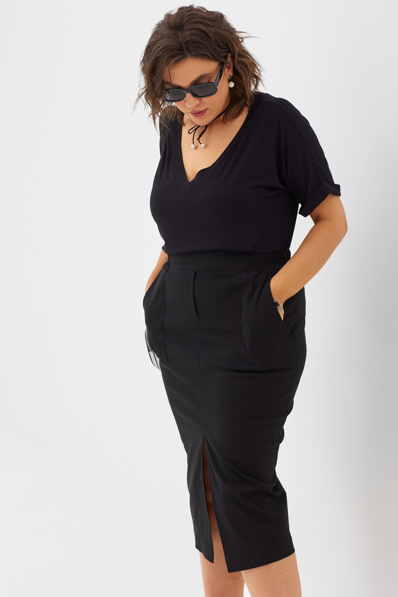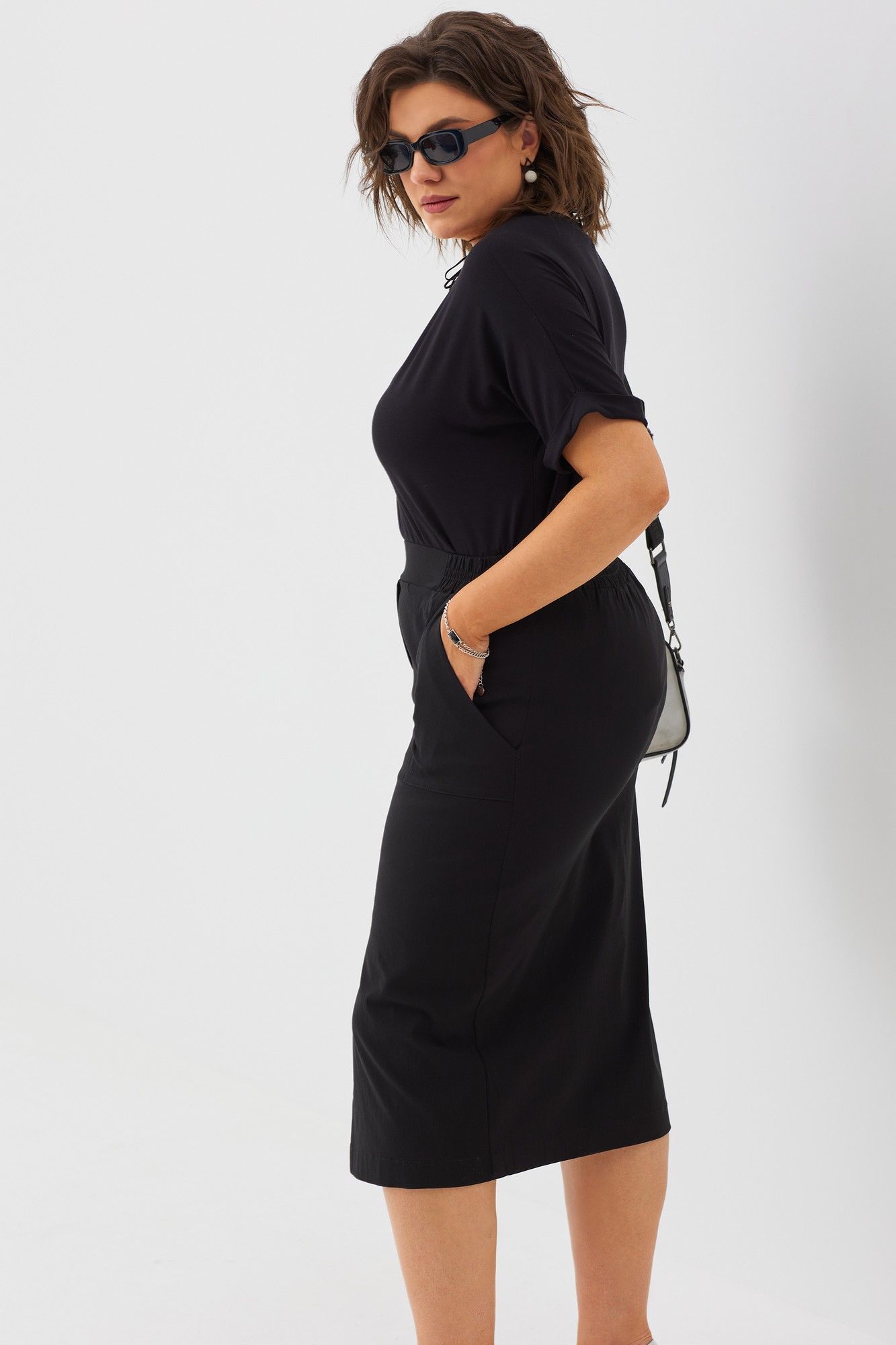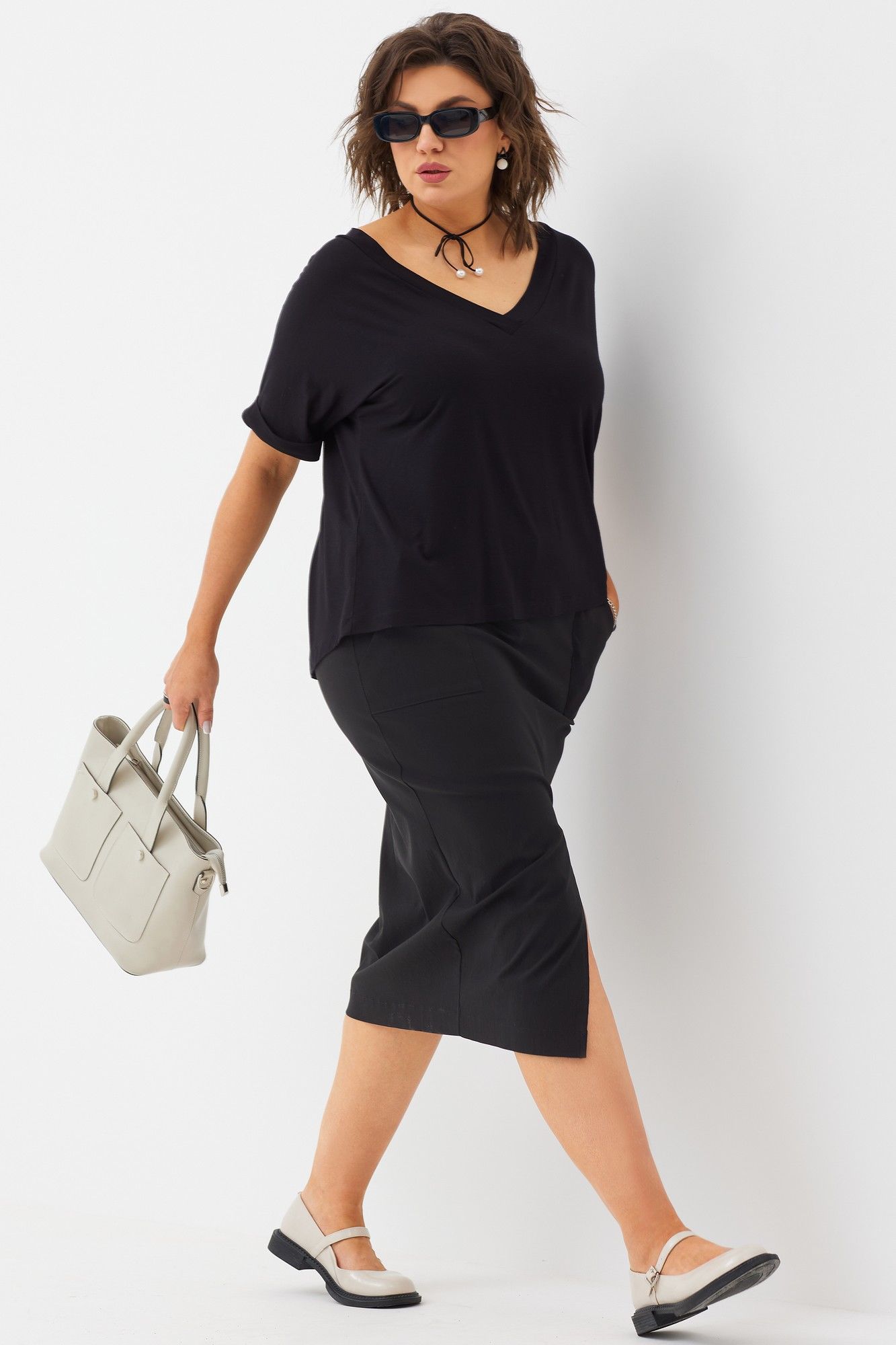 Элегантная юбка миди без подкладки, прямого кроя - идеальный выбор для создания стильных образов. Её универсальность позволяет сочетать юбку с различными топами, блузами и обувью, подчёркивая женственность фигуры. Выполнена из текстильной хорошо растяжимой ткани с эффектом вываренных прокрасов в виде разводов. Юбка идеально садится по фигуре, стройнит, визуально вытягивает силуэт. По передней части имеются настрочные боковые карманы. По центру выполнен разрез правильной высоты, создающий элегантную линию по ножке. Пояс притачной, без застёжки на эластичной резинке. Низ изделия обработан в подгибку. Предлагаем сочетать юбку с блузами арт. 4097, арт.4091. Замеры в готовом изделии: Длина с поясом: 80 см. Обхват бёдер: 104см/48р; 106см/50р; 110см/52р; 114см/54р; 118см/56р; 122см/58р; 126см/60р; 130см/62р. Рост фотомодели 174 см, размер одежды на фото 52