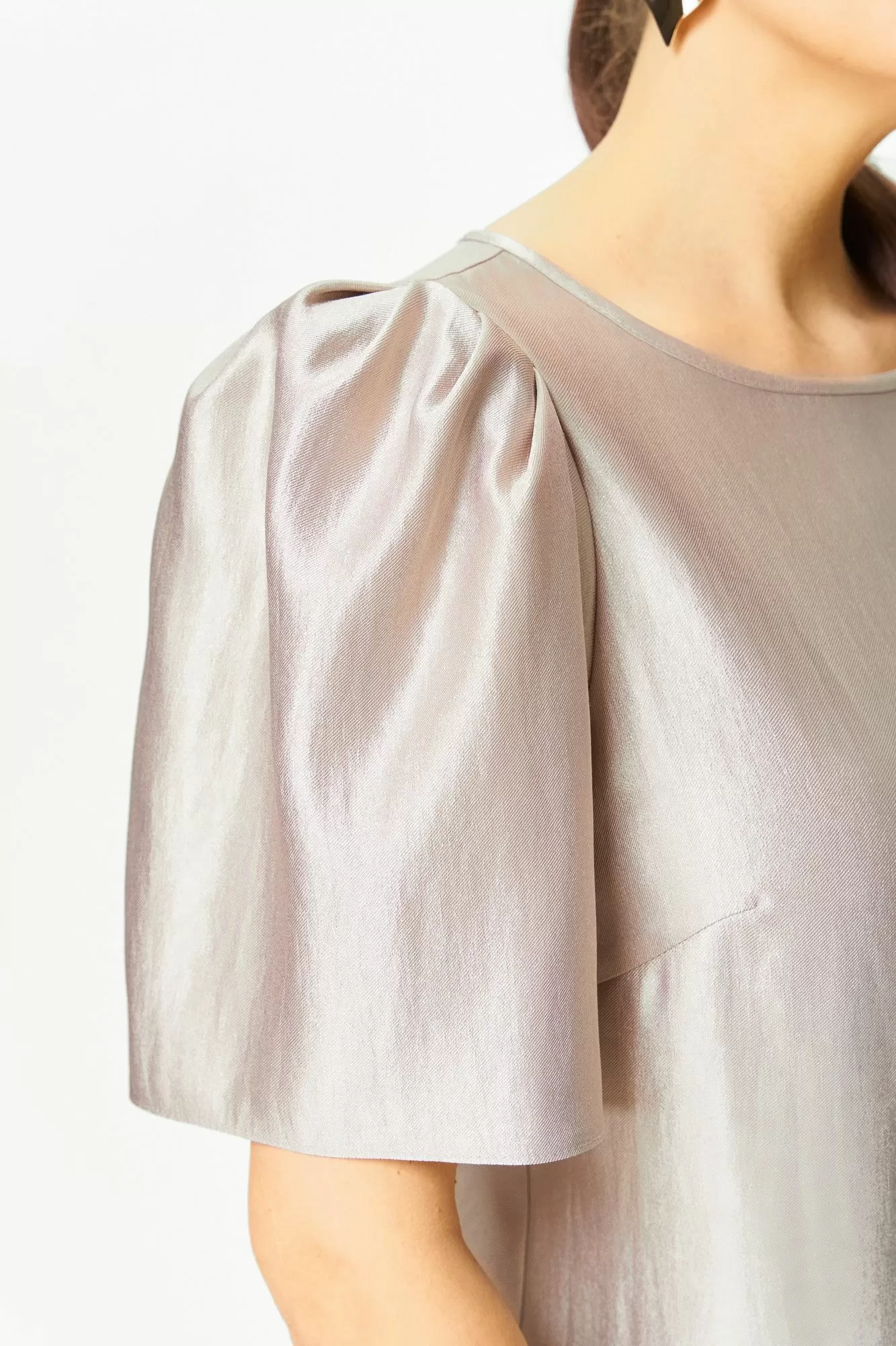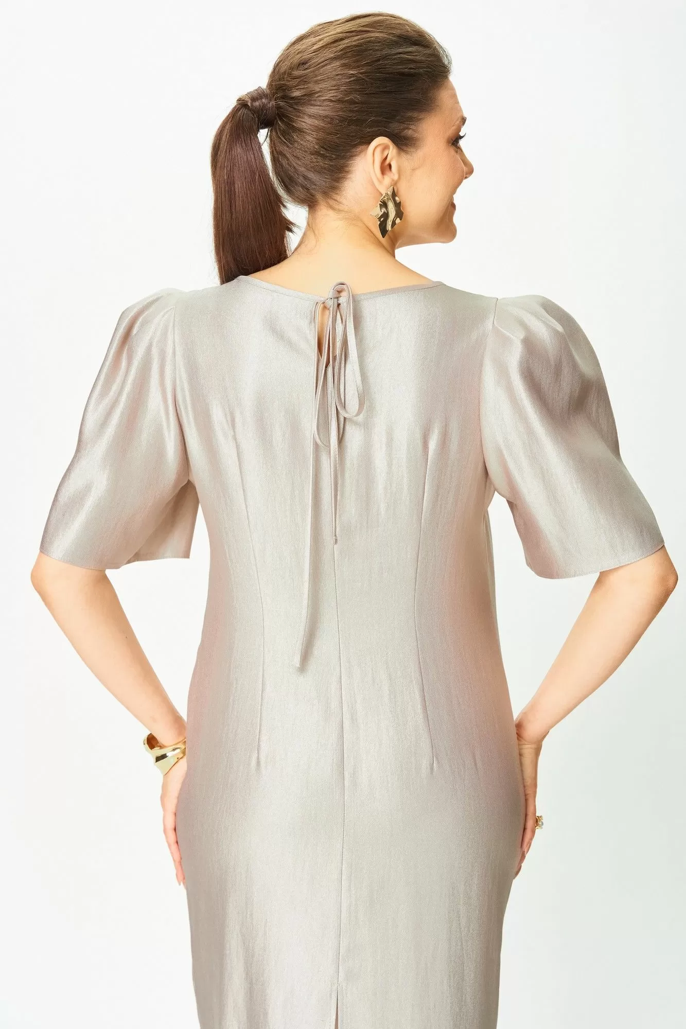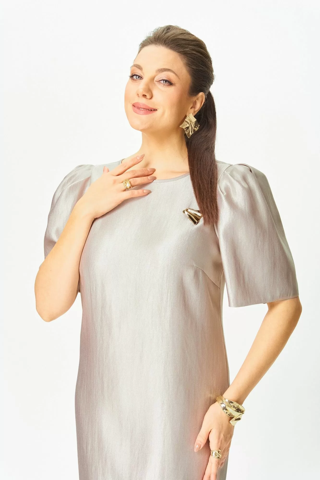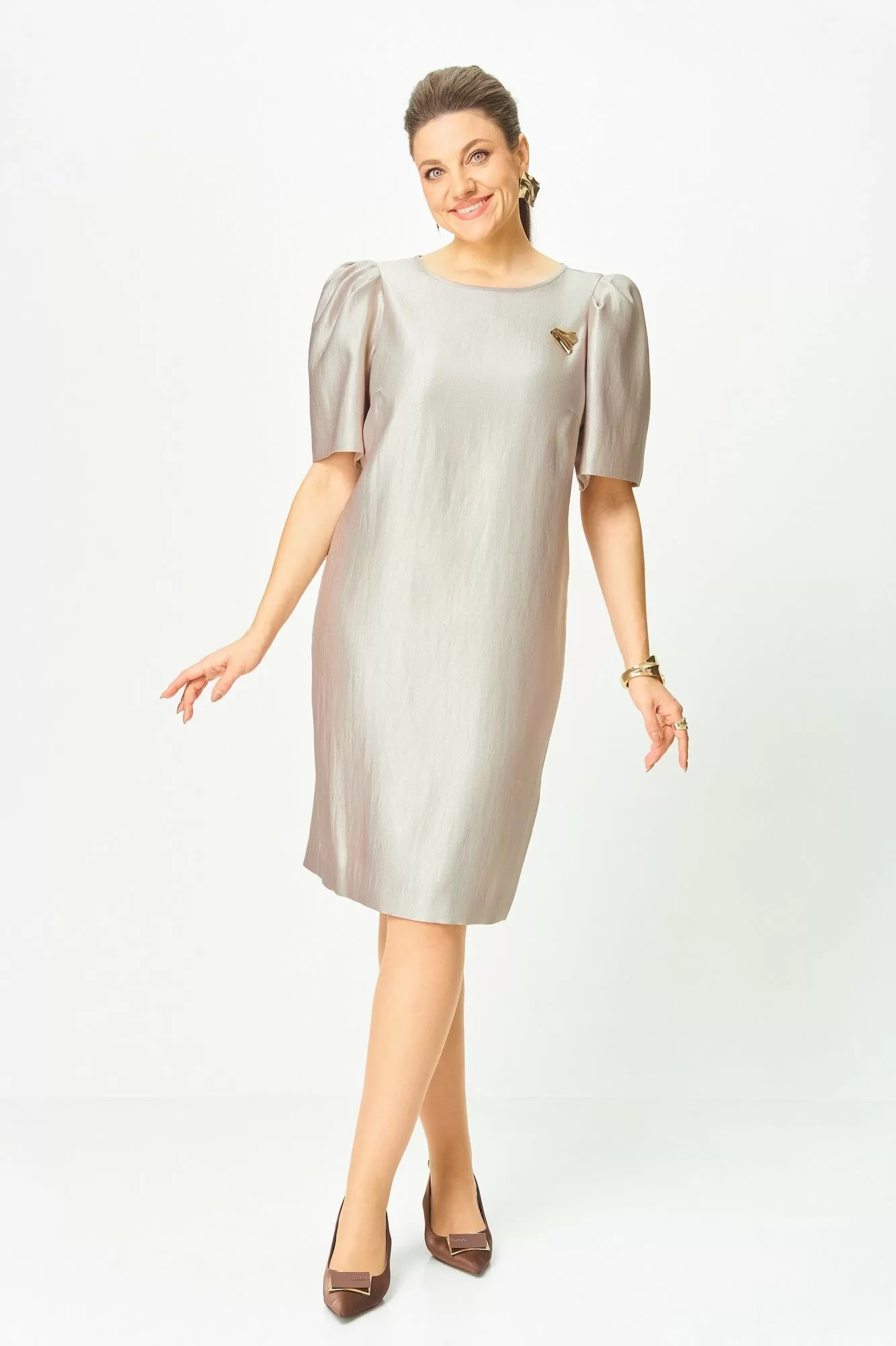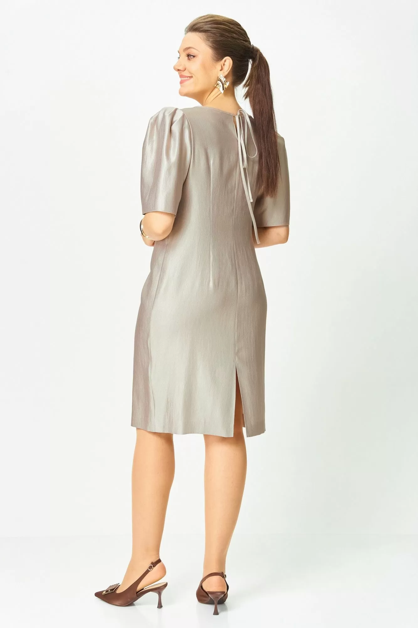 Элегантное женское платье, выполнено из плательной ткани с небольшим блеском.