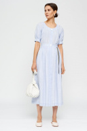 Платье женское длиной миди с втачным поясом на уровне талии. Перед с застежкой-планкой на петли и пуговицы. Рукава реглан с притчными манжетами и сборкой от манжет. Округлый вырез горловины. Декоративная тесьма от пояса по переду и настрочена на пояс спинки. Юбка платья на подкладке.