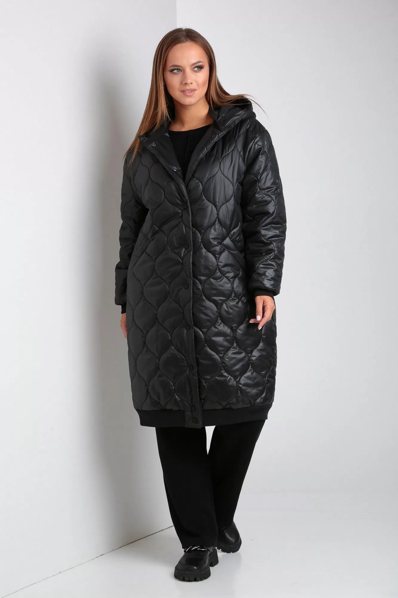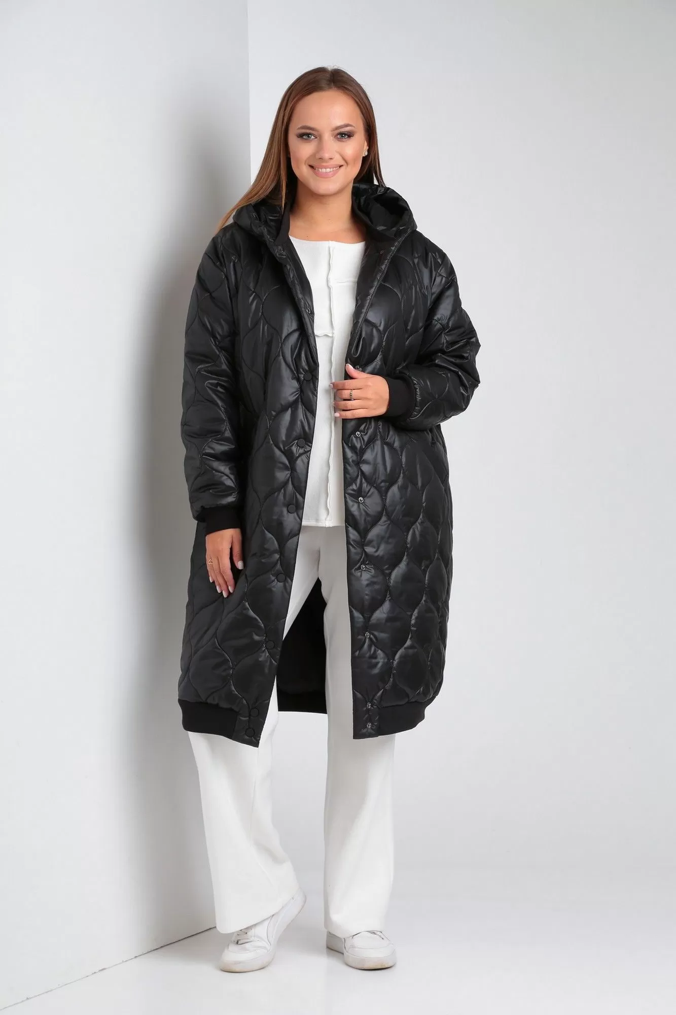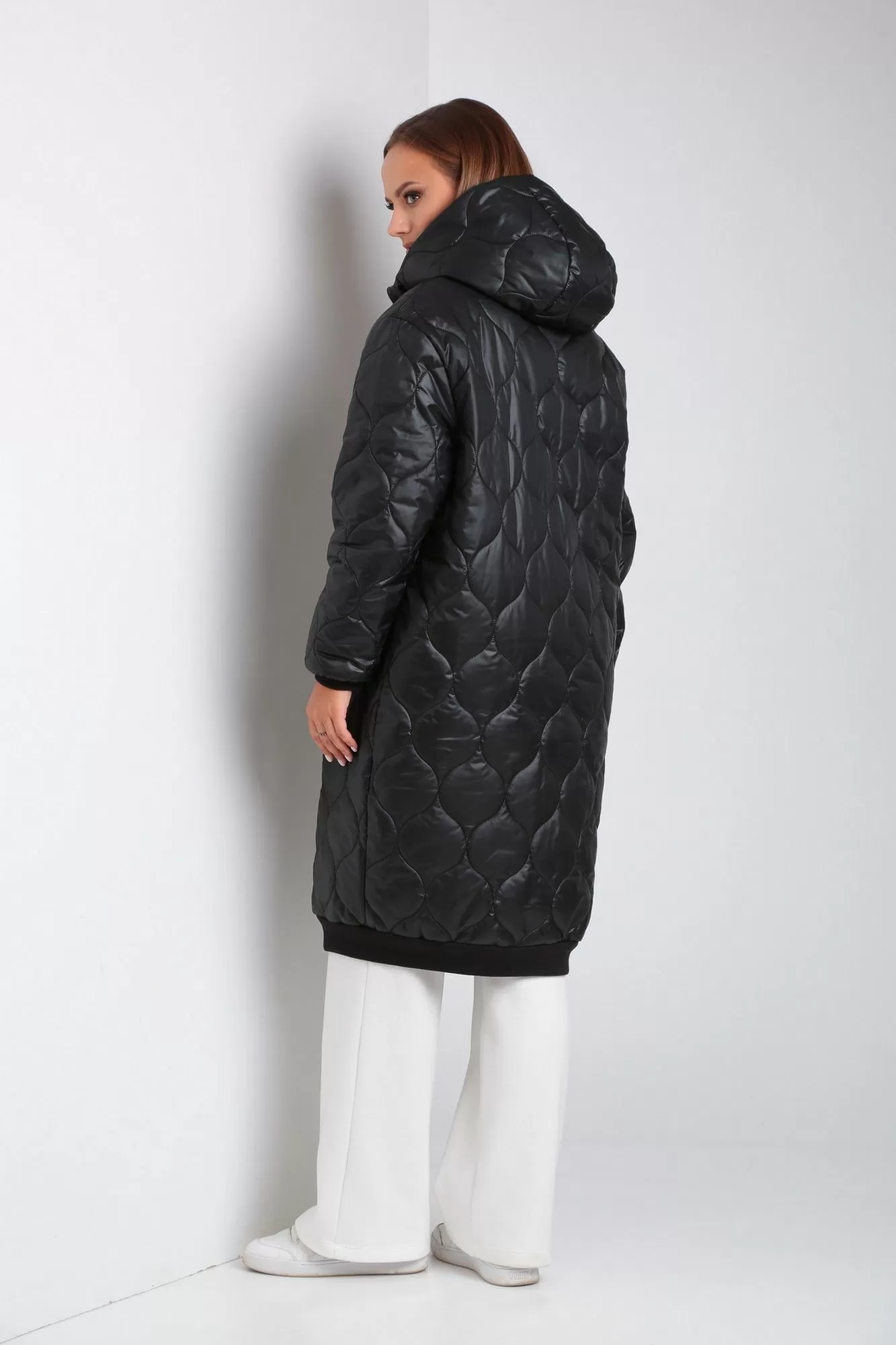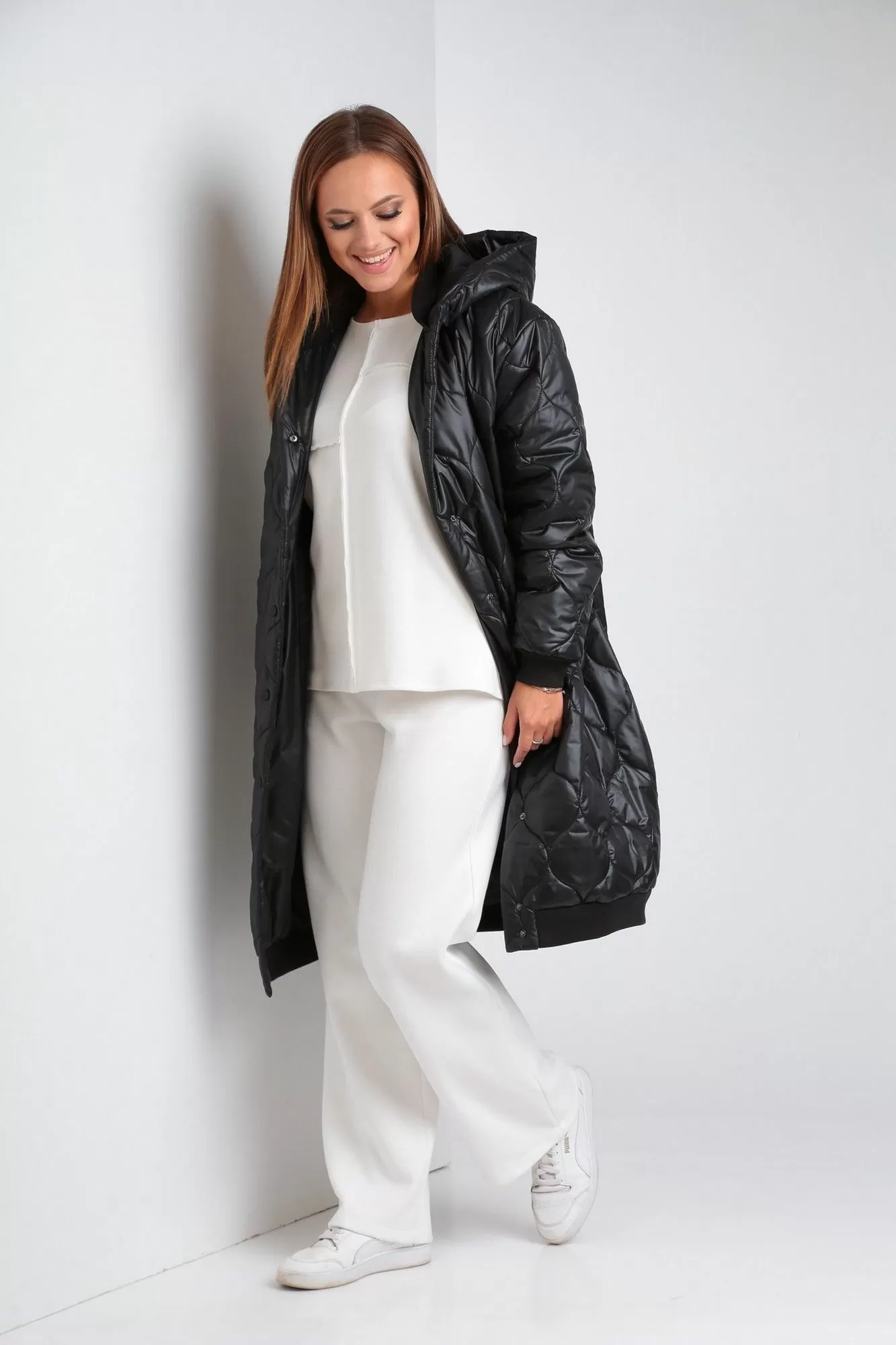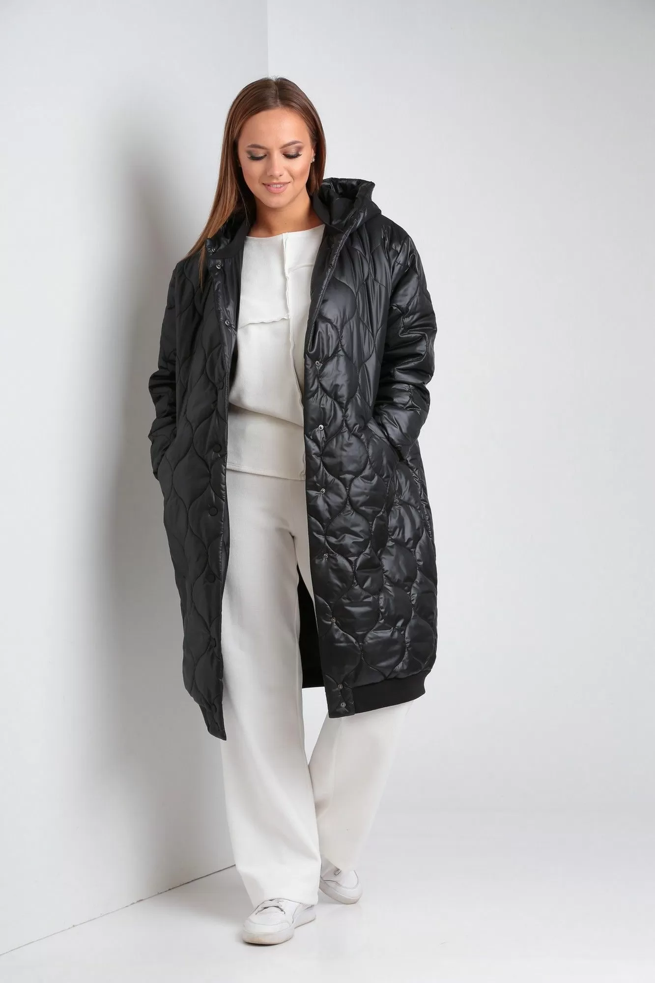 Пальто женское, прямого силуэта с центральной застежкой на кнопки. Линия плеча опущенная, рукав втачной одношовный с притачным манжетом по низу (довяз). Карманы прорезныес втачной листочкой. По низу изделия притачной манжет из отделочной ткани (довяз). Воротник- стойка из отделочной ткани (довяз).