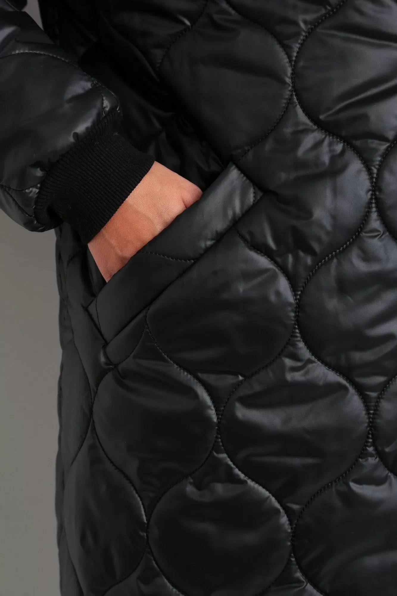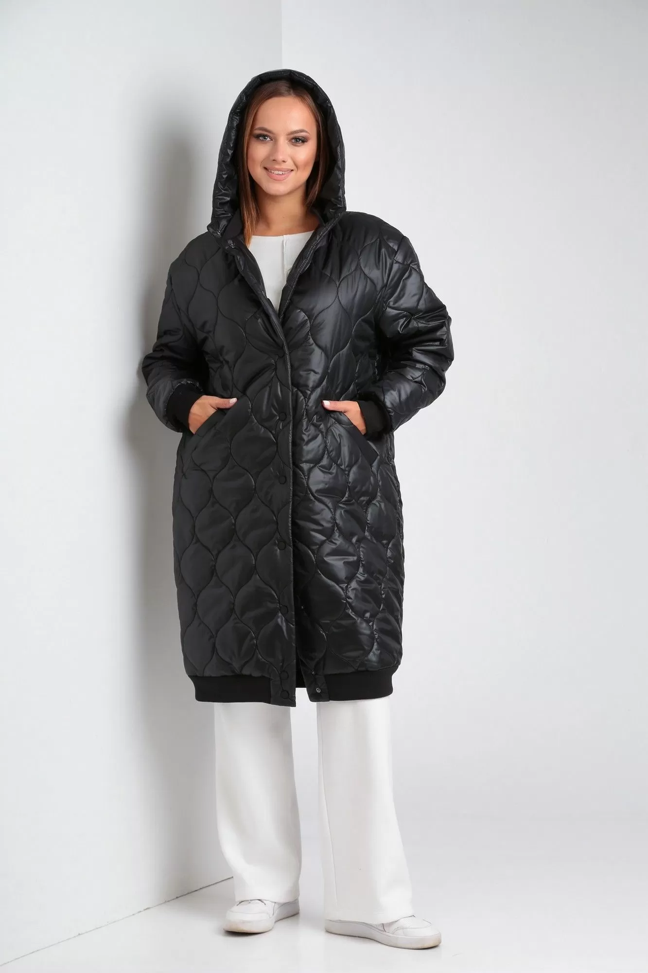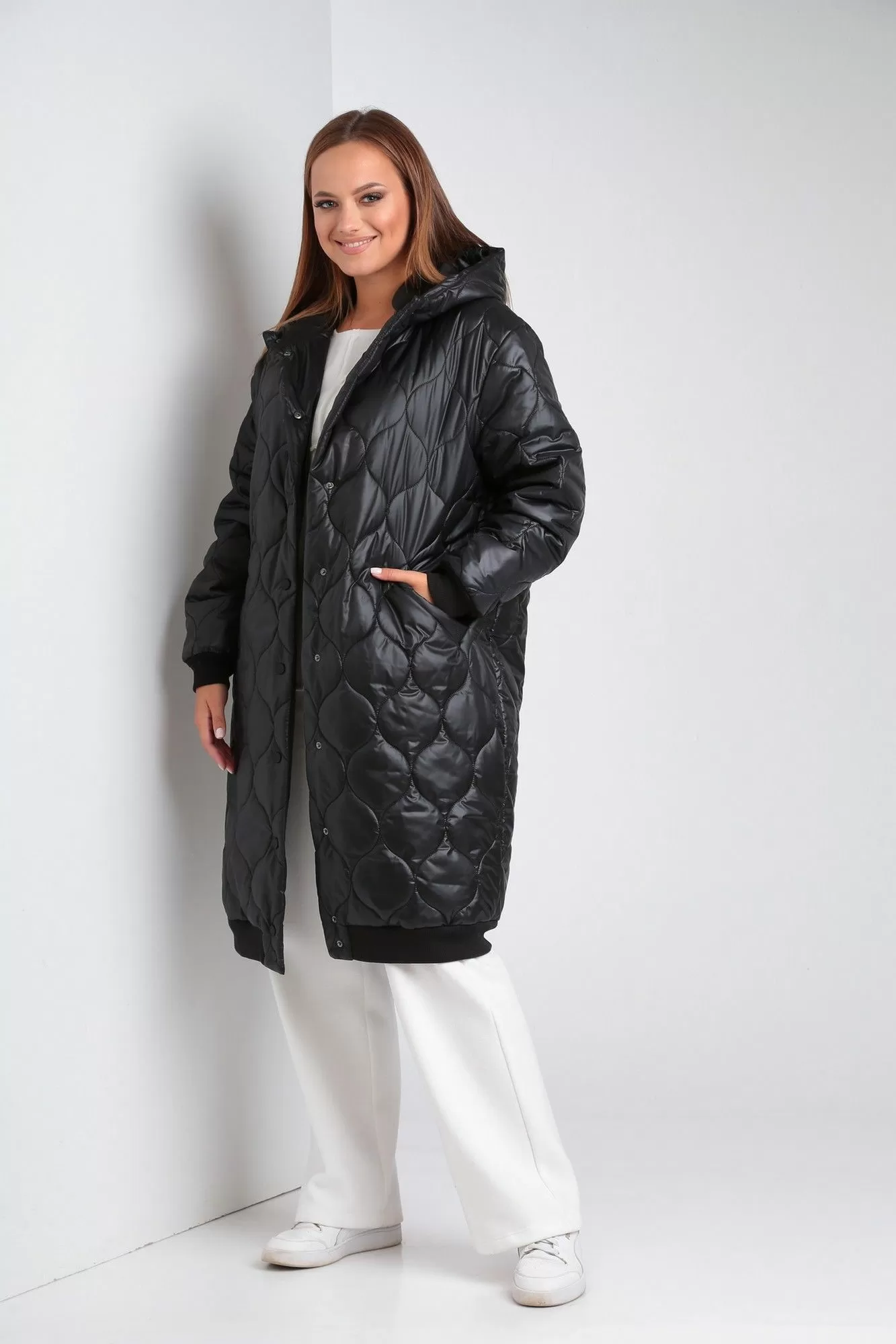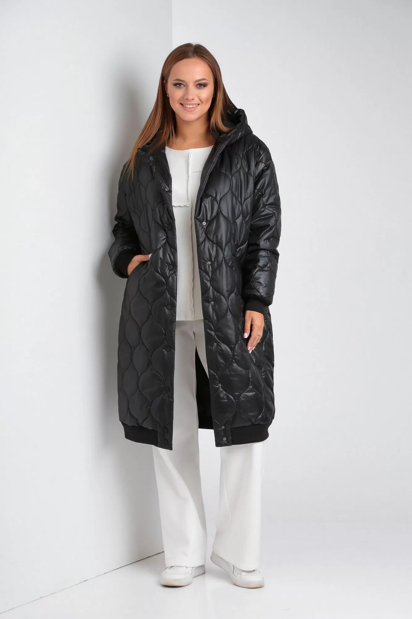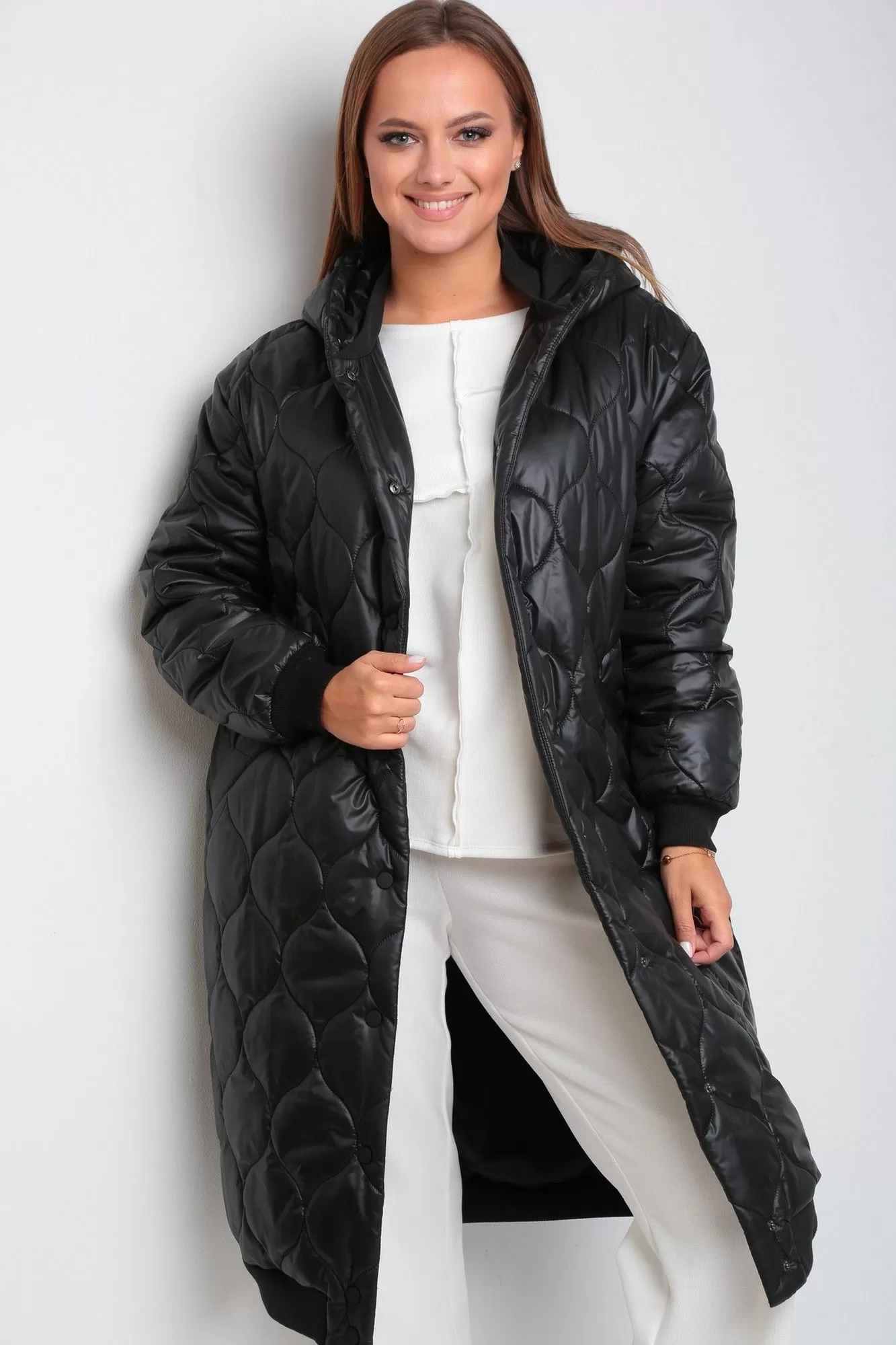 Пальто женское, прямого силуэта с центральной застежкой на кнопки. Линия плеча опущенная, рукав втачной одношовный с притачным манжетом по низу (довяз). Карманы прорезныес втачной листочкой. По низу изделия притачной манжет из отделочной ткани (довяз). Воротник- стойка из отделочной ткани (довяз).