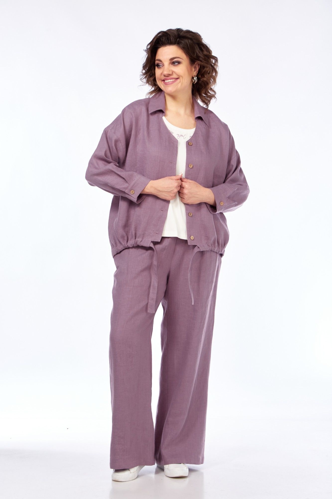 брюки, кардиган - лен 53%, вискоза 47%; майка - вискоза 60%, ПЭ 40%