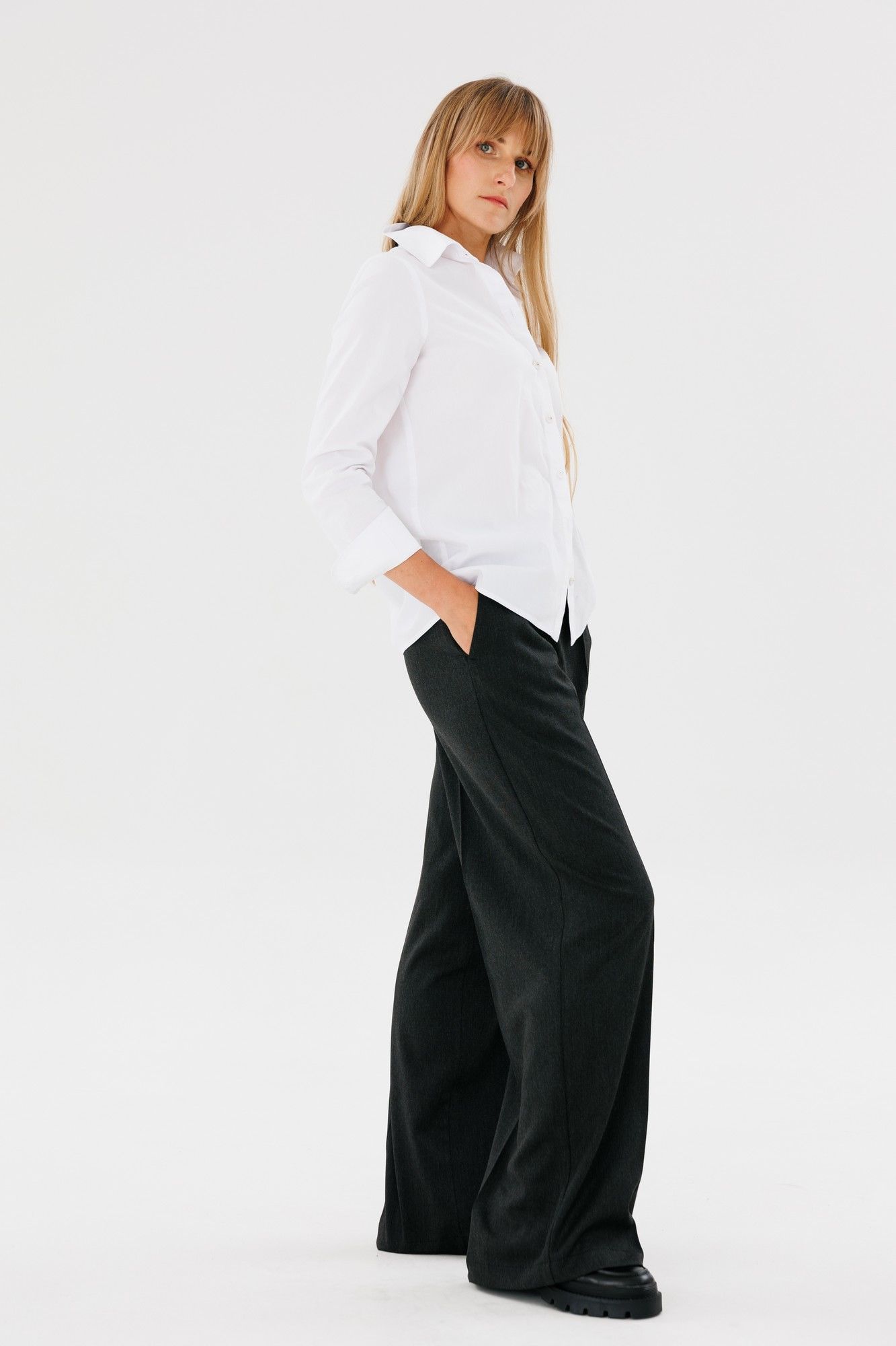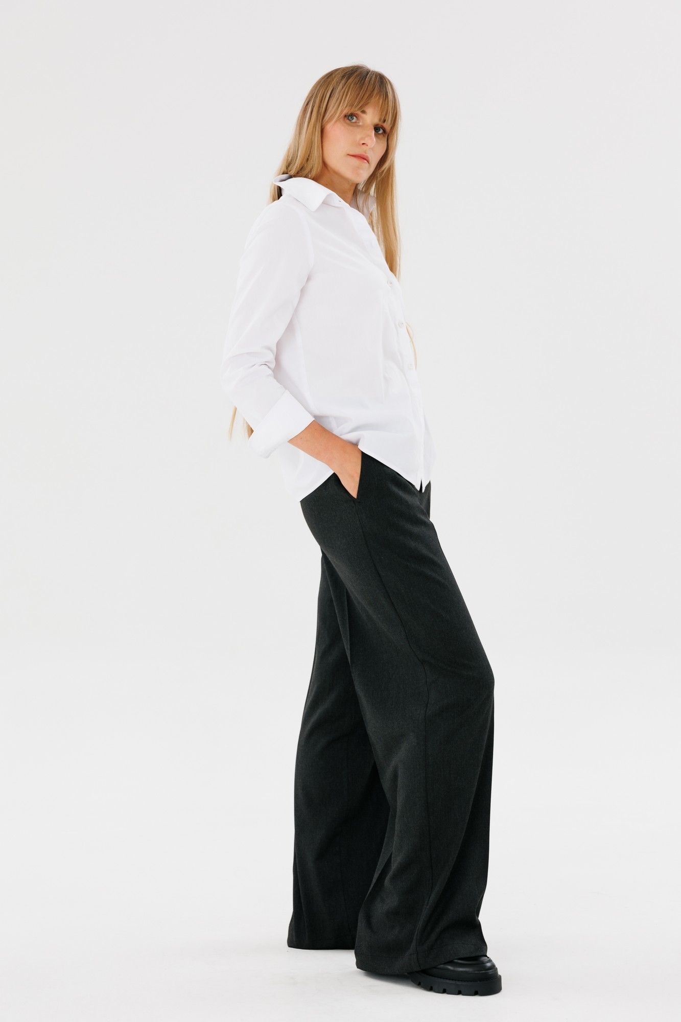 Брюки ПАЛАЦЦО прямого классического кроя с карманами, выполнены в ткани из поливискозы - используются как в деловом, спортивном так и в повседневном стиле. Могут быть самостоятельной единицей и в сочетании с жакетом и жилеткой. Длина изделия 110 см