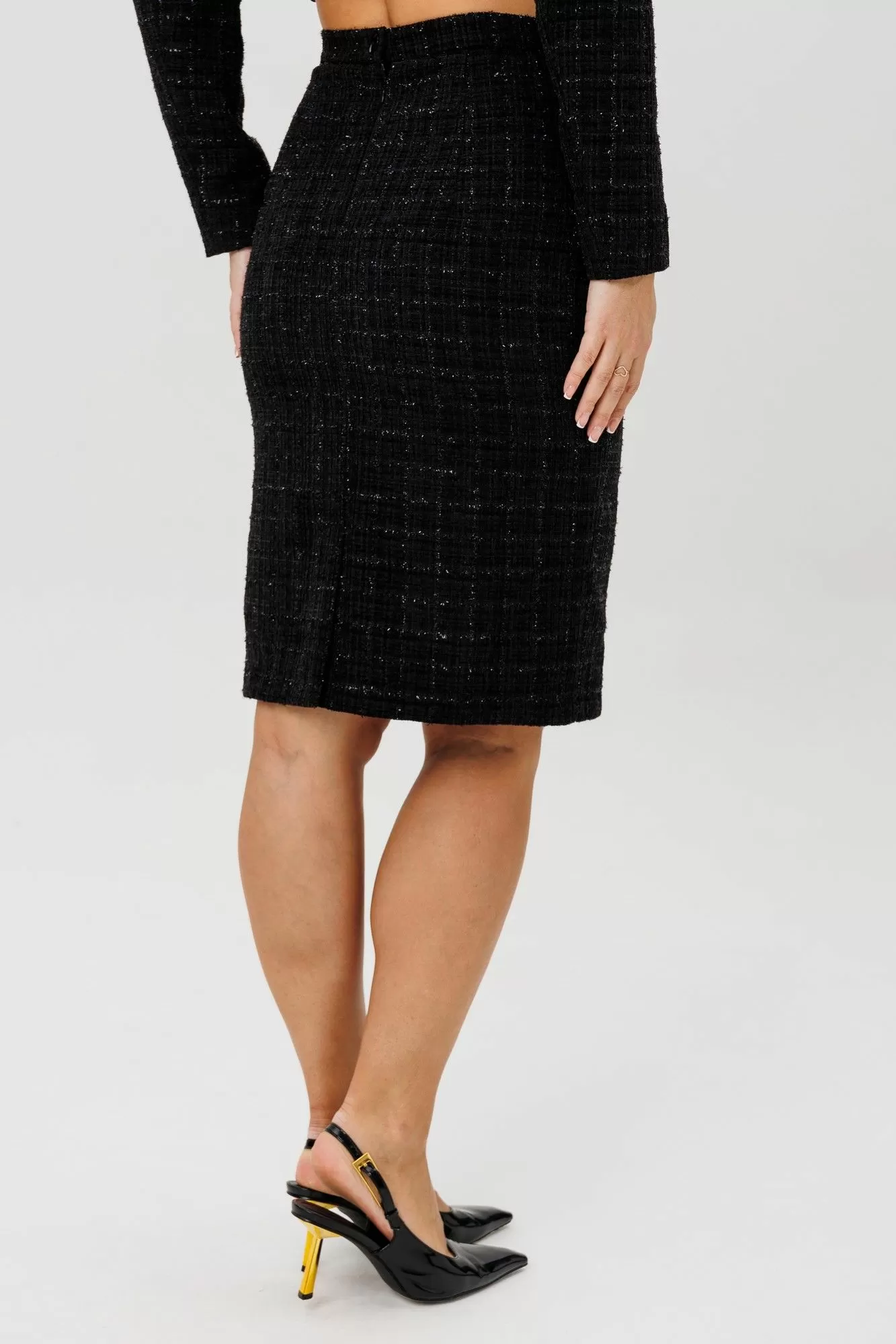 Юбка на подкладке, слегка зауженна к низу.Средний шов юбки заканчивается шлицей. Юбка на поясе.