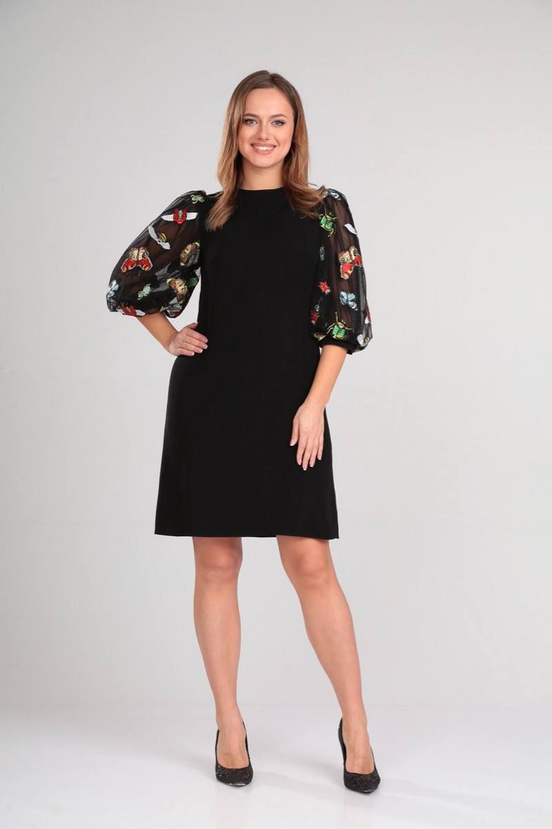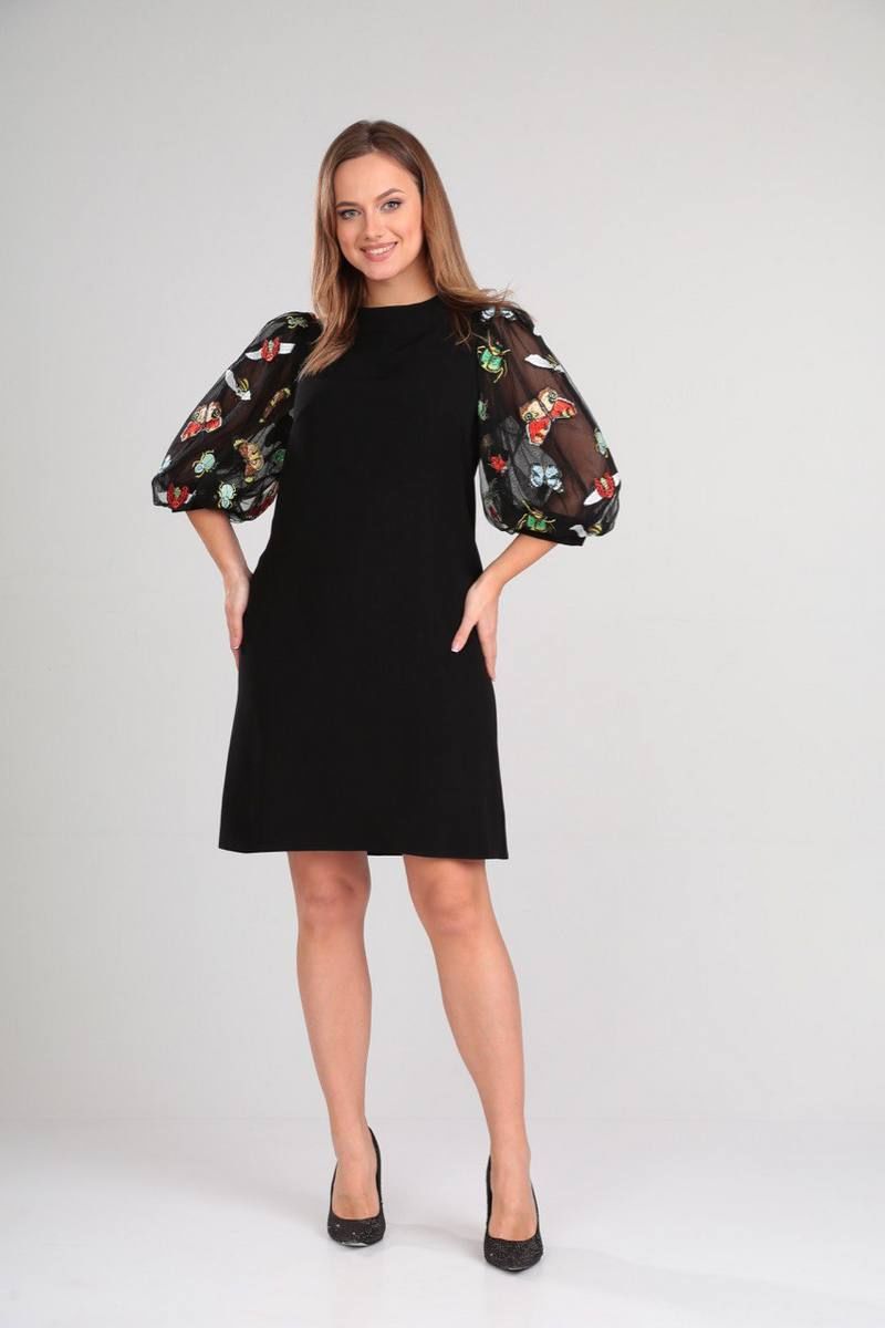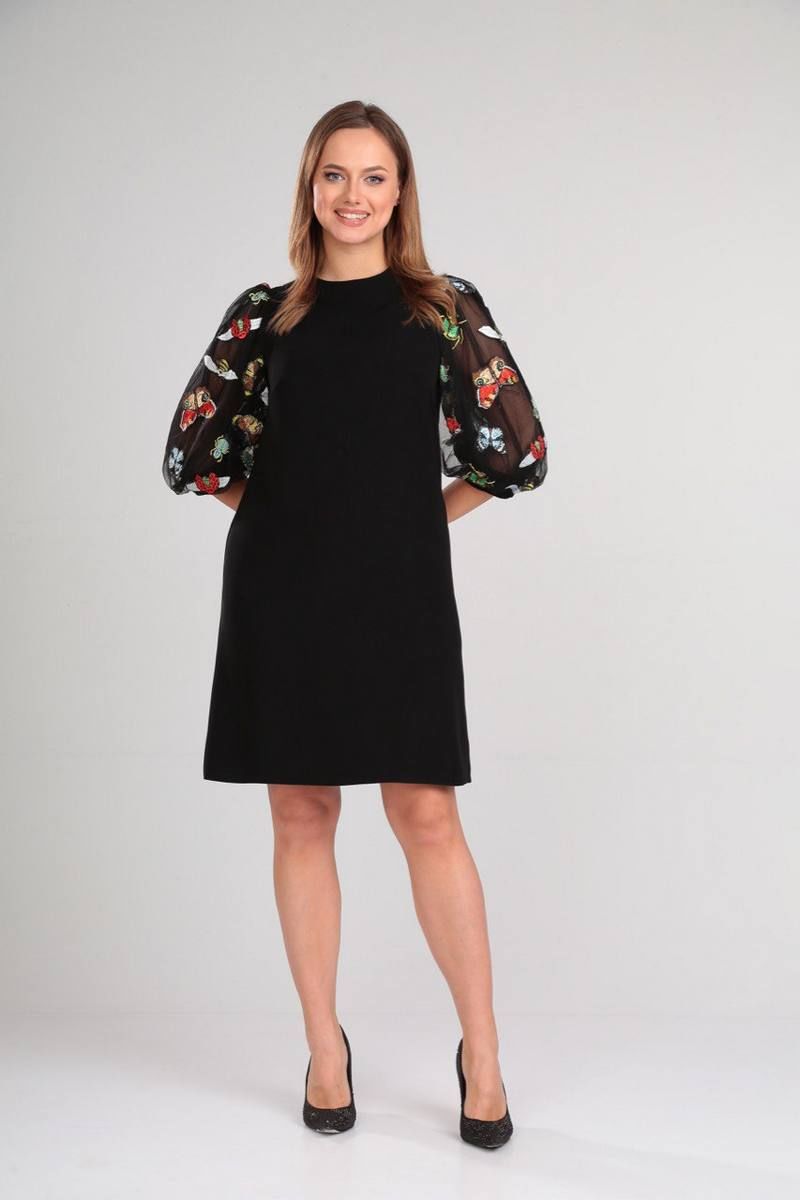 Платье А-силуэта, полуприлегающее, без подкладки. Воротник стойка. Рукав втачной, пышный со сборкой по окату и по низу. Подкладка сетка мягко держит форму рукава. По низу рукава манжет на пуговице. Длинная потайная молния в среднем шве спинки. длина платья (44, 46 размере) -90см, (48-50 размере) -95см, длина рукава -49см