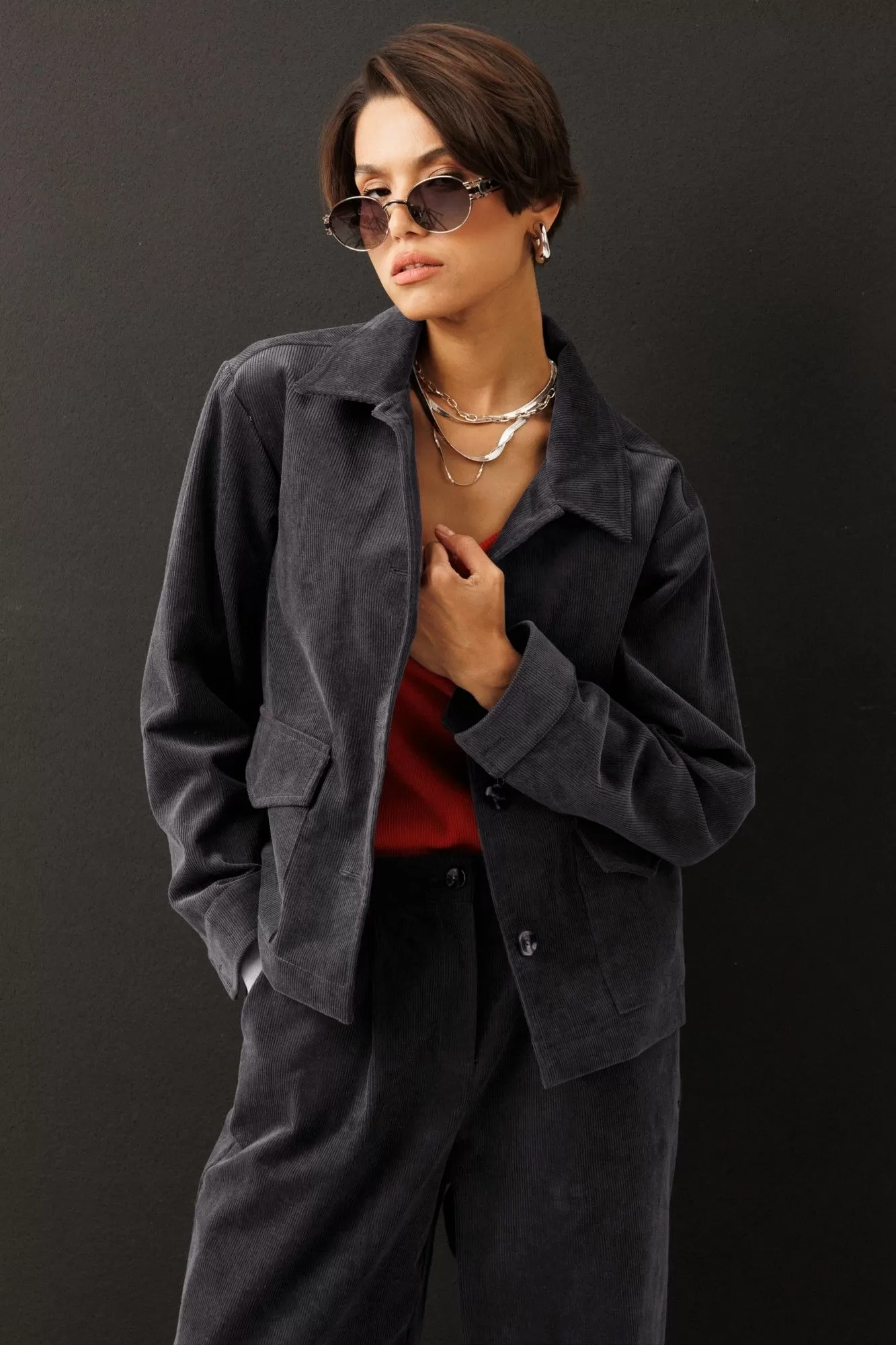 Современный жакет из хлопкового вельвета от GO составит беспроигрышную комбинацию с вашими платьями, юбками и брюками.