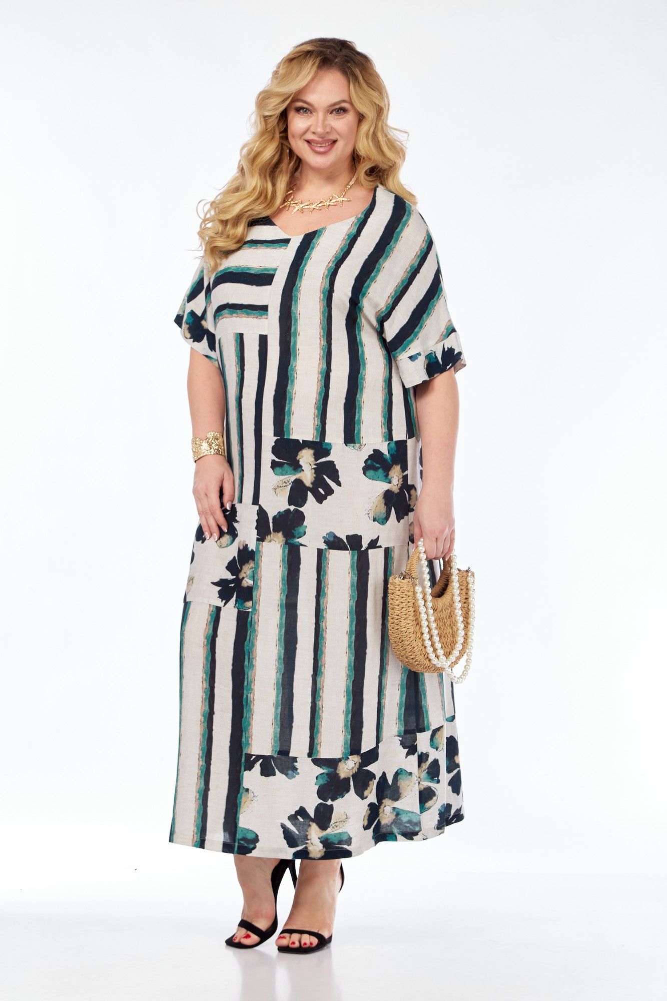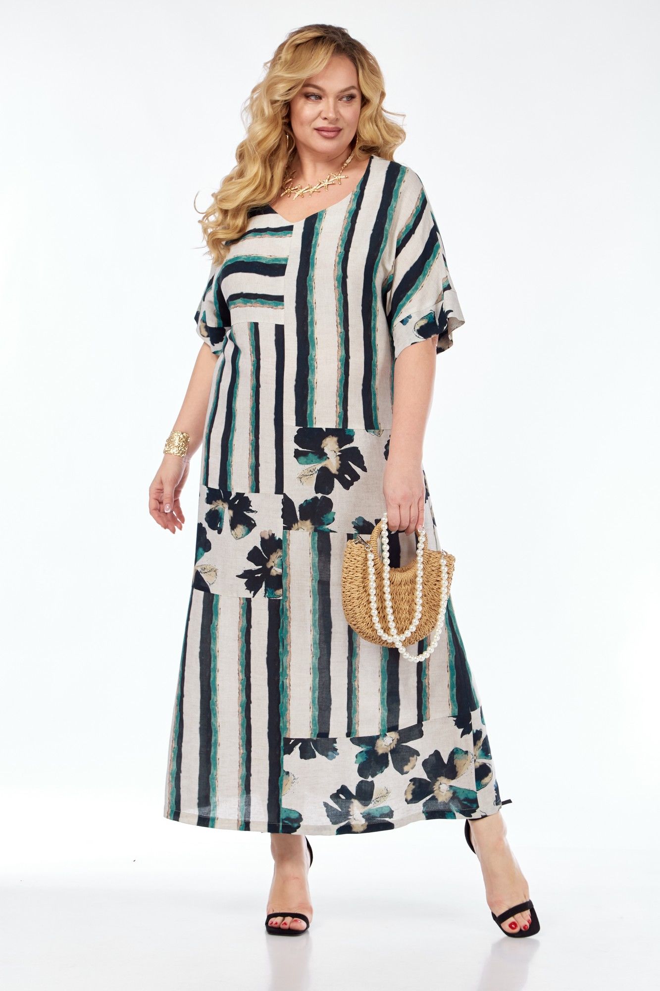 Эта модель будет прекрасным дополнением к Вашему гардеробу на теплую весну и жаркое лето! Принт ткани скроет нюансы фигуры и подчеркнет ее достоинства. Платье женское, прямого силуэта, длинное, со спущенным плечом. Перед ассиметричный, со средним швом и горизонтальными членениями, с V-образным вырезом. Спинка со средним швом и горизонтальными членениями, без молнии. Низ рукава обработан манжетами.
