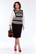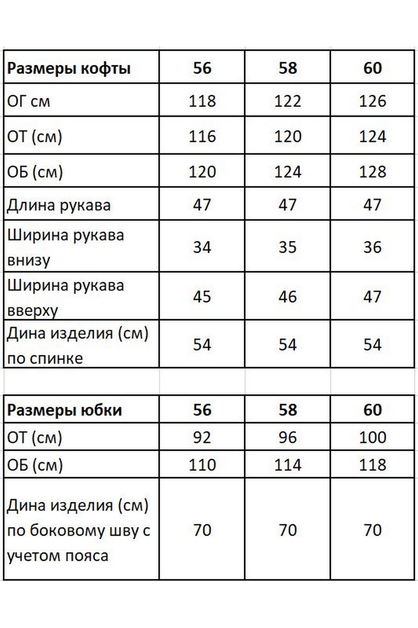 Комплект женский 2-х предметный, состоящий из кофты и юбки. Кофта : состоит из двух видов ткани , трикотажной и рубашечной. Кофта со спущенным плечом, перед без нагрудных вытачек, по переду расположены подрезы и вставлены отделочные детали. На отделочных деталях расположены по три отделочных пуговицы. Спинка без среднего шва, по спинке расположены подрезы и вставлены отделочные детали. Рукава 3\4 с притачными манжетами. Горловина обработана бейкой. Юбка: полуприлегающего силуэта, зауженная к низу, на поясе с резинкой.