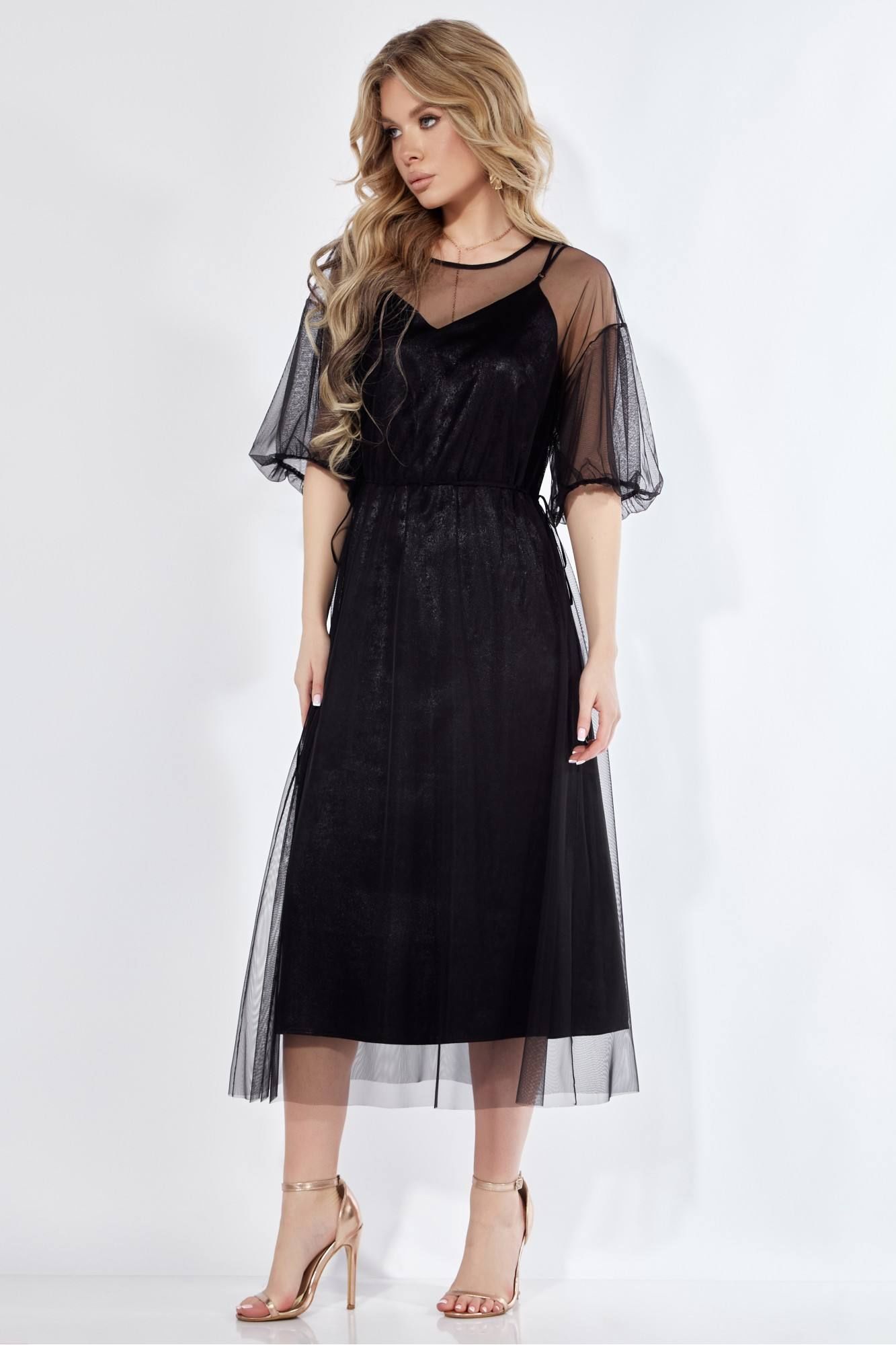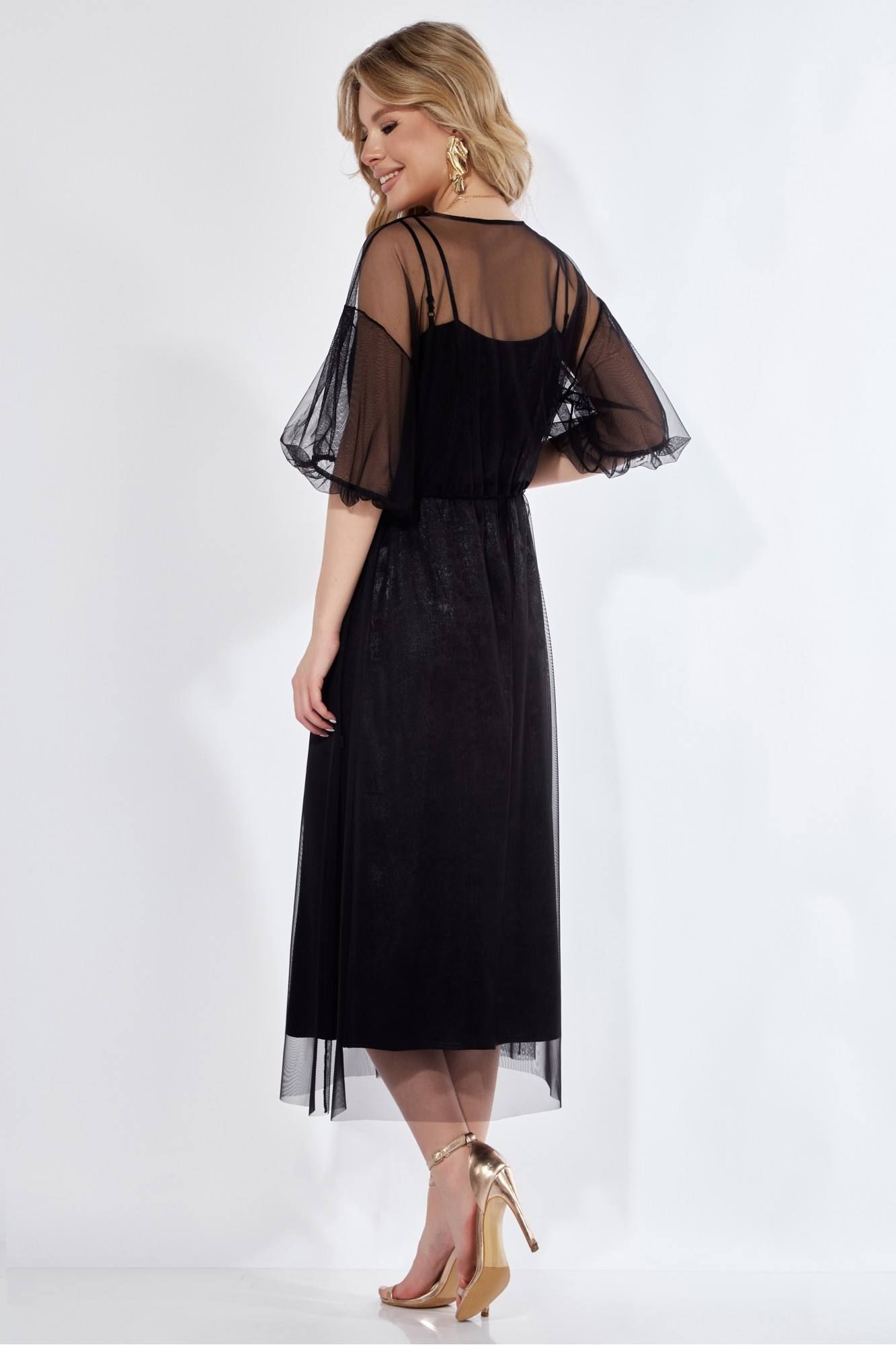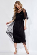 Комплект женский (платье и комбинация). Комплект женский нарядный, состоящий из платья и комбинации. Верхнее платье свободного силуэта, со спущенной линией плеча, с втачными рукавами, длиной до середины икр, отрезное на уровне линии талии, в шов вставлена планка, через которую протянут декоративный шнур. Рукава втачные одношовные двухслойные, по нижнему срезу верхней части рукава обработана сборка. Комбинация полуприлегающего силуэта, длиной до коленей, на бретелях. Деталь переда – с нагрудными вытачками. Декор может отличаться от представленного на фотографии. Длина изделия Платье: длина спинки – 124см. Комбинация: длина спинки – 97,5см. Длина рукава Платье: длина рукава – 25см, ширина рукава – 20,6см.
