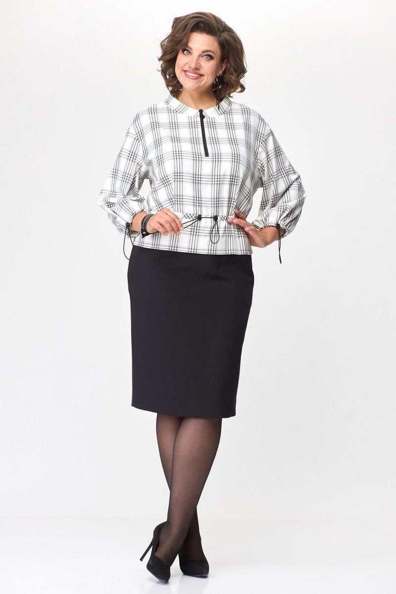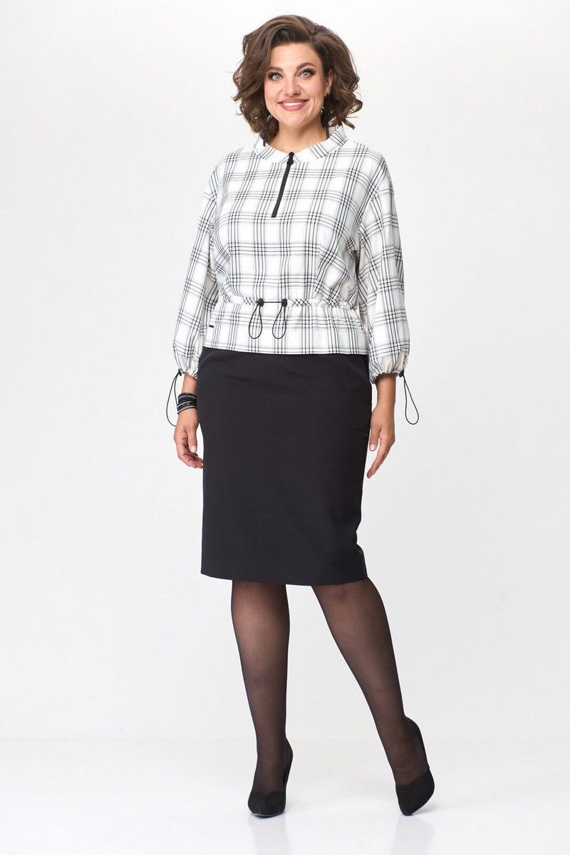 Платье женское полуприлегающего силуэта ( имитация блузка-юбка). Горловина округлая со стойкой и декоративной функциональной молнией. Рукав спущенный. По талии и низу рукава- сборка, которая регулируется кулисой. Сзади - разрез.