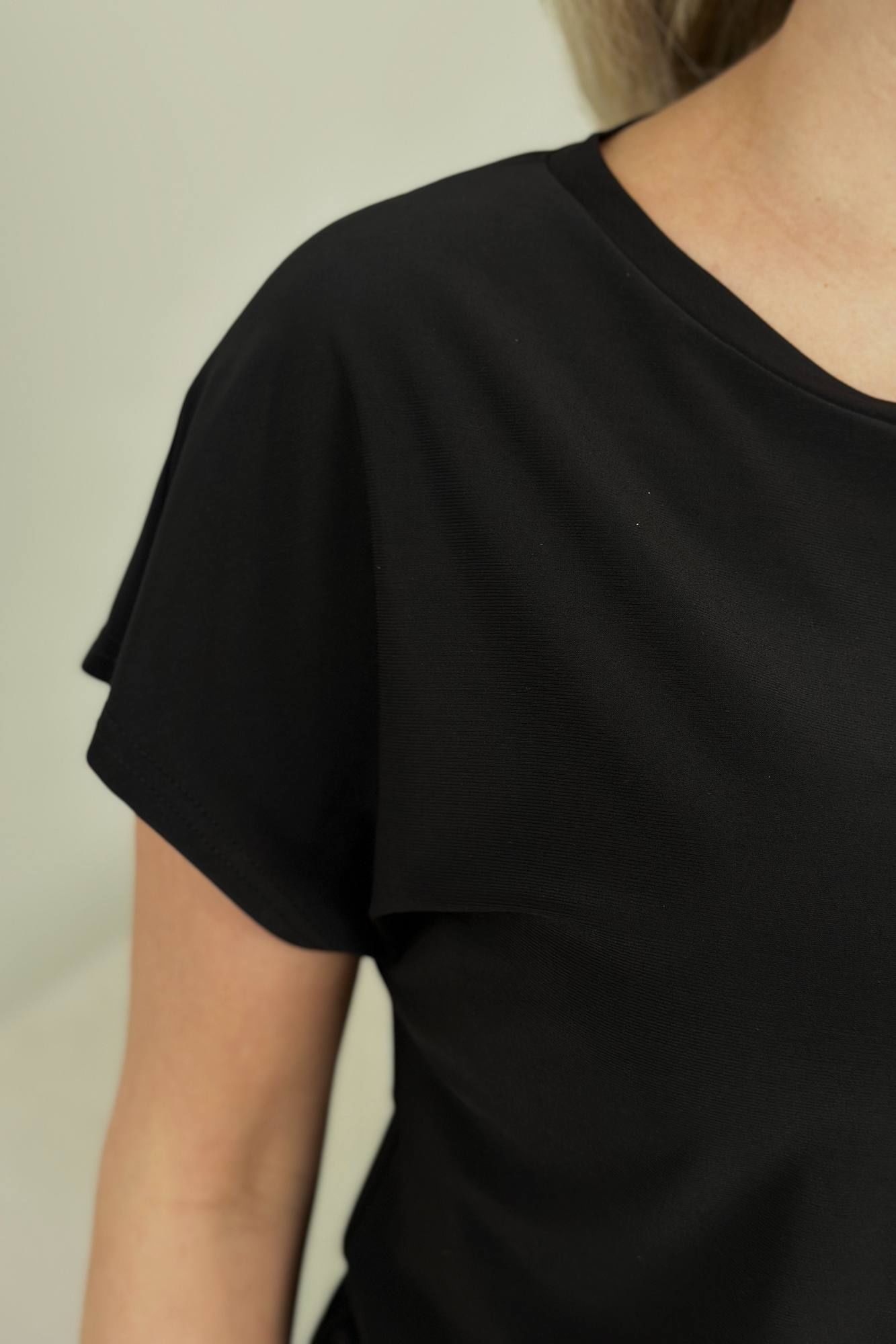Базовая классическая повседневная блузка топ станет любимым предметом вашего гардероба - ее легко сочетать с брюками или юбкой. Модель свободная, полуприлегающего силуэта. Универсальная стильная модная блузка, в которой Вы будете чувствовать себя комфортно, как в офисе, так и на прогулке, также с помощью аксессуаров легко создадите праздничный нарядный вечерний образ. Благодаря своему составу, трикотажная ткань не мнется, что очень важно для опрятного вида. Модель с цельно кроенным объемным коротким рукавом отлично выглядит на женщине с пышной грудью, спинка топа цельнокройная.