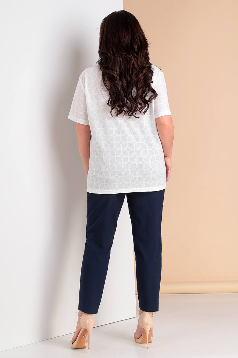 Комплект женский 2-х предметный: брюки и блузон. Пояс брюк на резинке. Длина брюк по боковому шву: 102 см. Длина блузона по спинке: 70 см. Длина блузона по переду: 52 см. Длина рукава: 23см.