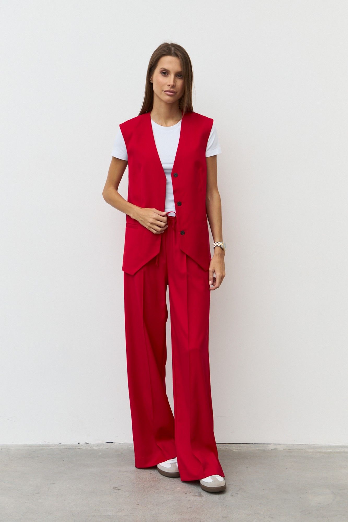 жилет: ПЭ - 64%; вискоза - 33%; эластан - 3%. брюки: ПЭ - 64%; вискоза - 33%; эластан - 3%.