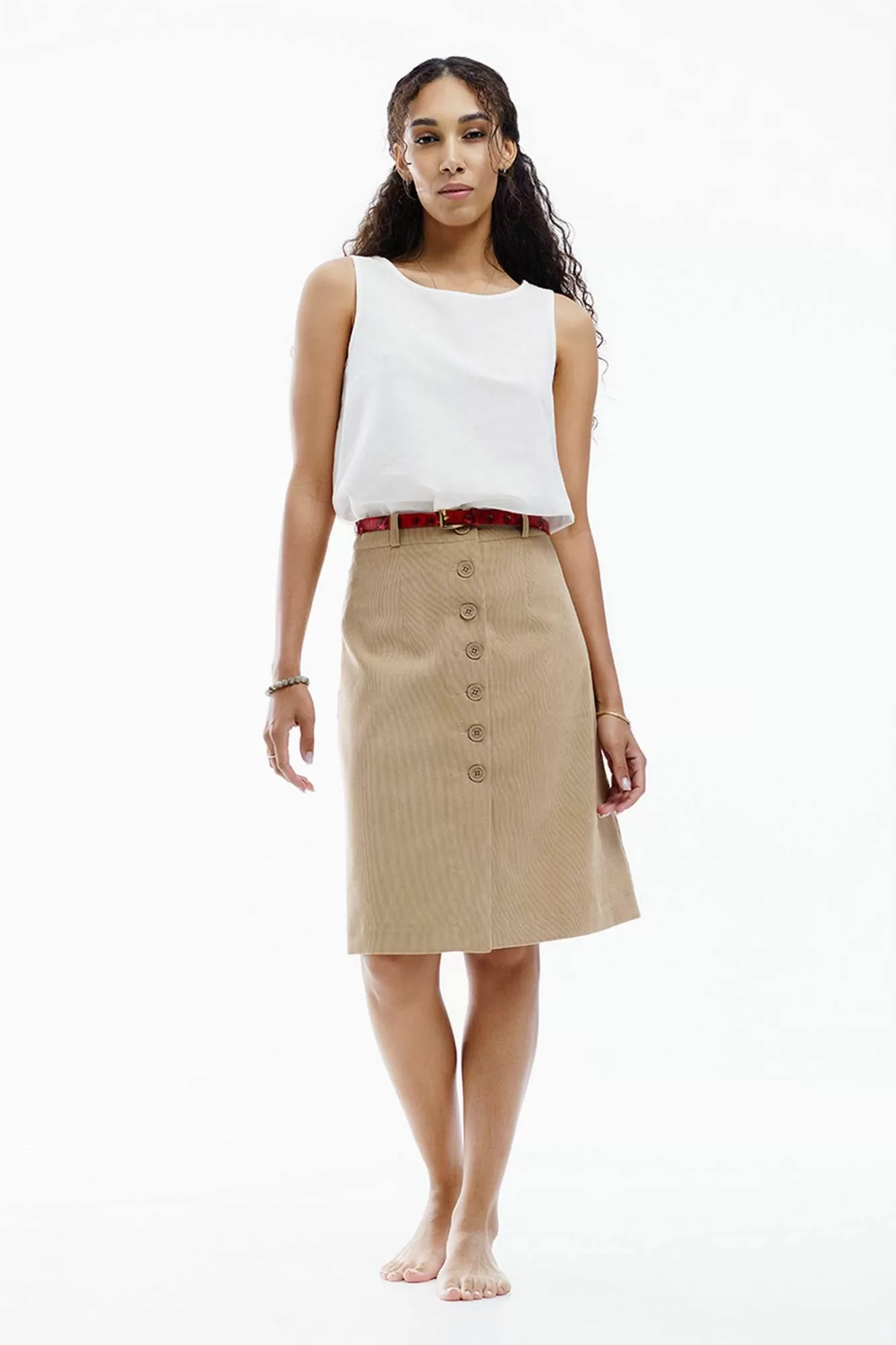 Женская вельветовая юбка-трапеция от бренда Manika Belle станет отличной базовой вещью вашего гардероба – это идеальный выбор для девушек и женщин, ищущих комфорт и стиль. Она выполнена из вельвета оливкового цвета в мелкий рубчик и прекрасно садится по фигуре.