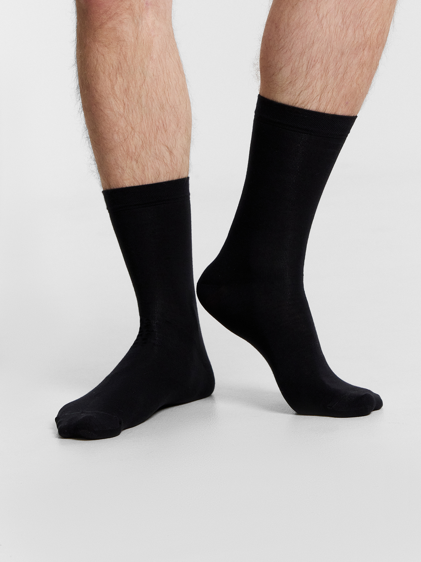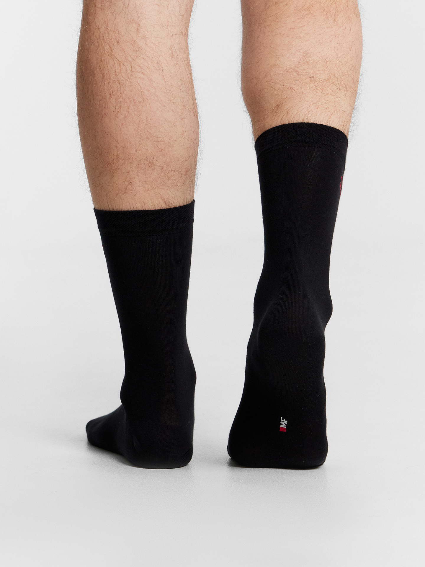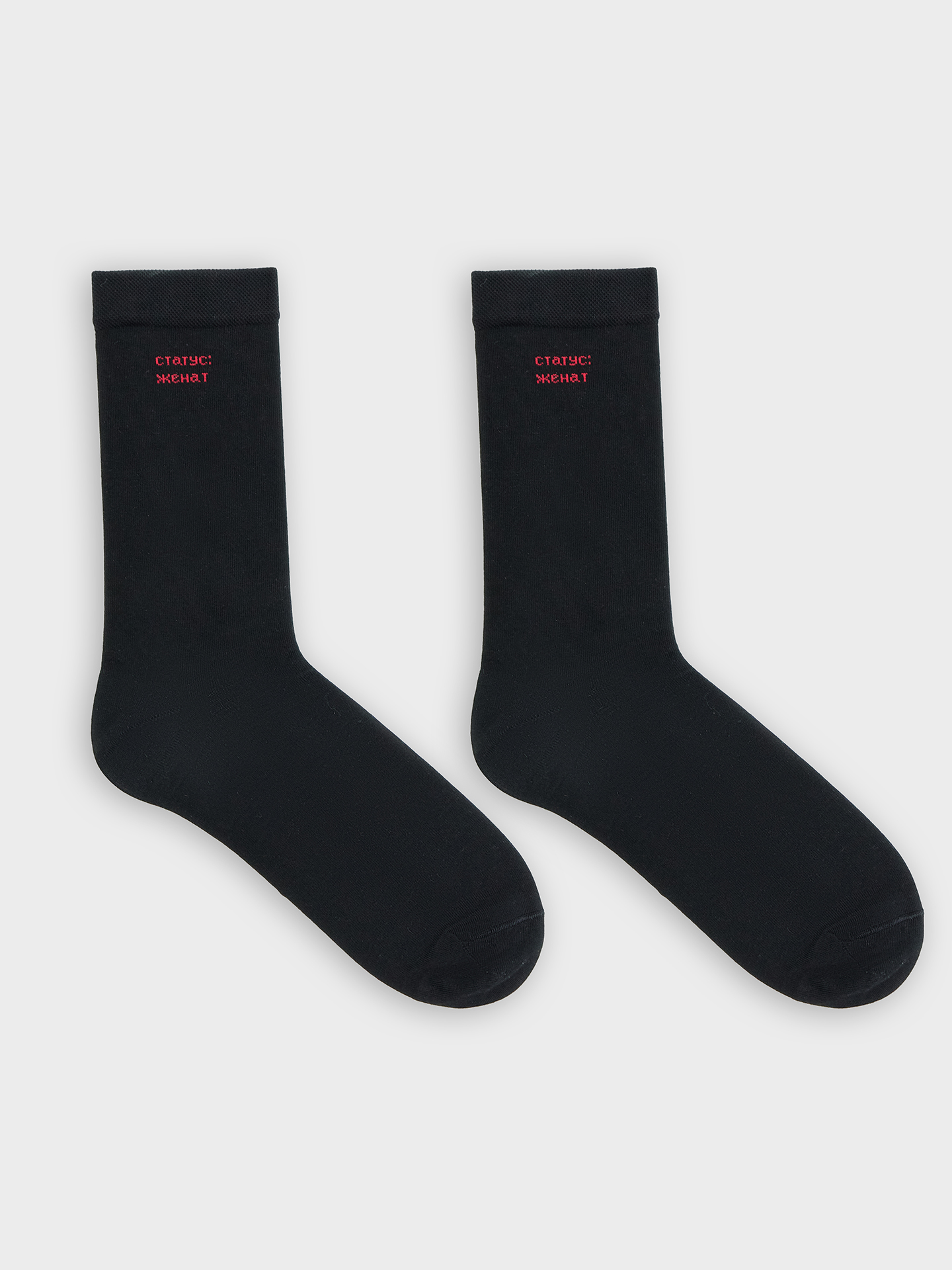 рис.3034 Мужской носок классический, высокий, с рисунком в виде надписи "СТАТУС ЖЕНАТ".