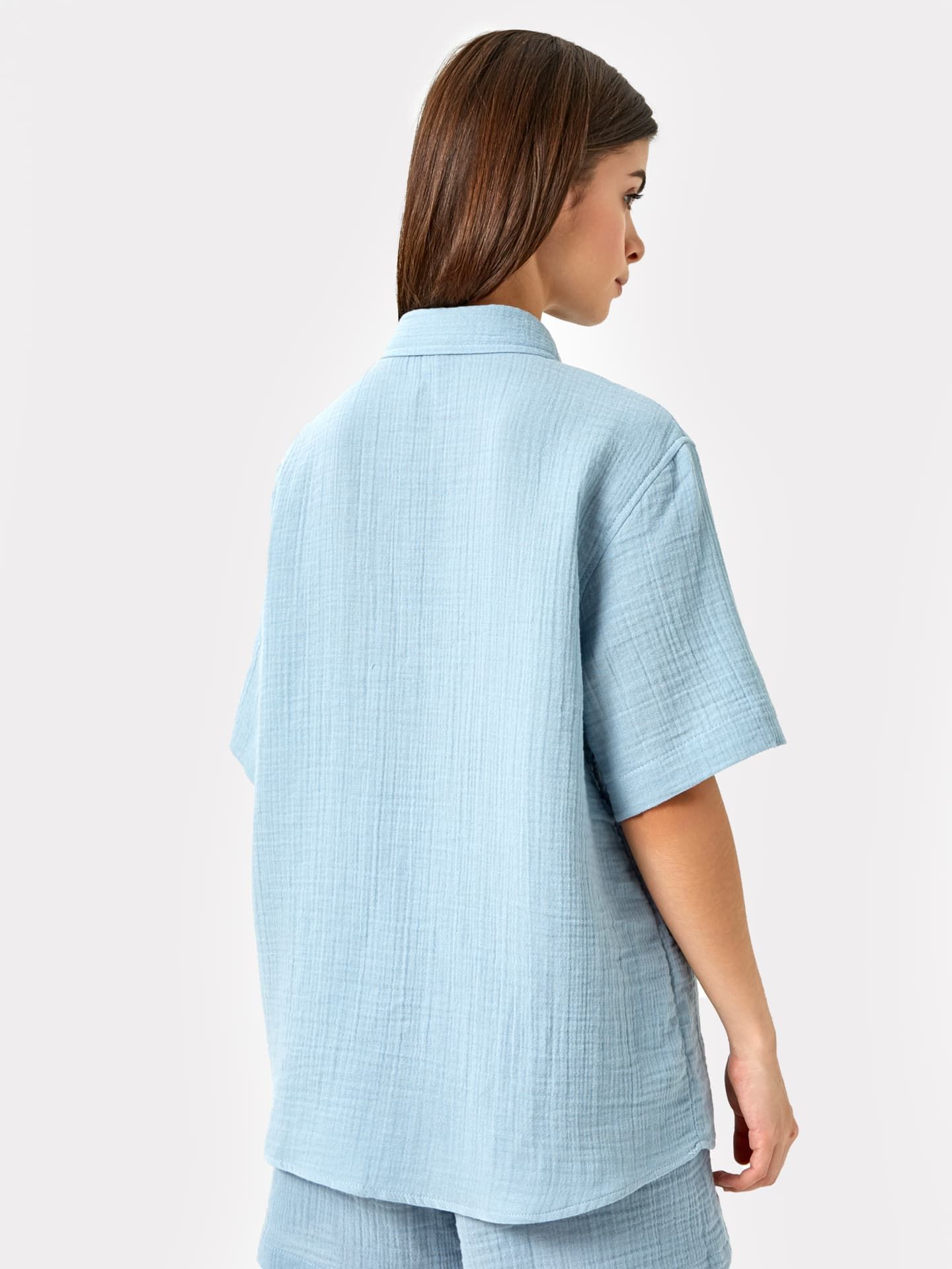 Блузка из текстильного хлопкового полотна. Блуза имеет прямой свободный силуэт, длину до линии бедер и фигурный низ. Линия плеча спущена – эта особенность кроя добавляет модели удобства. Вырез горловины – круглый, с рубашечным воротником. Рукава длиной до локтя. Застегивается на пуговицы. Спереди есть функциональный накладной карман. Рекомендуем!