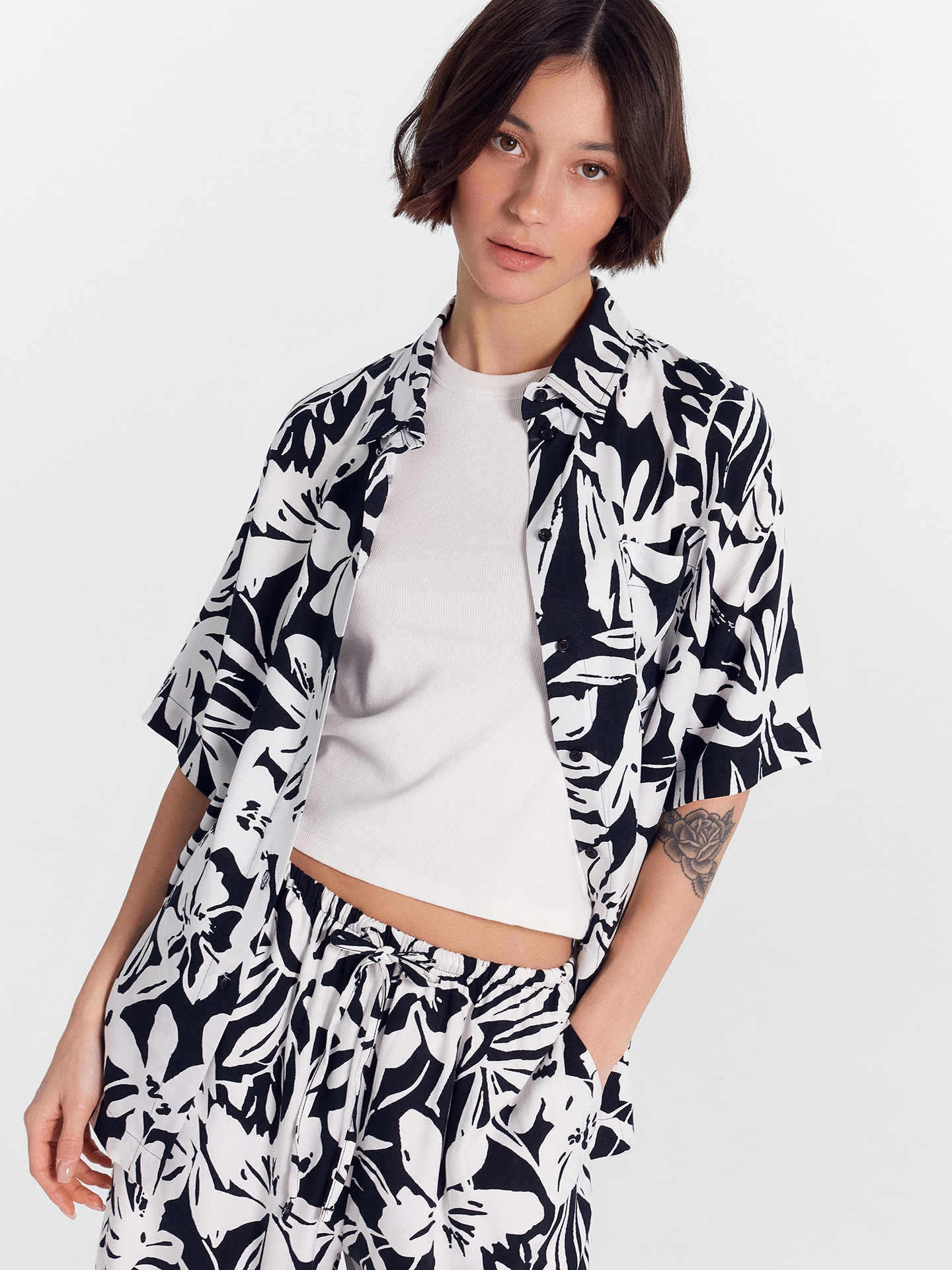 Женская блузка для ваших расслабленных образов. Модель свободного кроя выполнена из вискозы - натурального волокна, известного своей мягкостью и отличными дышащими свойствами. Материал также обладает высокой прочностью и устойчивостью к износу, что делает изделия долговечными и удобными в носке. Дизайн с центральной застежкой на пуговицы, рубашечным воротником и накладным карманом слева на груди придает модели стильный и аккуратный вид. А короткие рукава со спущенной линией плеча добавляют непринужденности и свободы движений. Эта блузка станет отличным дополнением к вашему гардеробу, позволяя создавать стильные и удобные образы на каждый день. Рекомендуем!