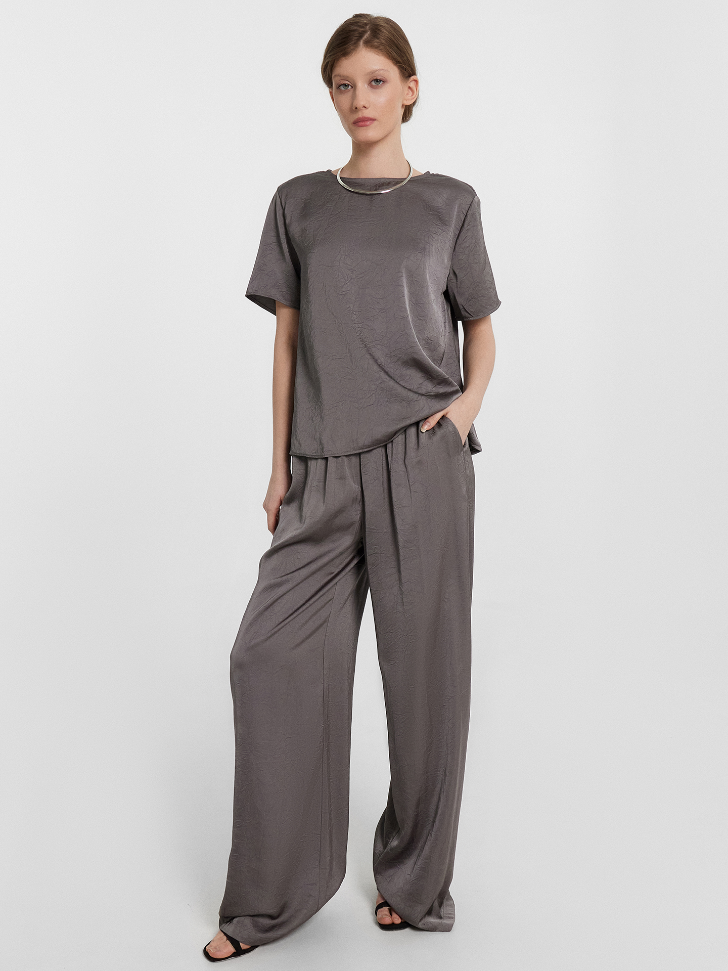 Женская блузка прямого силуэта станет стильным дополнением вашего гардероба. Круглая горловина придает ей классический и элегантный вид. Застежка на пуговицу на спинке добавляет удобство и изысканность. Короткие рукава делают эту блузку идеальной для теплой погоды. Изготовленная из смесовой вискозы, блузка обладает рядом преимуществ. Материал сочетает в себе мягкость и легкость натуральной вискозы с прочностью и износостойкостью синтетических волокон. Это позволяет изделию сохранять форму, не теряя при этом своей приятной текстуры и дышащих свойств. Такая блузка станет отличным выбором как для повседневного ношения, так и для создания элегантных образов на особые случаи.