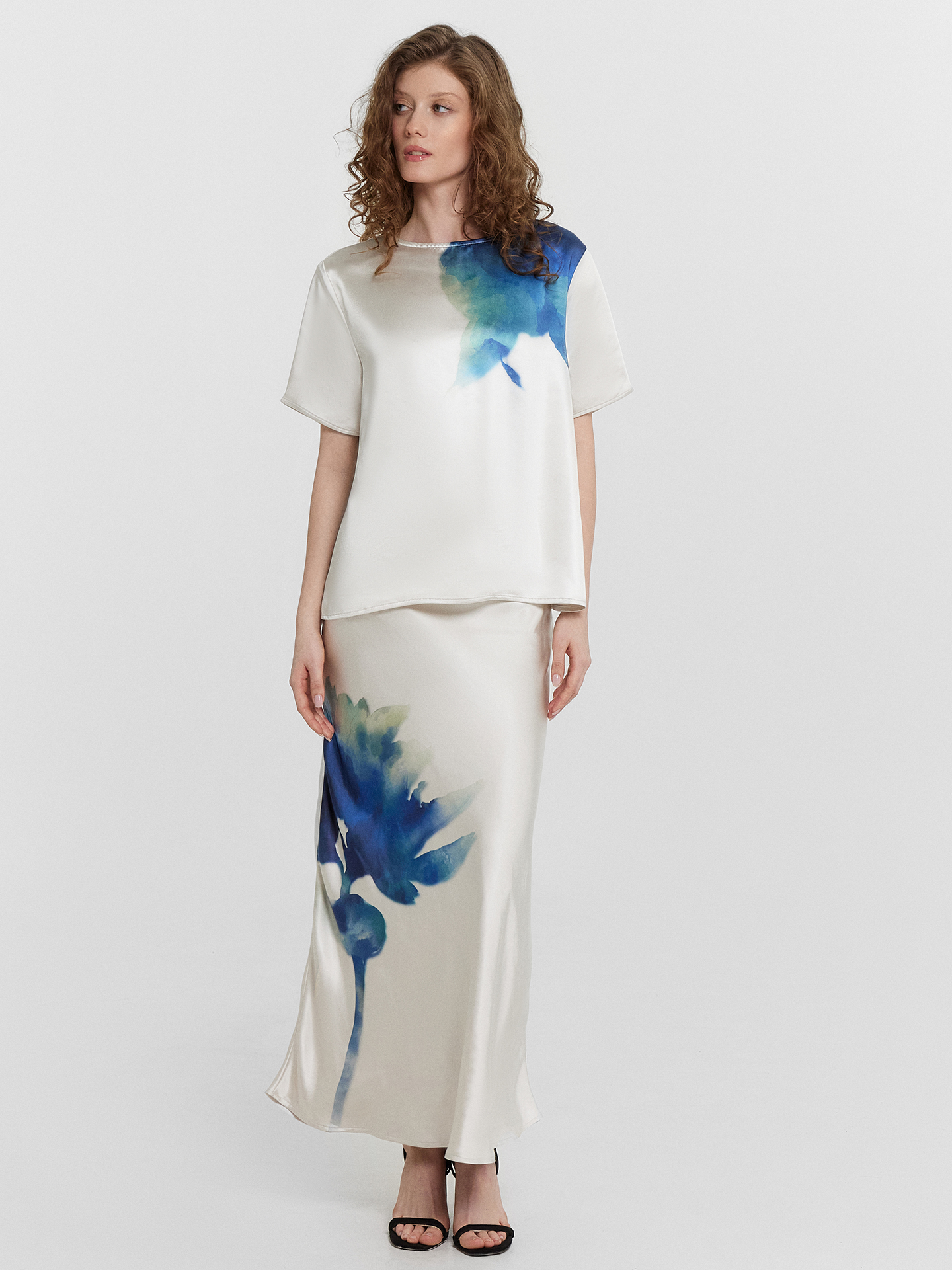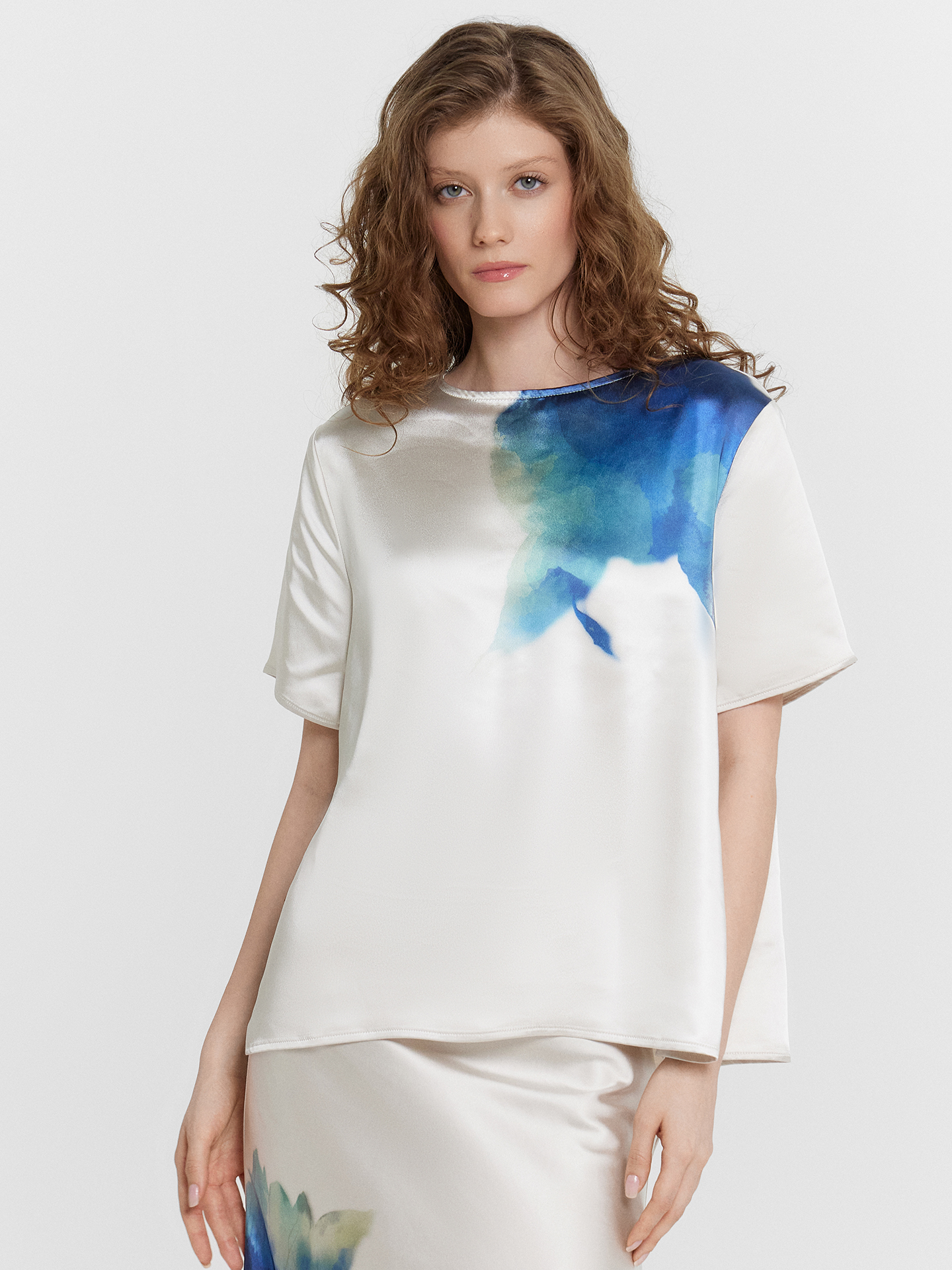 Эта женская блузка прямого силуэта — воплощение элегантности и изысканности, благодаря высококачественному материалу, напоминающему шелк своей гладкой текстурой и мягким блеском. Такой материал не только визуально привлекательный, но и комфортный в носке, обеспечивая легкость и стиль одновременно. Модель выполнена с круглой горловиной, что подчеркивает ее лаконичный и аккуратный дизайн. Застежка на спинке с эластичной тесьмой и пуговицей добавляет удобство и изящный акцент. Короткие рукава придают изделию универсальность, подходя как для теплого сезона, так и для сочетания с верхней одеждой. Нижние срезы рукавов обработаны швом вподгибку, что обеспечивает долговечность и аккуратность. Эта блузка станет прекрасным дополнением вашего гардероба, подойдя как для создания повседневных образов, так и для более официальных случаев. Рекомендуем!