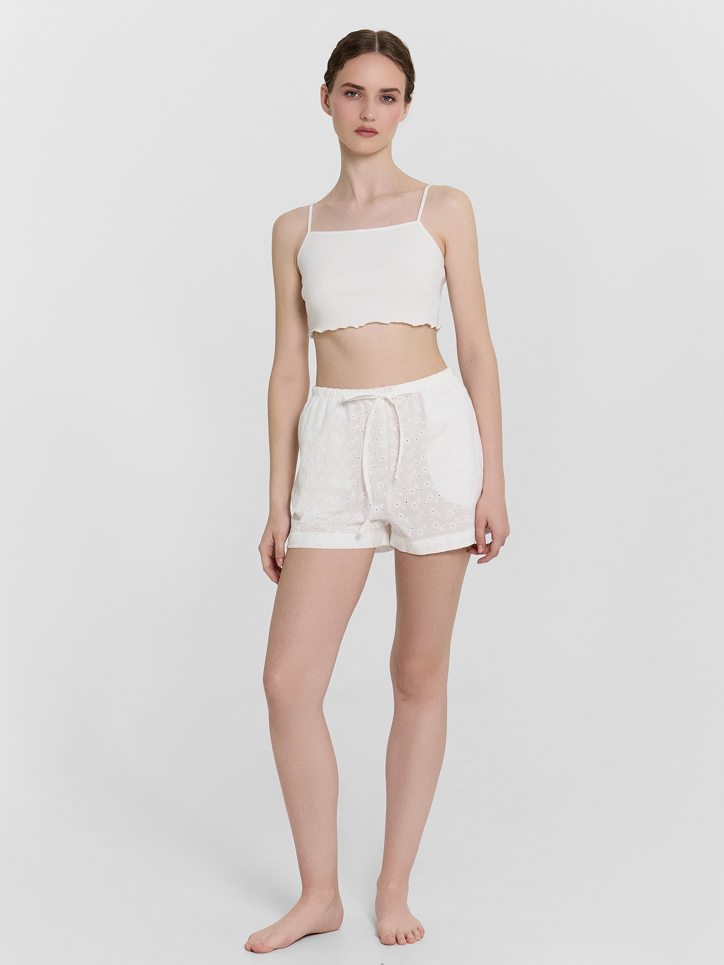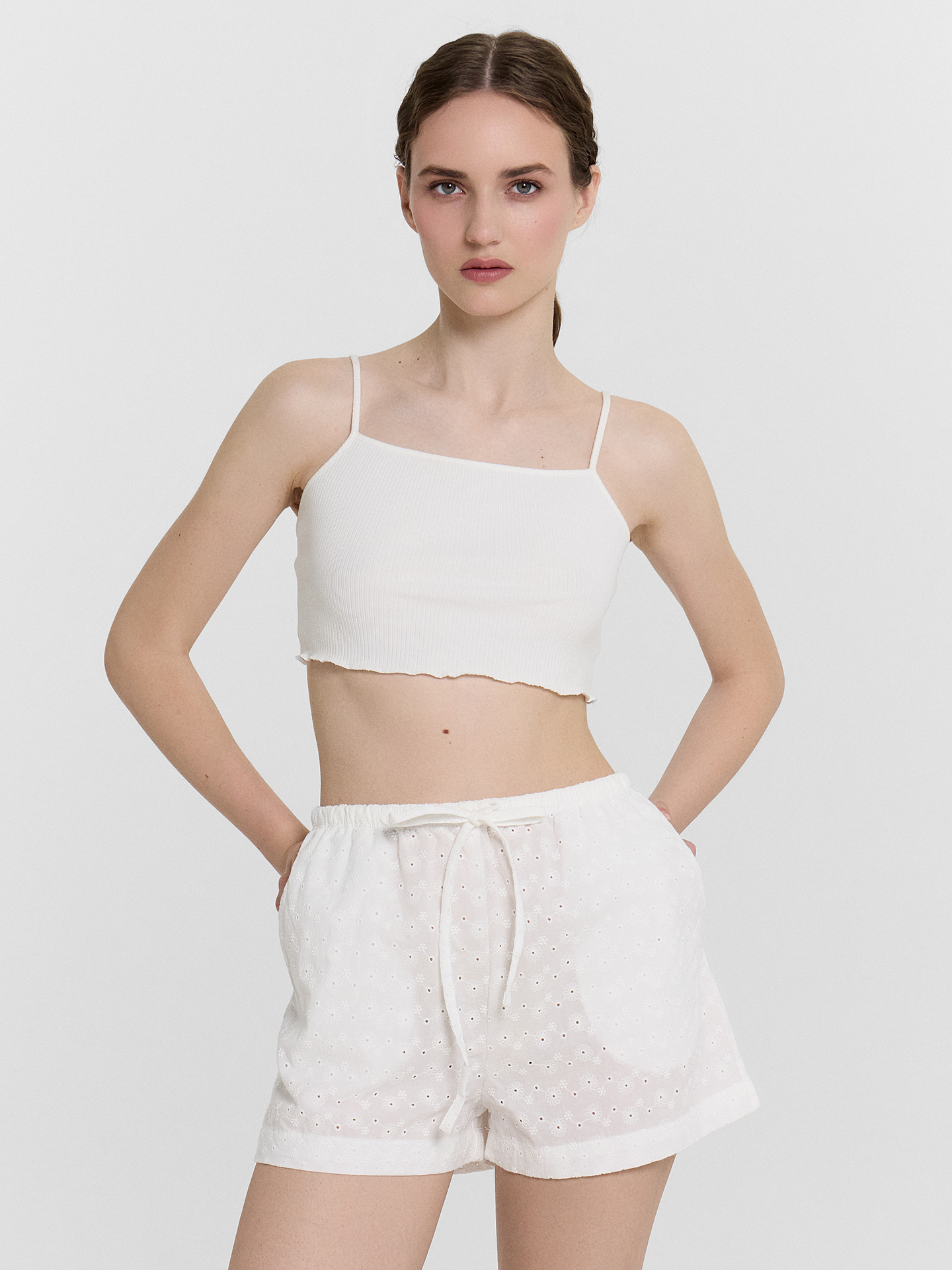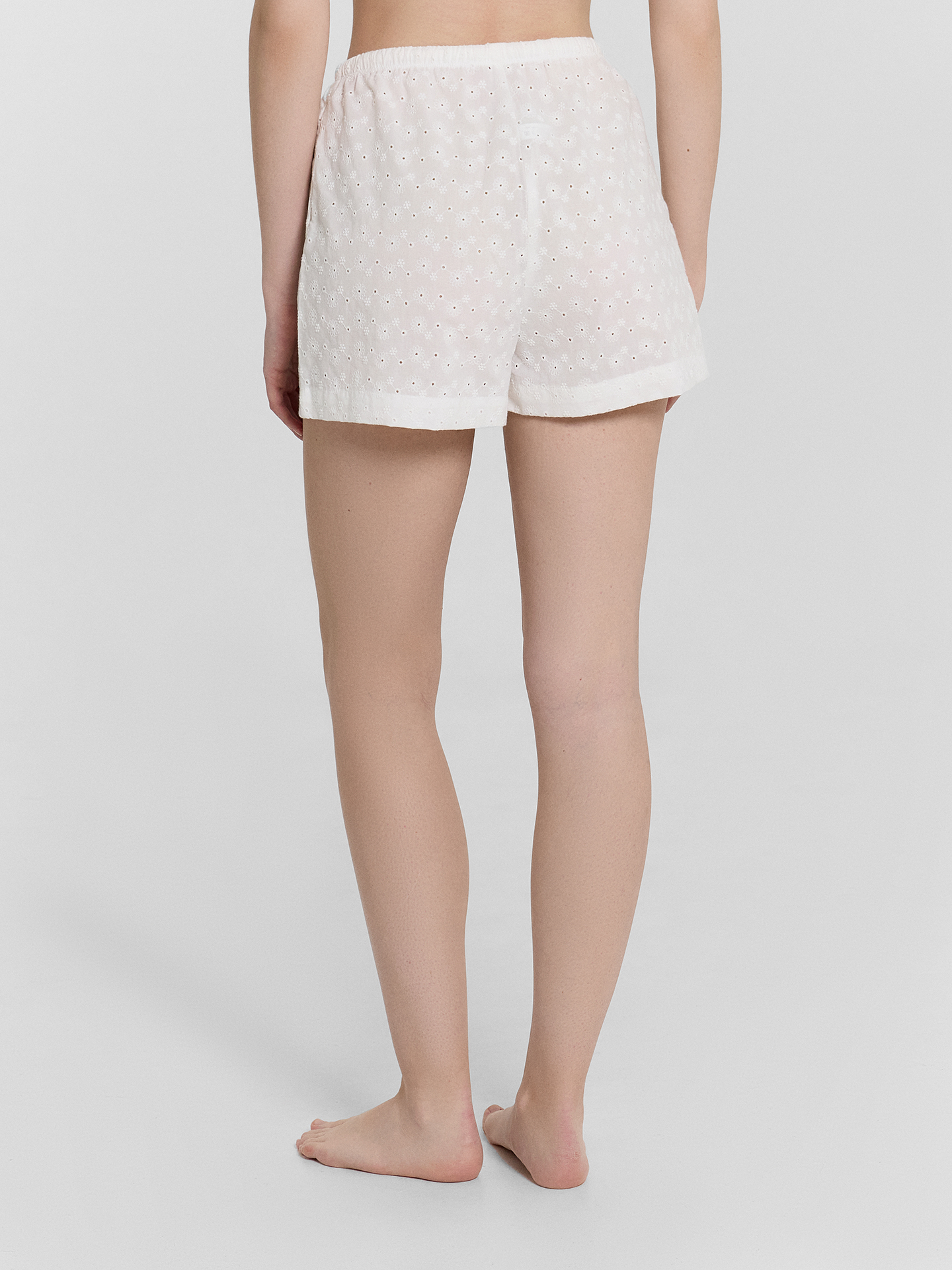 Шорты свободного силуэта, высокая посадка. Верх застрочен в подгибку с протянутым шнуром из основного полотна и резиной 20RV. В боковых швах карманы. Низ шорт обработан вподгибку. _x000D_ _x000D_ _x000D_ _x000D_ _x000D_