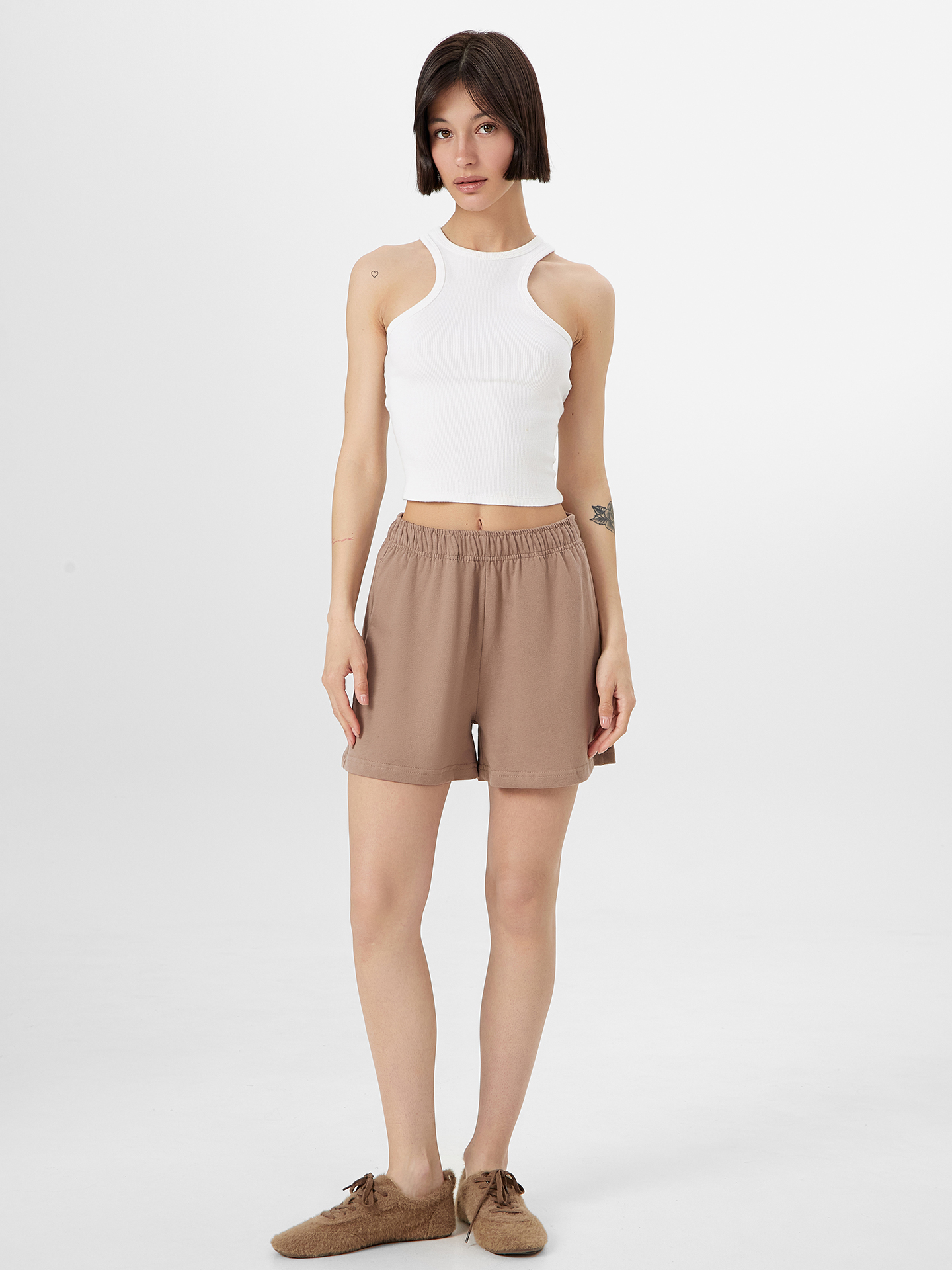 Женские свободные шорты, которые станут идеальным выбором для вашего гардероба. Высокая посадка обеспечивает комфорт и стильный вид, а пояс с эластичной тесьмой внутри гарантирует надежную фиксацию и удобную посадку. В боковых швах предусмотрены карманы, добавляющие практичности и функциональности. Шорты выполнены из хлопковой кулирки - натурального материала, который отличается высокой воздухопроницаемостью и мягкостью. Дополните свой гардероб этими стильными и удобными шортами, которые подарят комфорт и легкость в любой ситуации.