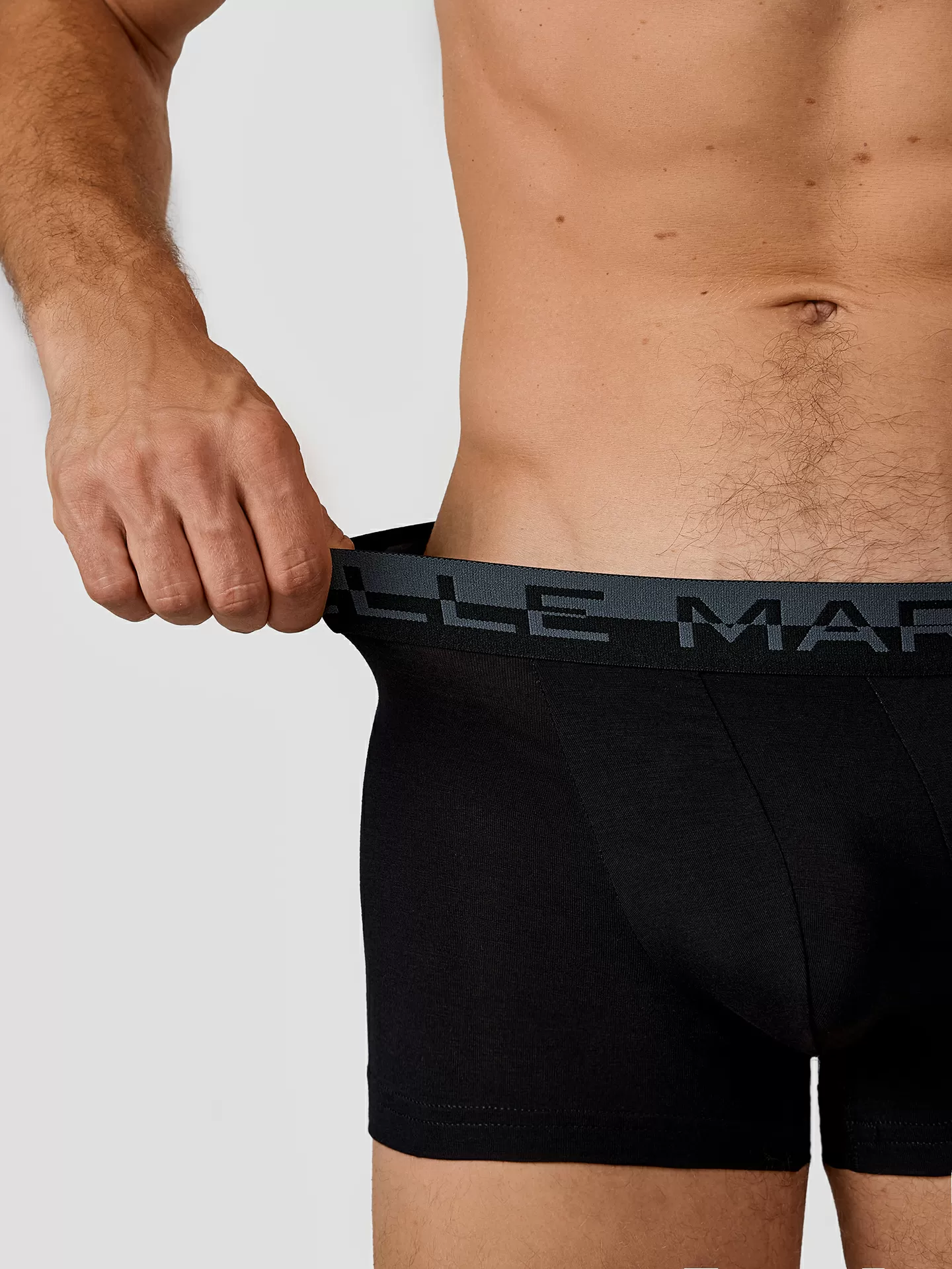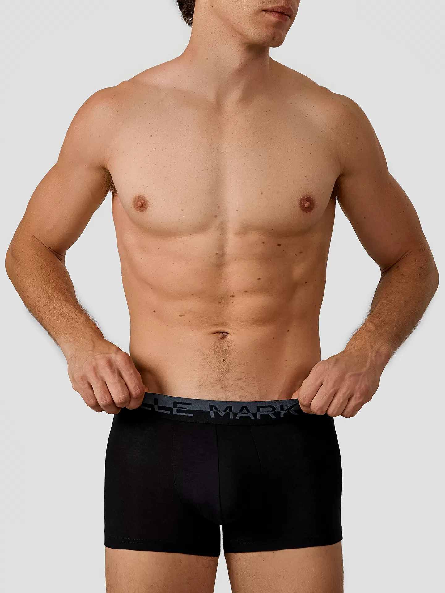 Мужские трусы-боксеры с широкой резинкой, украшенной жаккардовым логотипом бренда, — это стильный и практичный выбор для тех, кто ценит комфорт и качество. Продуманная конструкция модели обеспечивает оптимальную поддержку, идеальную посадку по фигуре и комфорт в течение всего дня, помогая сохранить свободу движений и удобство. Изделие выполнено из нежного, ультралёгкого и тонкого бамбукового материала с добавлением эластичных волокон. Бамбуковый материал славится своими уникальными свойствами: он гипоаллергенный, мягкий на ощупь и обладает отличной воздухопроницаемостью, что предотвращает раздражения и создает ощущение свежести. А эластичные волокна добавляют изделию прочность, гибкость и способность сохранять форму после длительного использования. Эти трусы-боксеры сочетают стиль, функциональность и инновационные материалы, предлагая современный подход к выбору нижнего белья. _x000D_