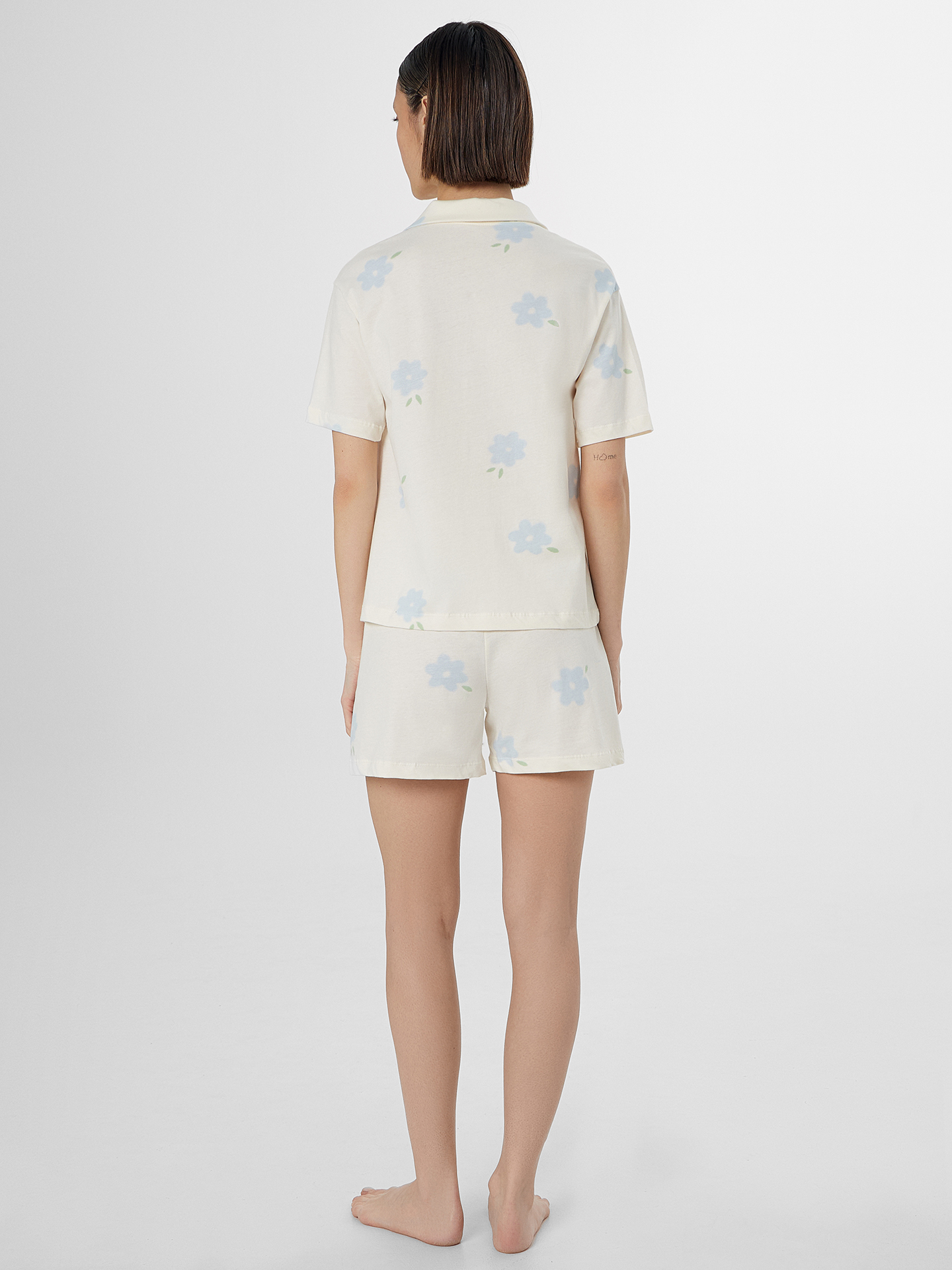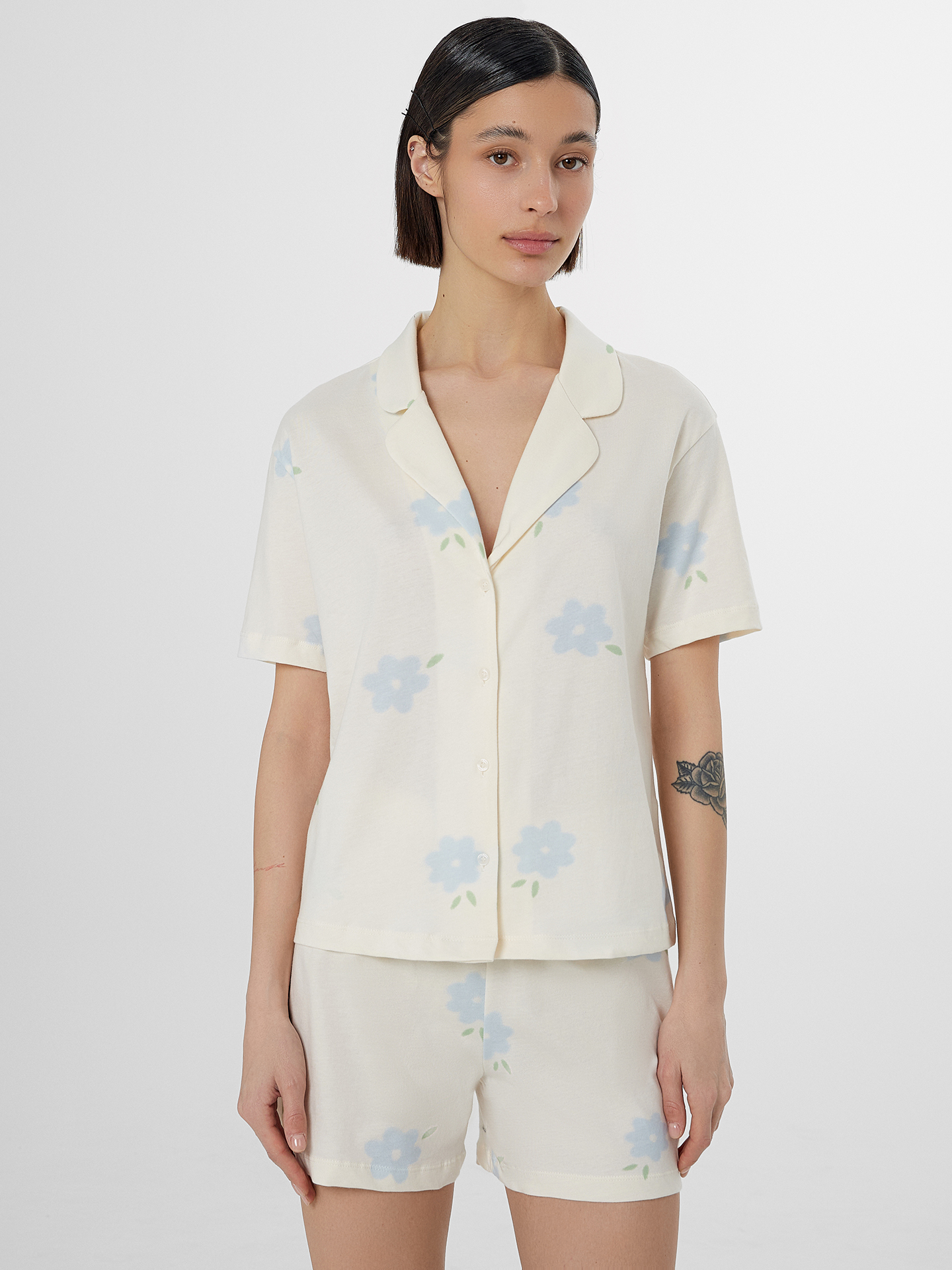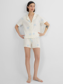 Женский домашний комплект из хлопка — это идеальное сочетание уюта, стиля и практичности для повседневного отдыха. Модель включает свободную рубашку с отложным воротником и короткими рукавами, выполненными с аккуратной обработкой швом вподгибку. Спущенная линия плеча придает образу расслабленность, а центральная застежка на пуговицы с петлями добавляет классический акцент и удобство в использовании. Низ рубашки застрочен швом в подгибку, что придает изделию аккуратный и завершенный вид. Свободные шорты с эластичной талией обеспечивают комфортную посадку. Комплект выполнен из натурального хлопка — мягкого, дышащего и гипоаллергенного материала, который идеально подходит для домашнего гардероба. Он приятен к телу, хорошо впитывает влагу и сохраняет форму после стирок. Отличный выбор для тех, кто ценит комфорт, лаконичный стиль и натуральные материалы.