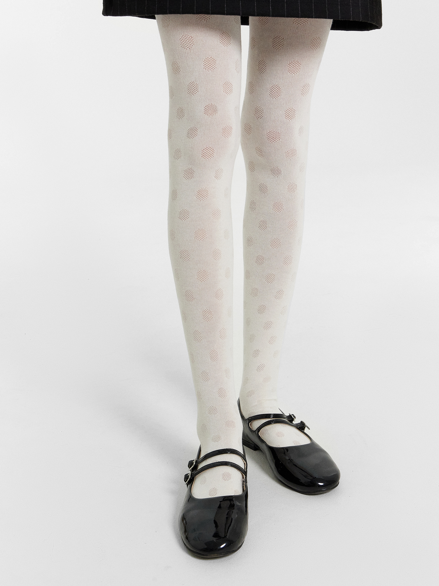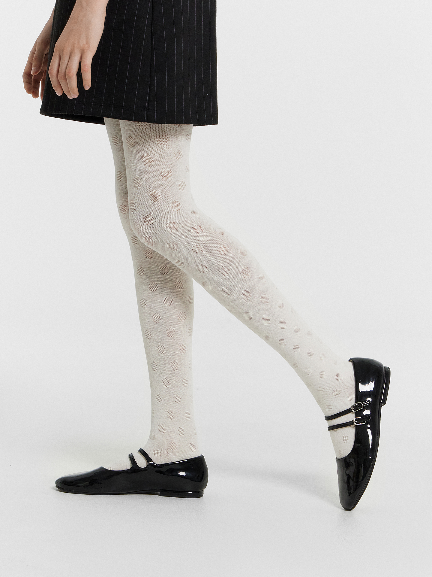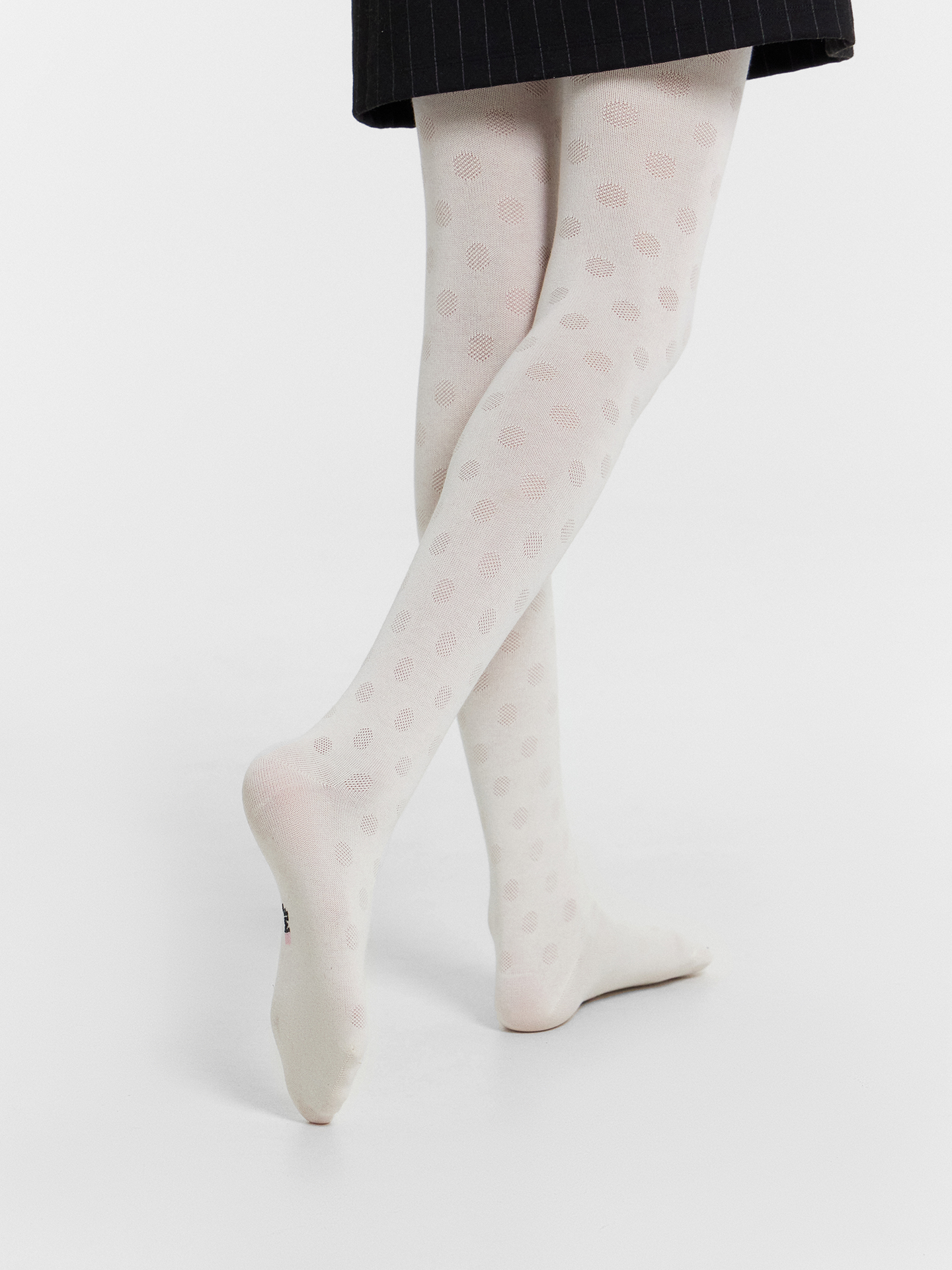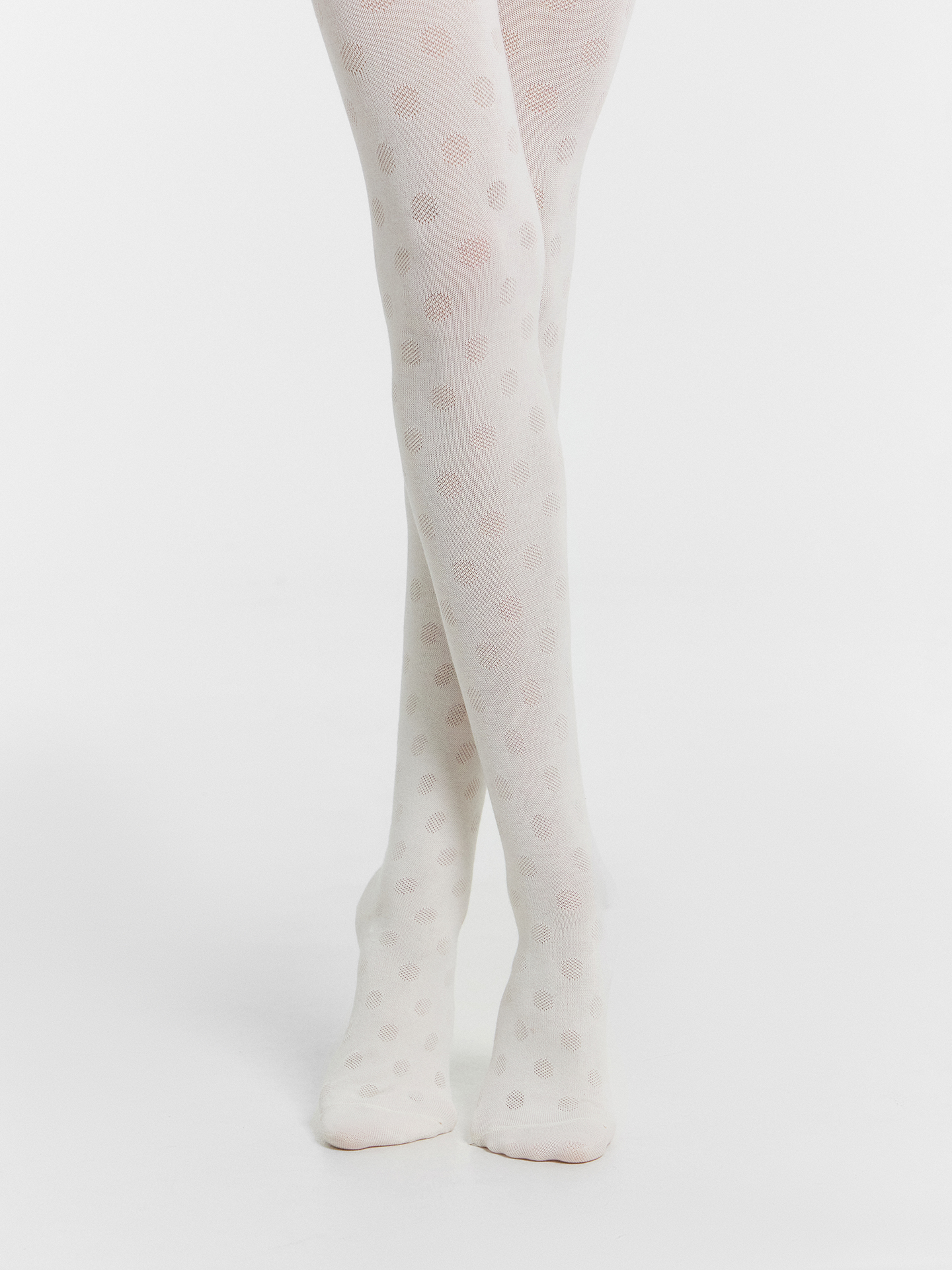 Рис.3219 Колготки гладкие с рисунком в виде крупного горошка, выполненым перекидным переплетением.