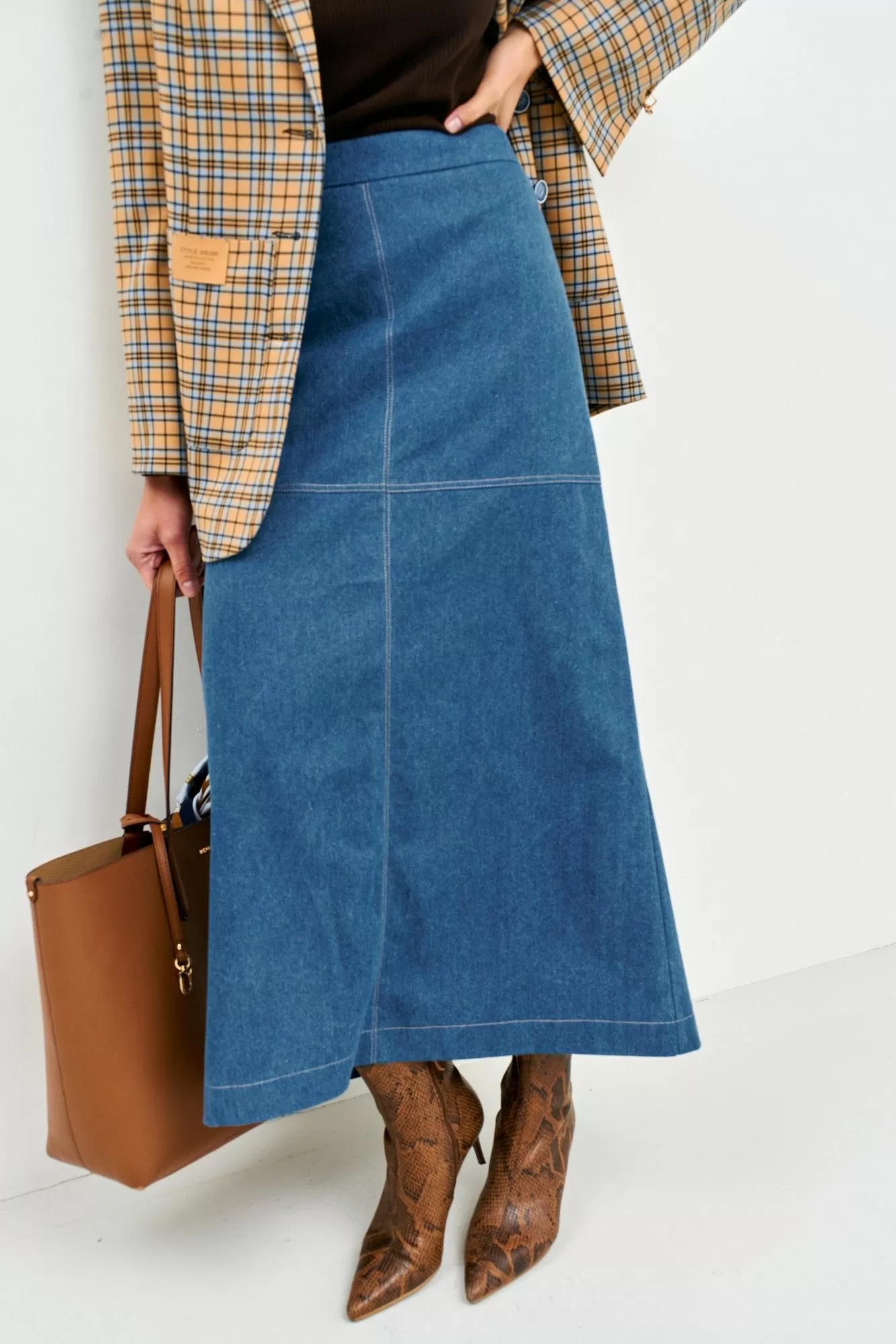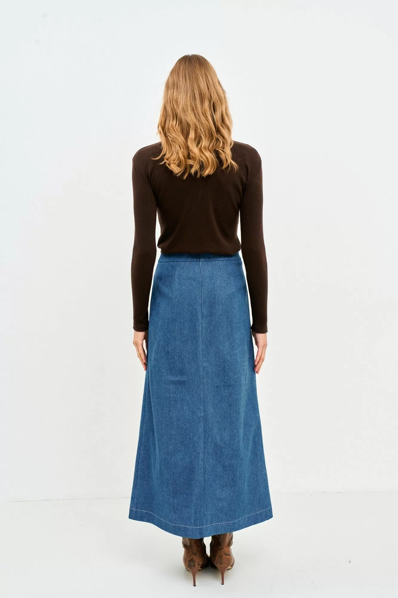 Юбка женская прямого силуэта, расширеннаф к низу, с притачным поясом и застежкой на тесьму "молния"в среднем шве заднего полотнища. Переднее полотнище разрезное из 4-х частей.