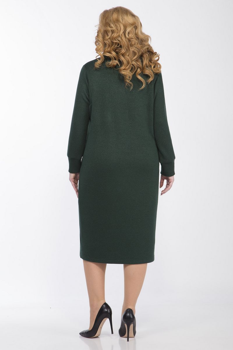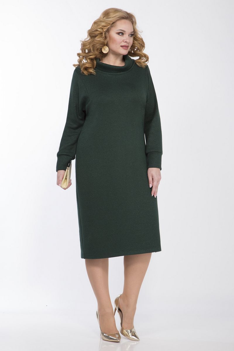Платье женское прямого силуэта,из трикотажной ткани "косичка". Воротник "хомут". Рукав втачной с фигурной проймой, на манжете, в левом рукаве пришита нашивка. Длина изделия по спинке 109 см, длина рукава 59 см, ширина руква на уровне глубины проймы 52-56 -19,5см. Реальные замеры платья 52 ог-110см, от-106см, об-112см, 54 ог-114см, от-110см, об-116см, 56 ог-118см, от-114см, об-120см. С платьем бордо на фото куртка 2.1445