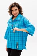 Женская блуза в стиле «бохо» прекрасно вольется в повседневную жизнь и станет одной из любимых базовых вещей в Вашем гардеробе. Блуза свободного кроя. Перед цельный с планкой-застежкой до груди. Спинка с плечевой кокеткой, переходящей в рукав, центральный шов спинки декорирован тесьмой, низ фигурный. Рукав 3/4 с притачной манжетой по низу, по бокам изделия разрезы. По низу переда широкая подгибка и украшение в виде тесьмы. Изделие хорошо сочетается как с брюками, так и с юбками, с классической и спортивной обувью. Длина изделия по спинке 74 (+/- 1 см). Длина рукава от горловины 55 (+/- 1 см). Изделие подойдет на рост 170 см.