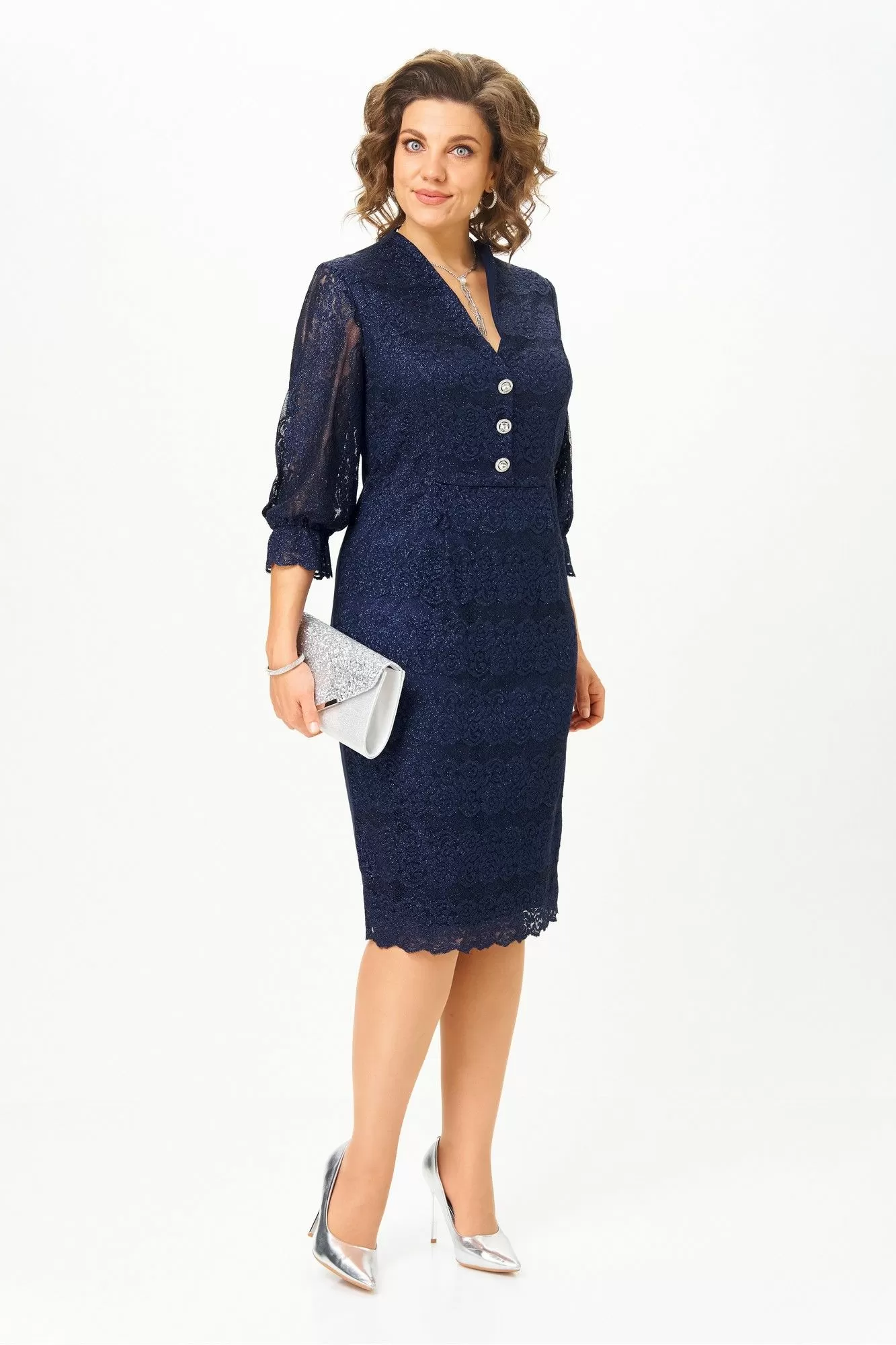 Нарядное женское платье полуприлегающего силуэта, выполнено из гипюра с глитером и текстиля. Лиф платья отрезной по линии талии, с вытачками, на лифе обработана застежка на петли-пуговицы. Юбка платья прямого покроя, выполнена из гипюра с глитером. Спинка выполнена из однотона (текстиля), со средним швом и вытачками, в среднем шве по низу шлица. Рукав выполнен из гипюра с глитером, расклешенный к низу и присборен на манжет из гипюра. Элегантное платье отличный выбор для вашего образа на любое мероприятие!